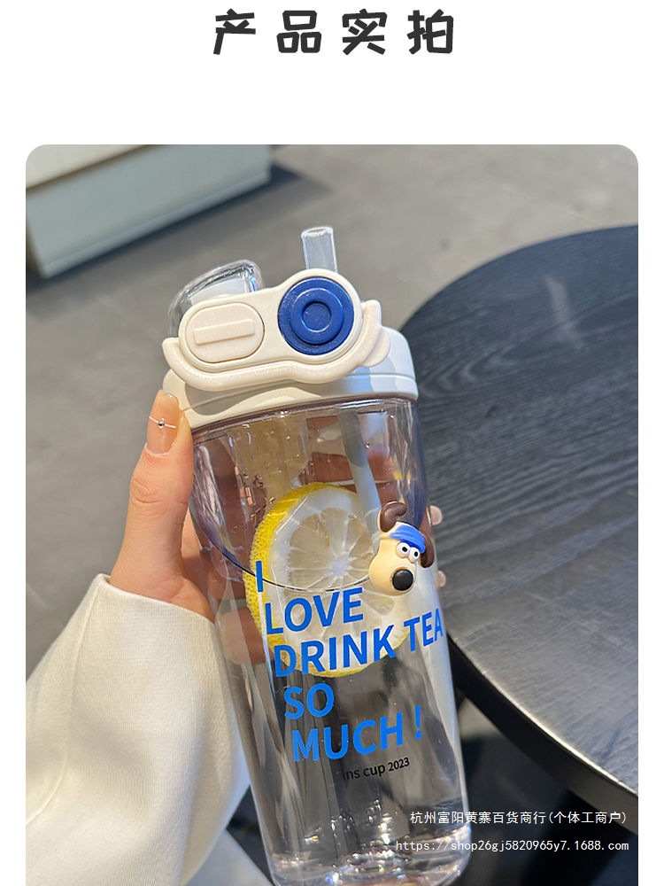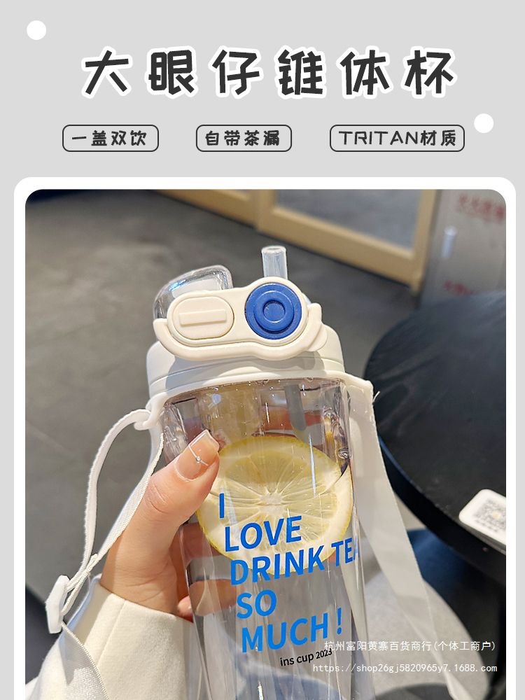 F 물 컵 여자 여름 귀여운 높은 가치 2025 새로운 트리탄 안티 드롭 물병 짚 대용량 컵