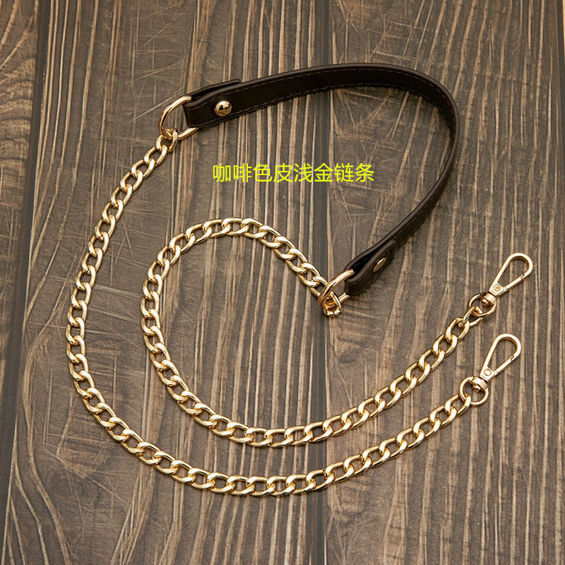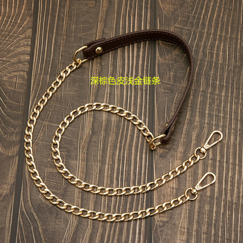 • 다크 브라운 가죽 라이트 골드 플랫 체인