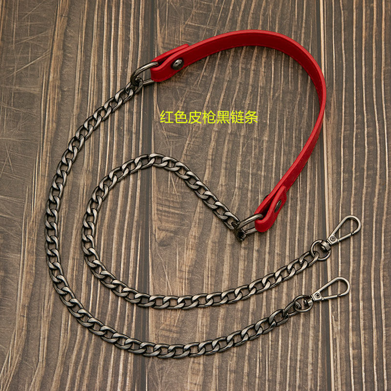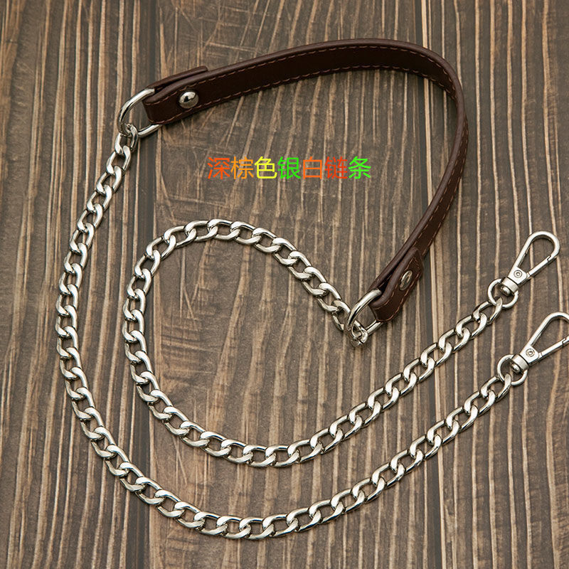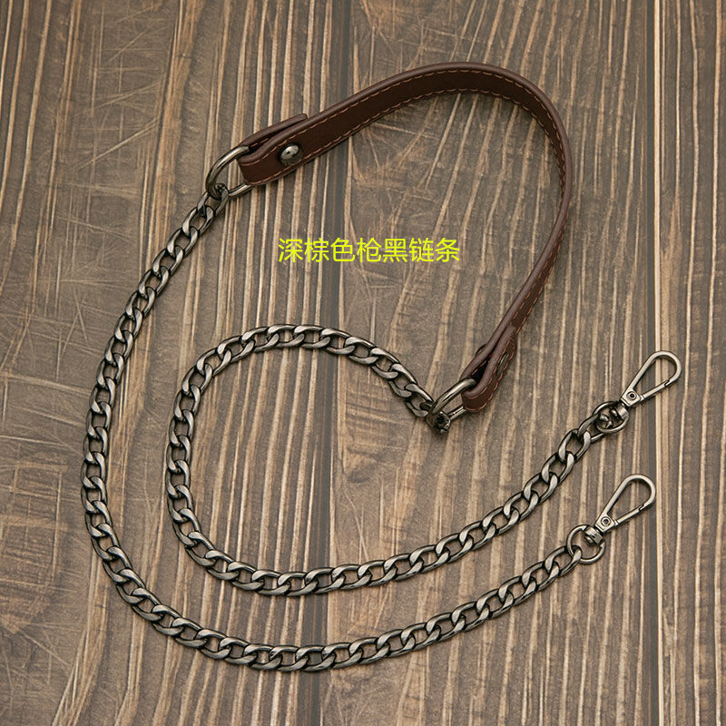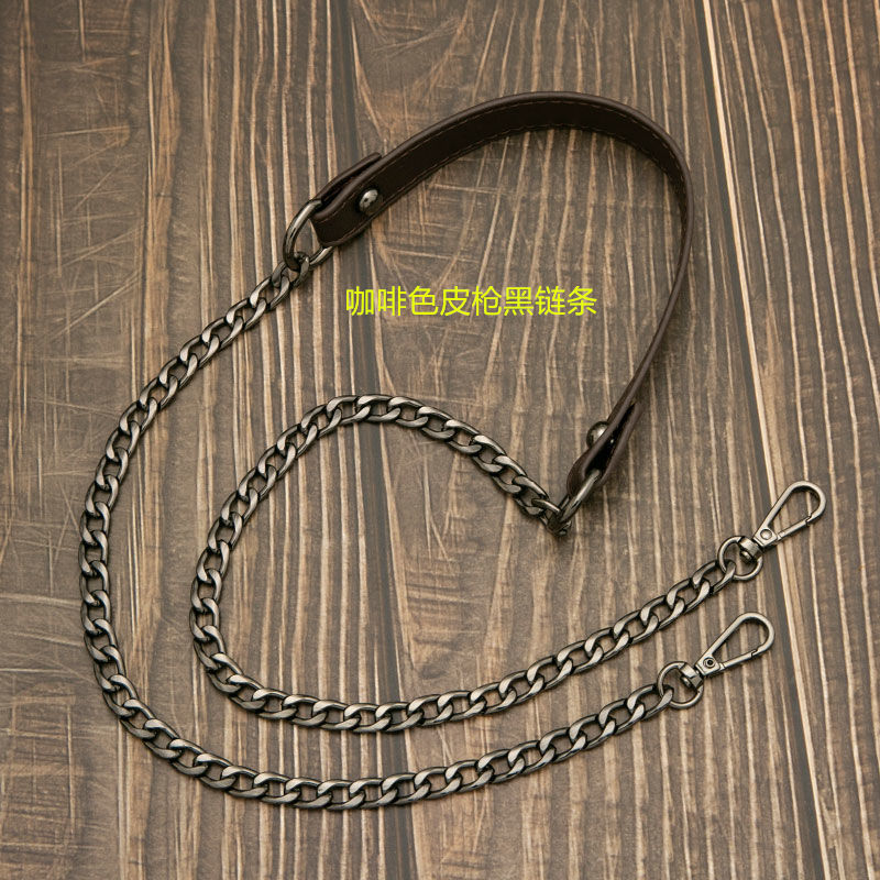 • 다크 브라운 가죽 총 블랙 플랫 체인