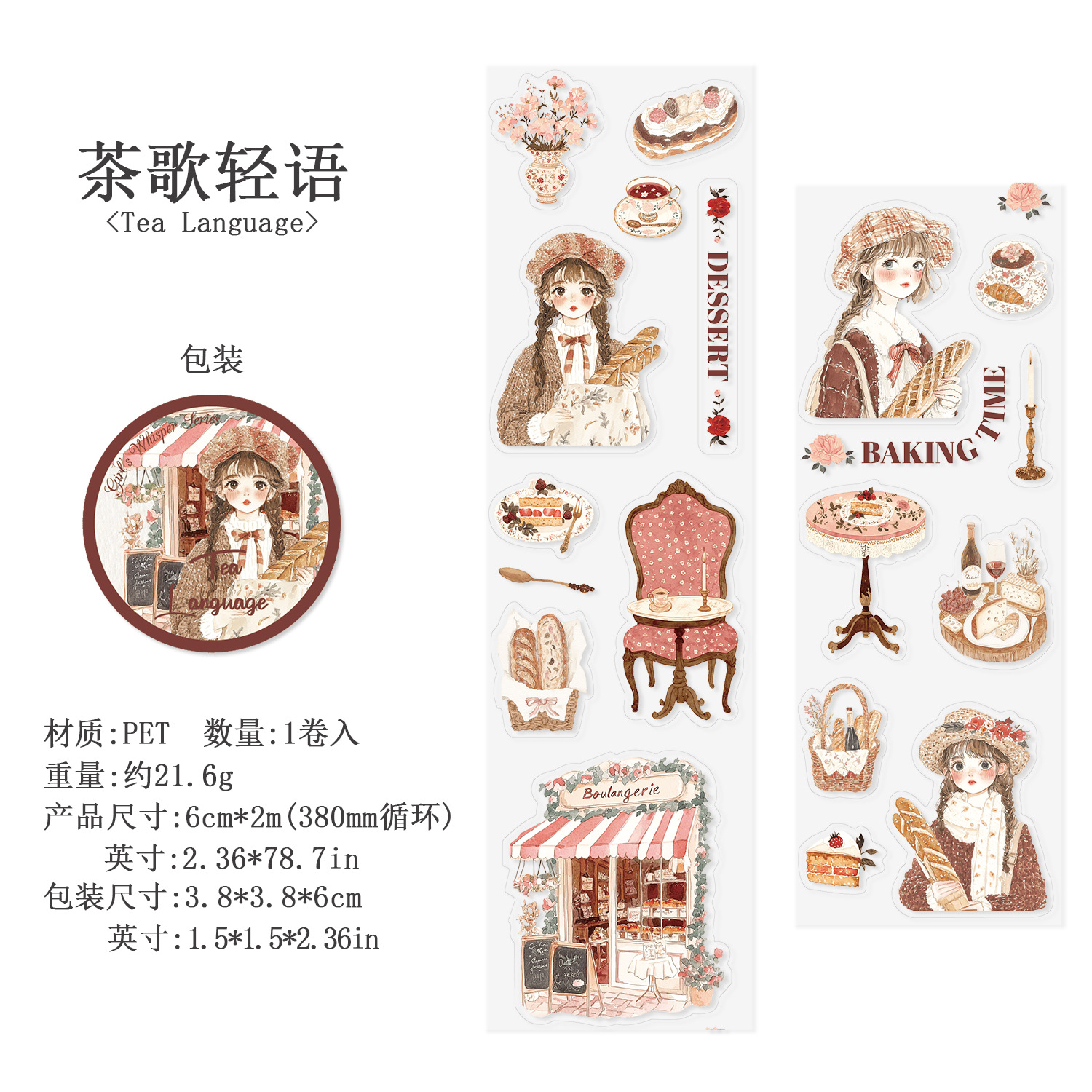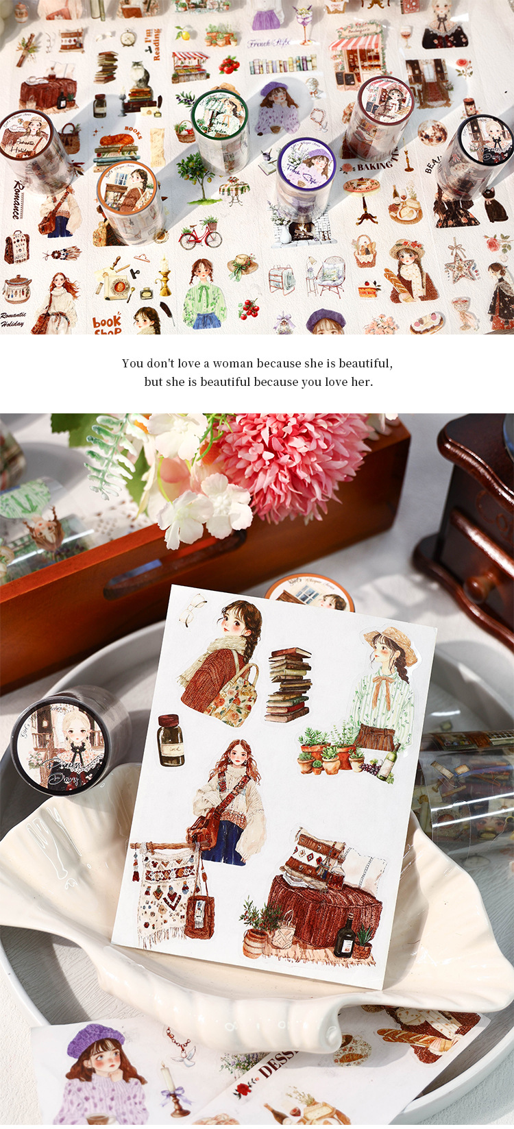 소녀의 가벼운 언어 시리즈 다이 컷 PET 캐릭터 테이프 고대 숲 아름다운 소녀의 손 계정 장식 기본 콜라주스토어 가기