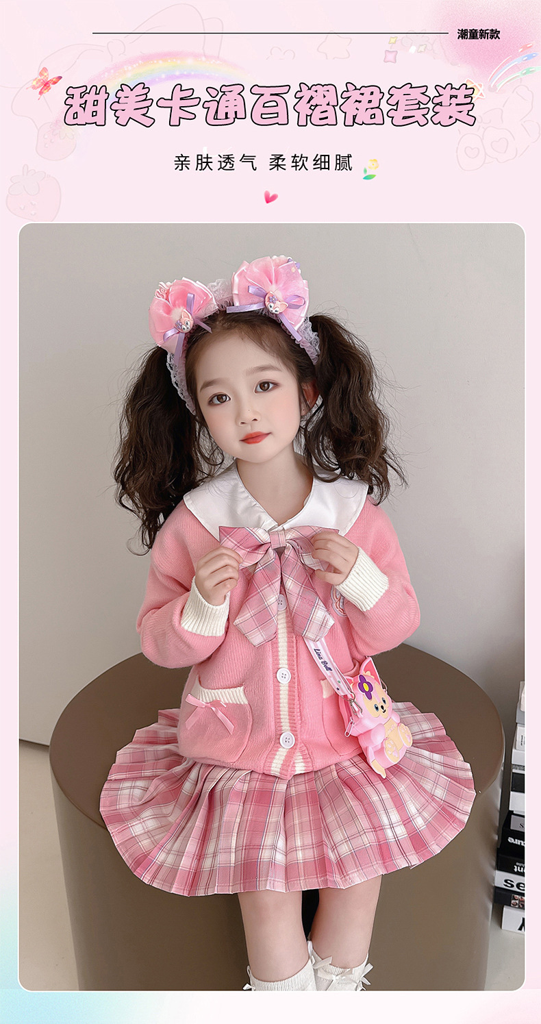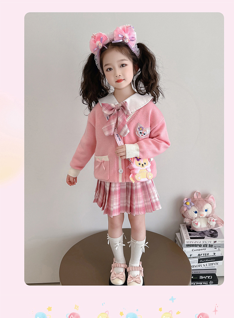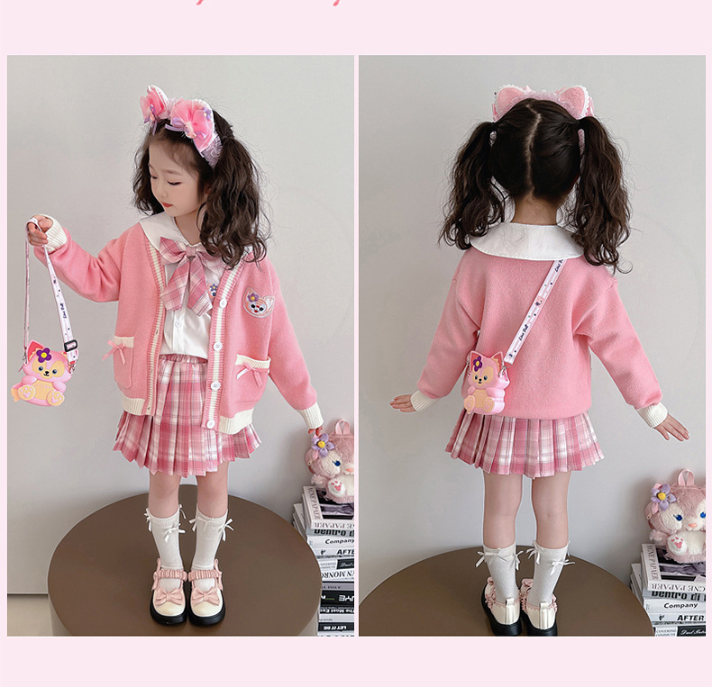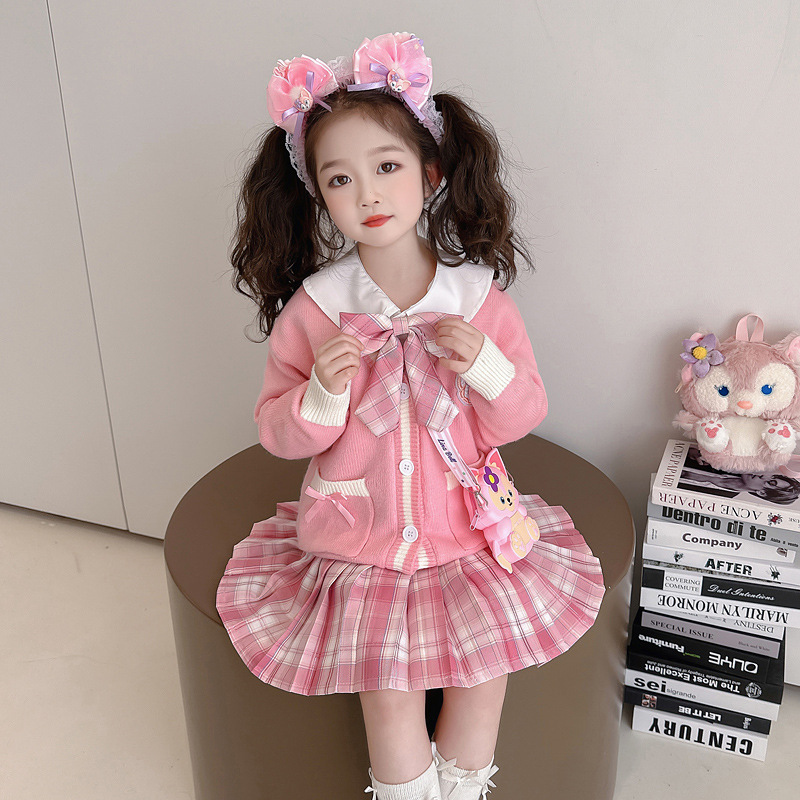 소녀 Lingna Beier 대학 스타일 세트 봄과 가을 소녀 카디건 스웨터 코트 여성 보물 셔츠 주름 치마