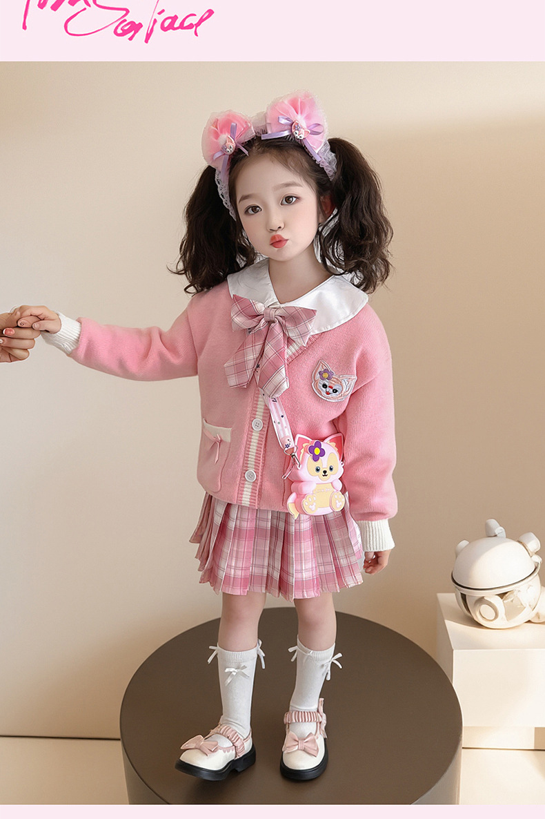 소녀 Lingna Beier 대학 스타일 세트 봄과 가을 소녀 카디건 스웨터 코트 여성 보물 셔츠 주름 치마스토어 가기