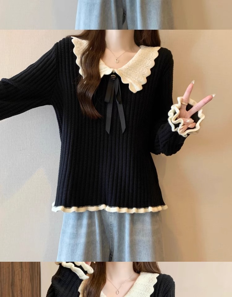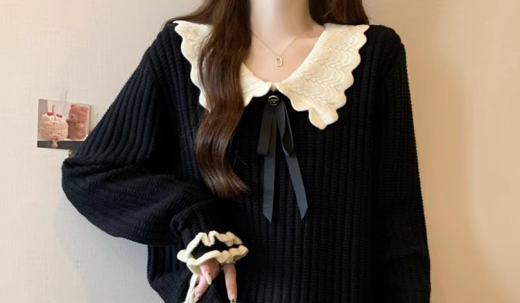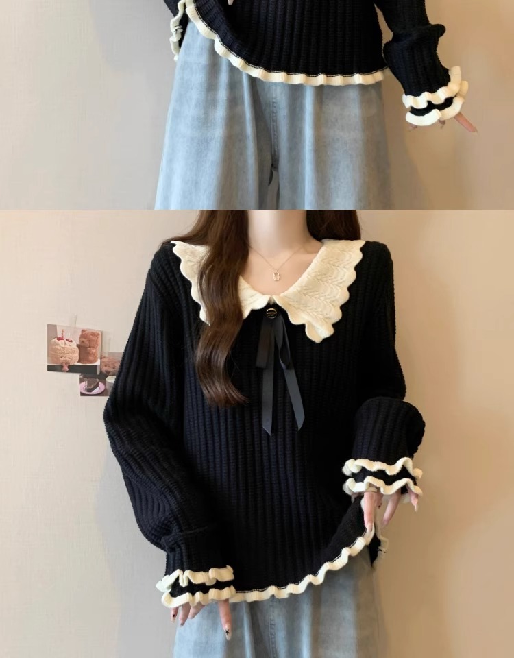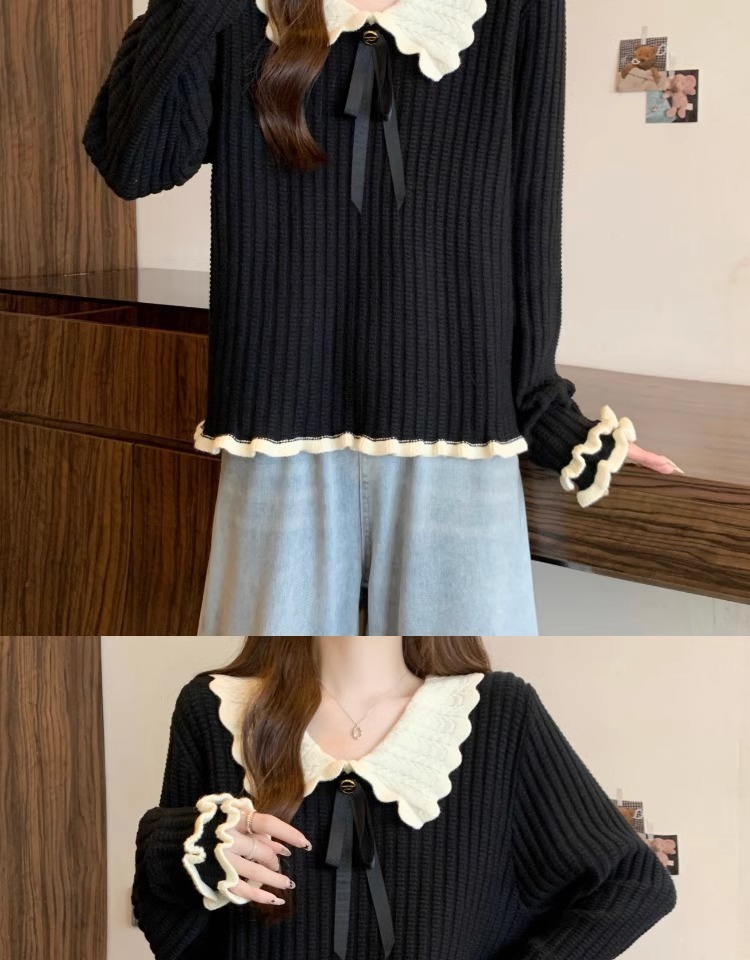 플러스 사이즈 여성 300kg 프랑스 인형 칼라 나무 귀 스웨터 가을 통통녀 슬림 달콤한 스웨터 재킷 2