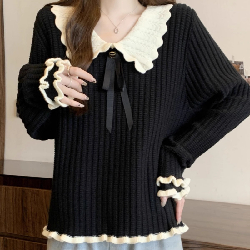 플러스 사이즈 여성 300kg 프랑스 인형 칼라 나무 귀 스웨터 가을 통통녀 슬림 달콤한 스웨터 재킷 2스토어 가기