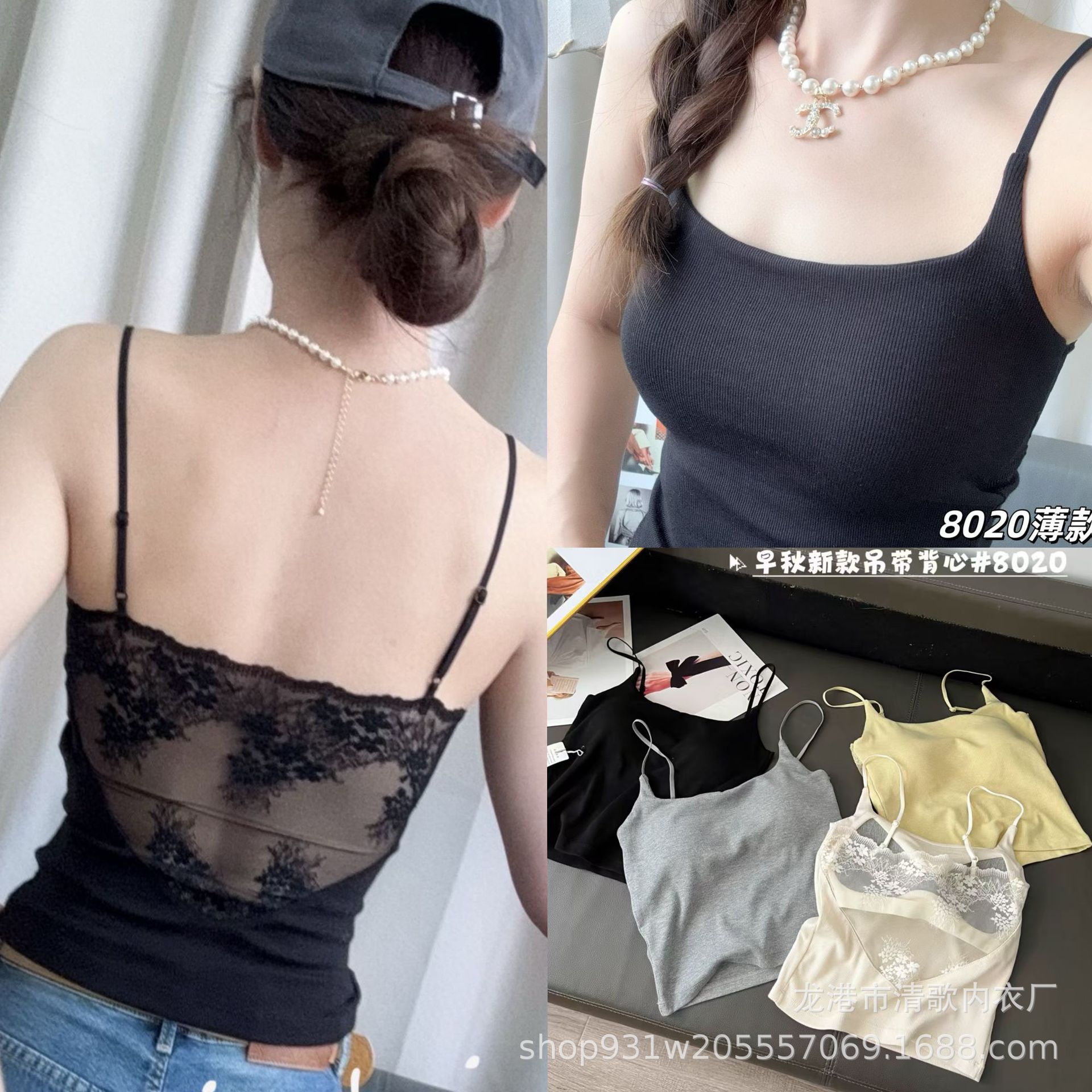가을 얇은 옷 걸이 8020 고정 컵 스레드 중간 길이 캐미솔 레이스 아름다운 뒤 섹시한 모든 경기 여성 속옷스토어 가기