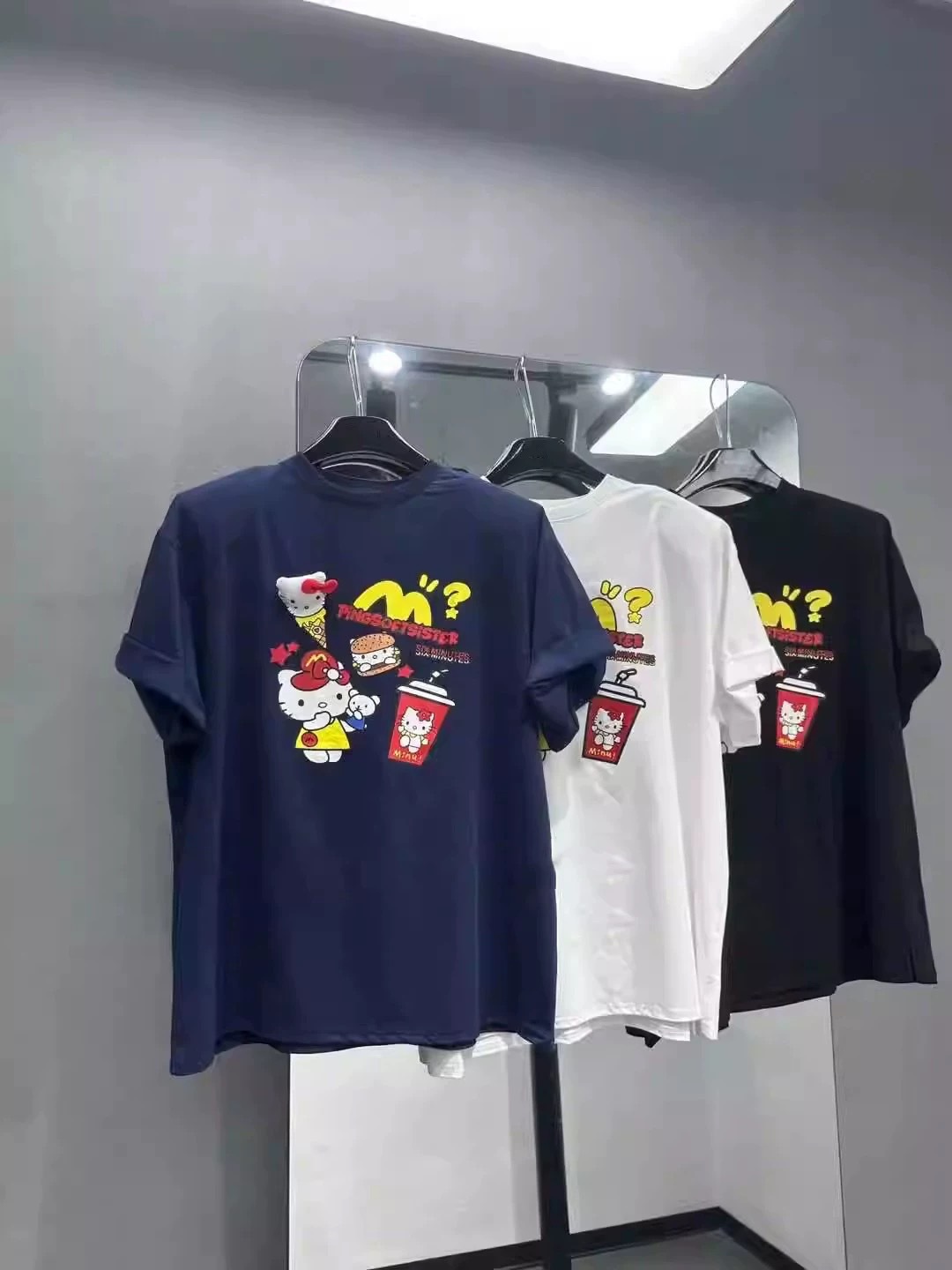 한국 동대문 순면 티셔츠 여름 뉴 에이지 감소 만화 패턴 느슨한 캐주얼 슬리밍 여성용 반팔 티셔츠스토어 가기