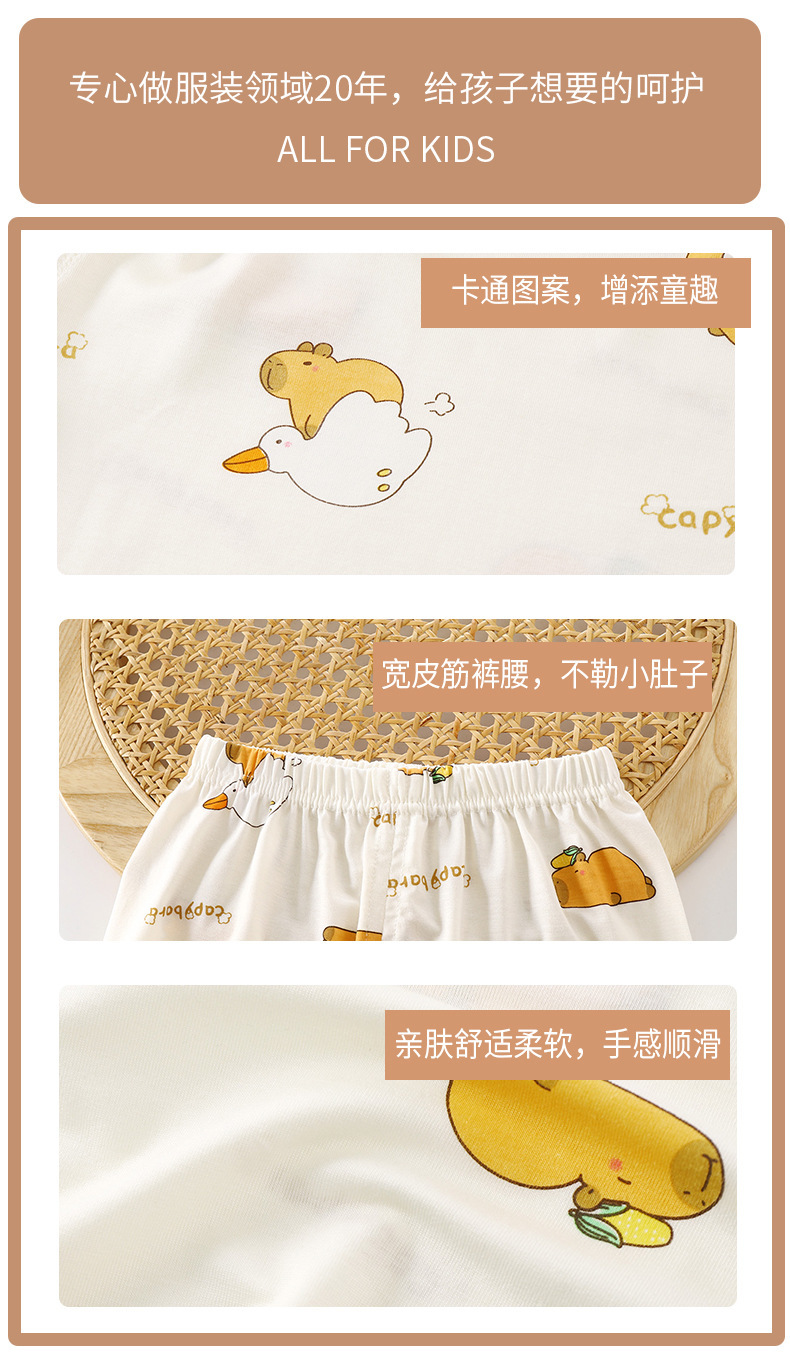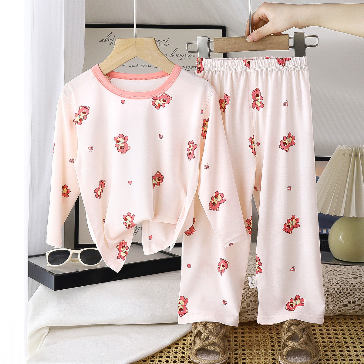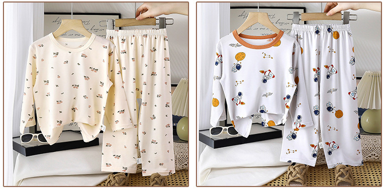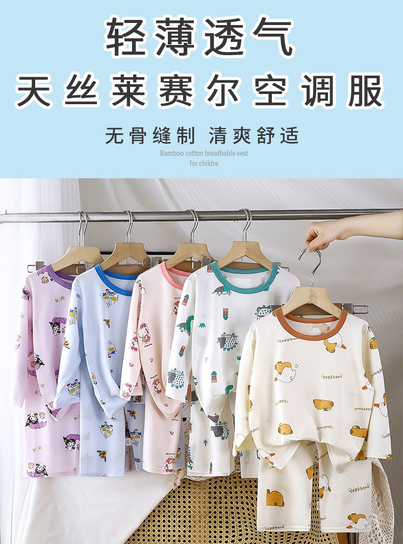 [텐셀 Lyocell] 여름 새 어린이 가정 옷 세트 남학생과 여학생 파자마 9 소매 에어컨 옷스토어 가기