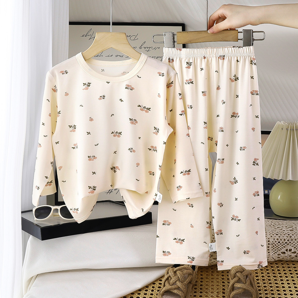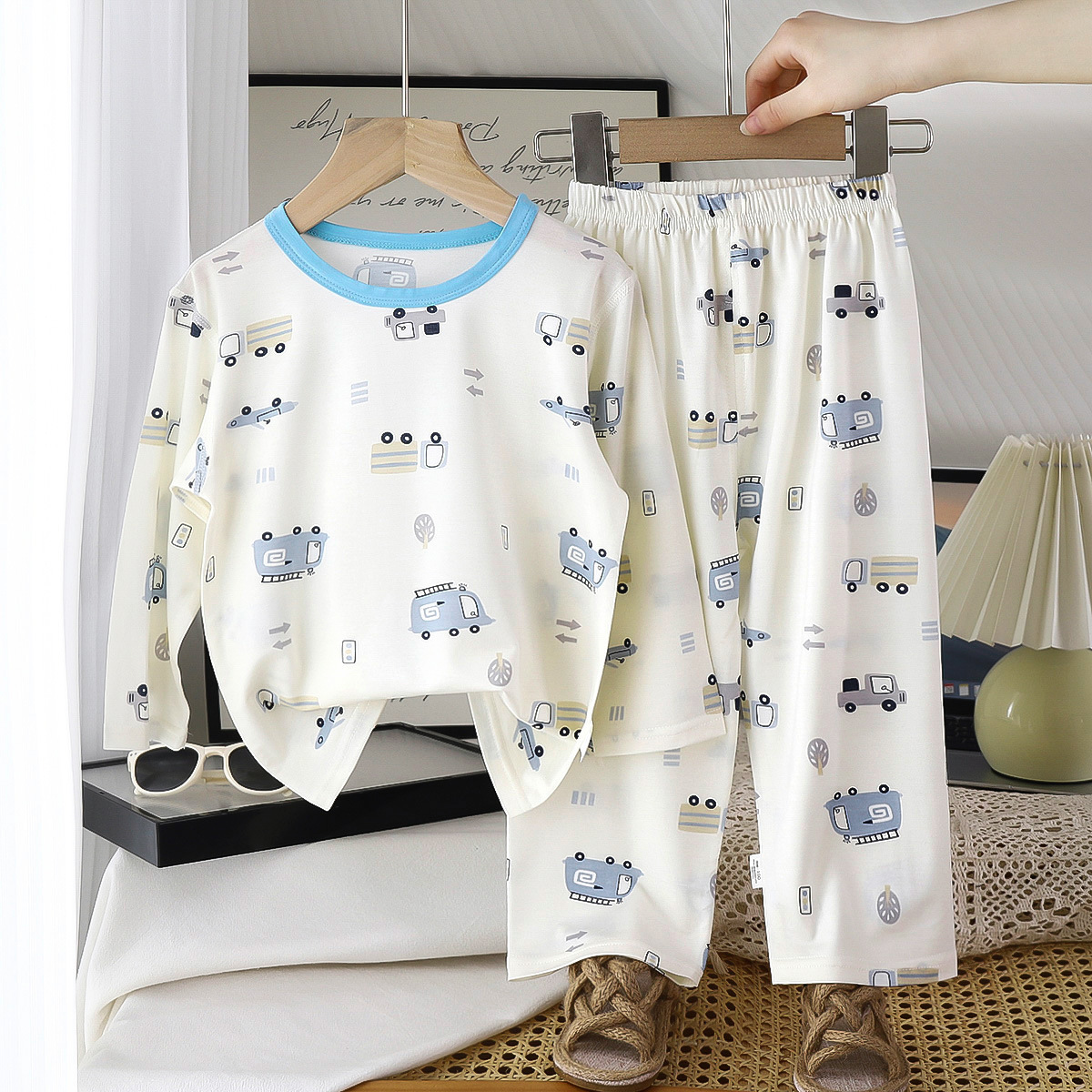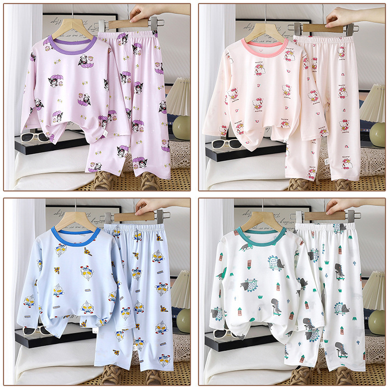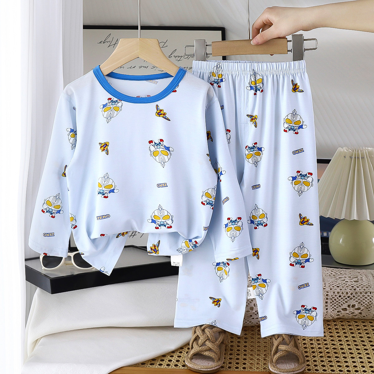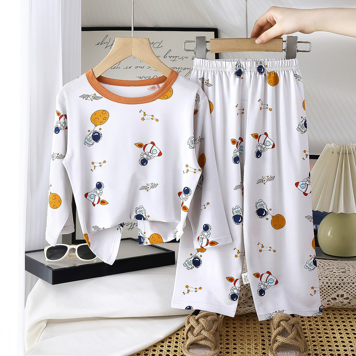 [텐셀 Lyocell] 여름 새 어린이 가정 옷 세트 남학생과 여학생 파자마 9 소매 에어컨 옷