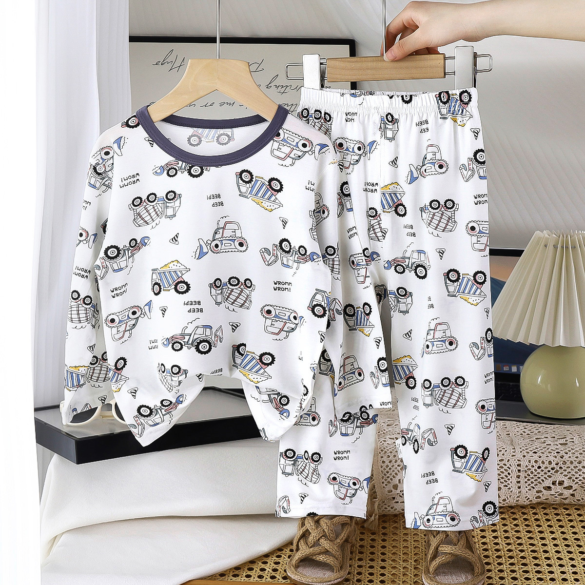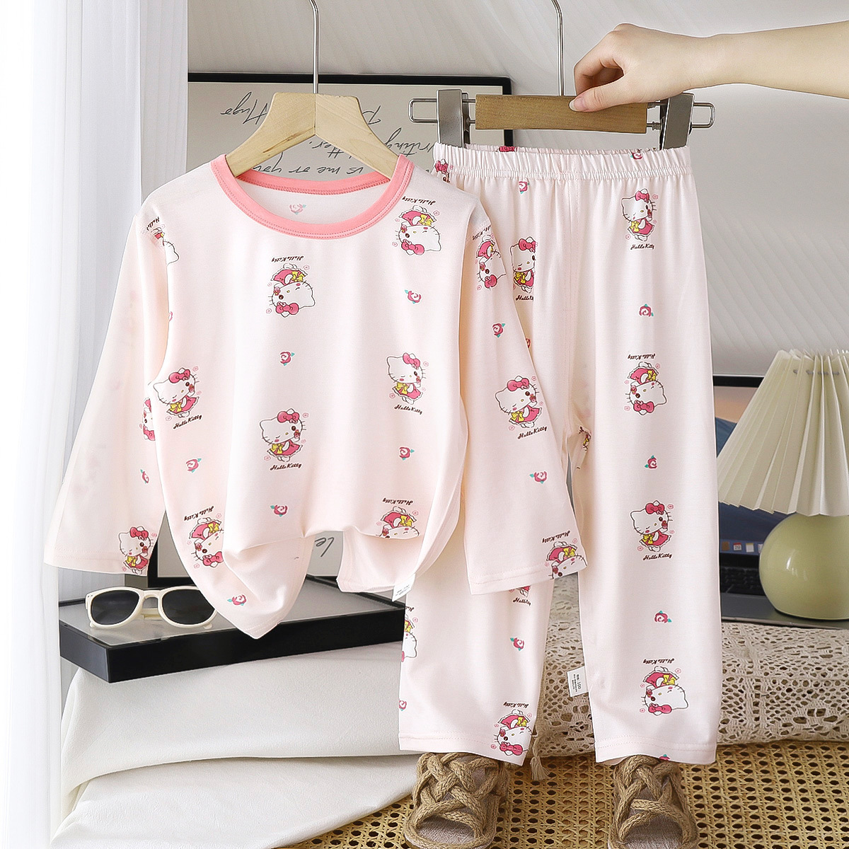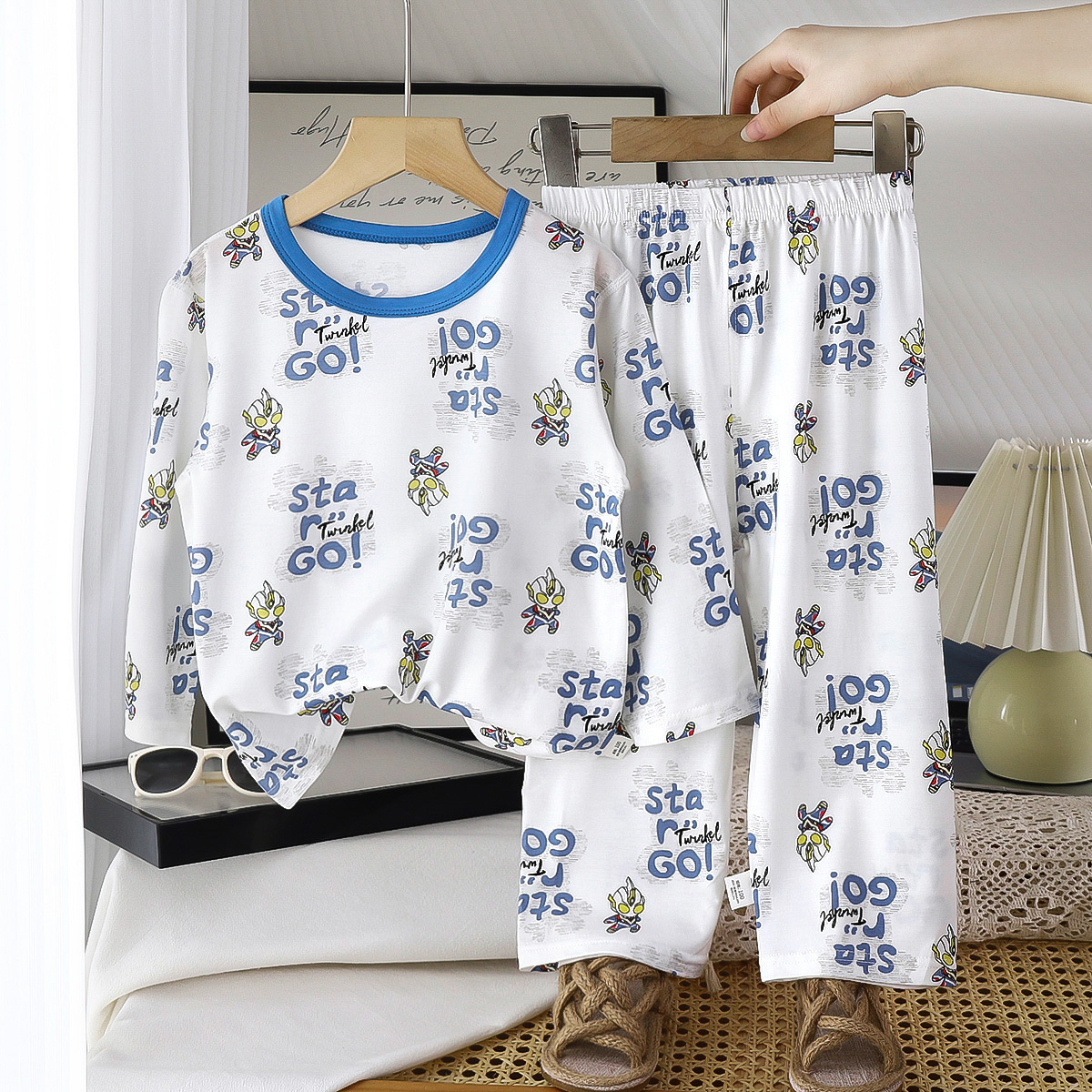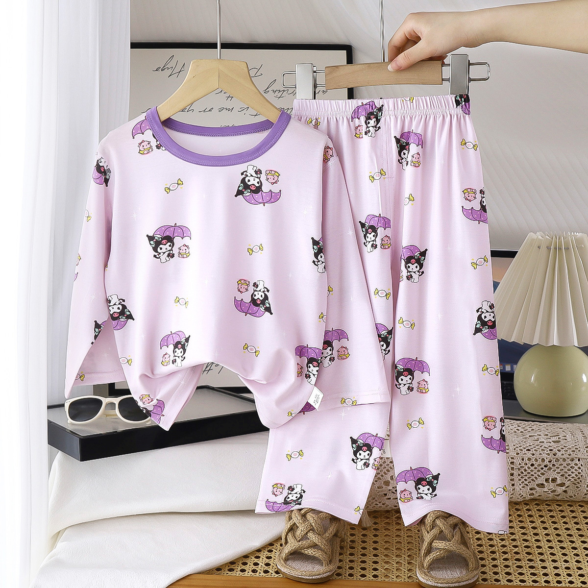 [텐셀 Lyocell] 여름 새 어린이 가정 옷 세트 남학생과 여학생 파자마 9 소매 에어컨 옷