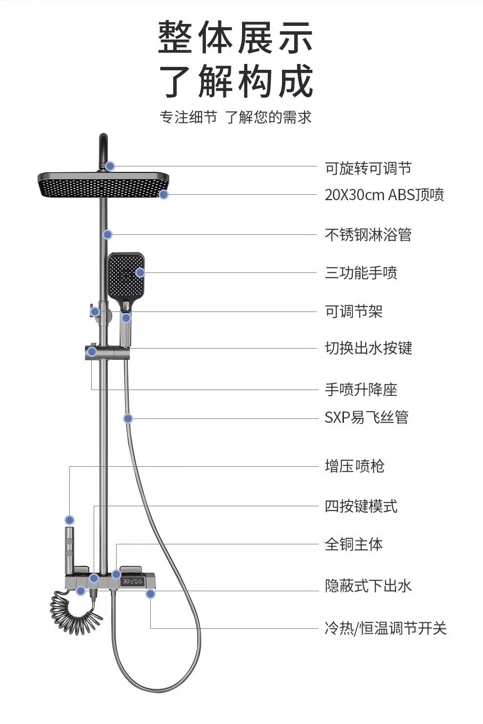 Jiumu JOMOO 샤워 세트 건 그레이 모든 구리 샤워 가구 일정한 온도 압력 노즐 욕조
