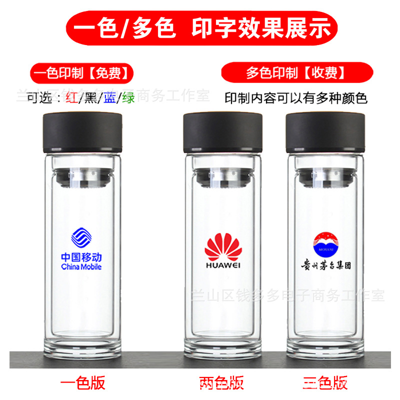더블 레이어 유리 도매 높은 borosilicate 단열 차 폭발 방지 오프닝 선물 투명 컵 인쇄 로고