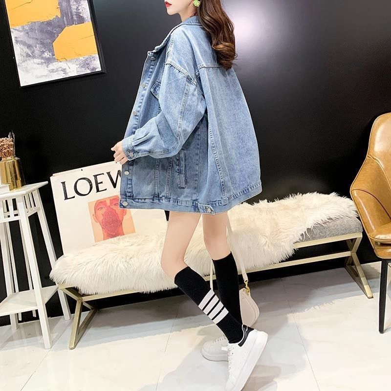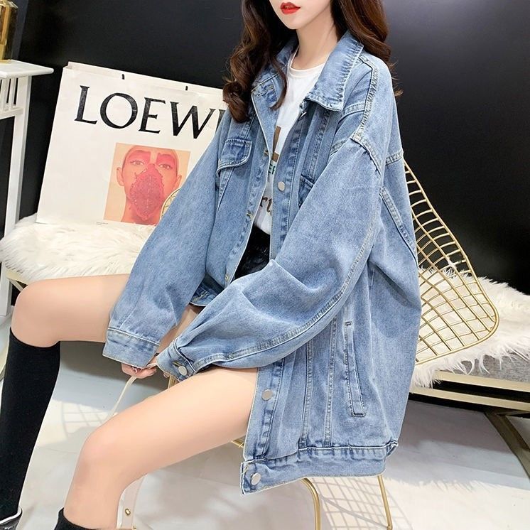 데님 코트 여성의 2024 년 봄과 가을 새로운 튀김 통근 정사이즈 거리 긴 복고풍 조커 느슨한 조수스토어 가기