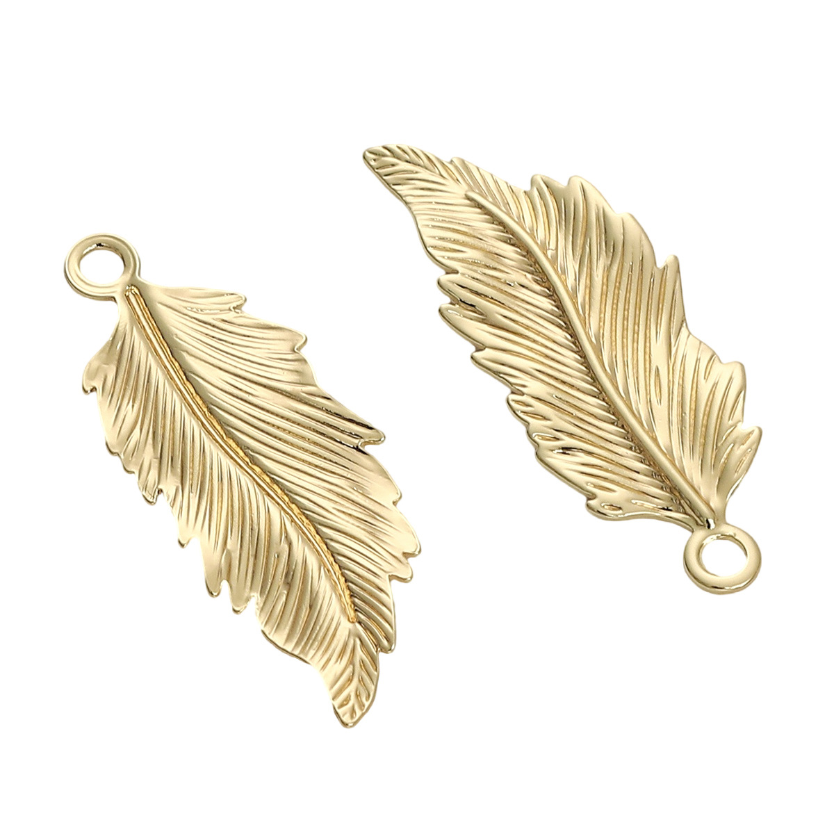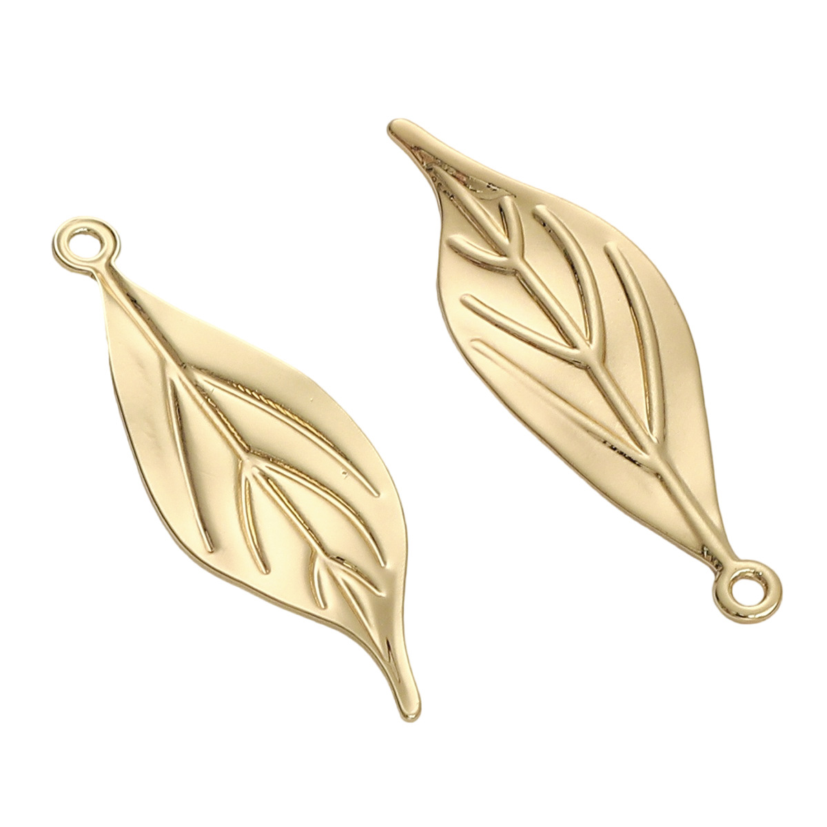 • 작은 잎 펜던트 8x19mm, 구멍 직경 약 1.5mm, 전기 도금 14K 금도금, 1개/팩
