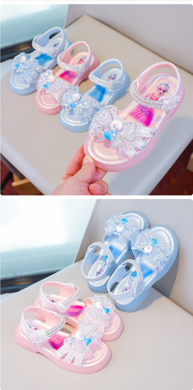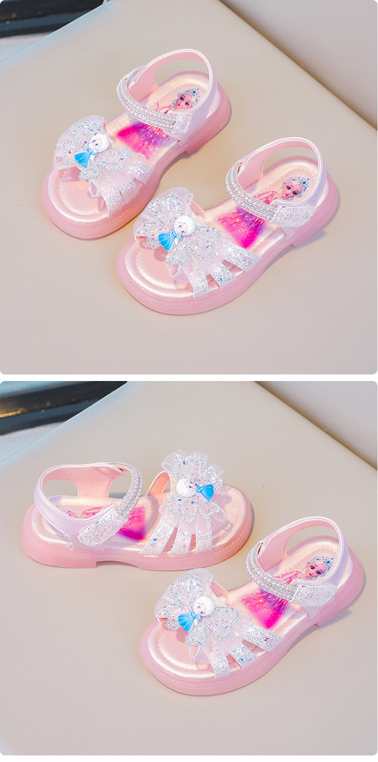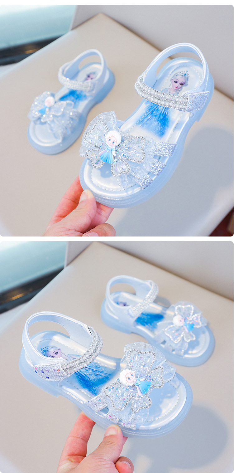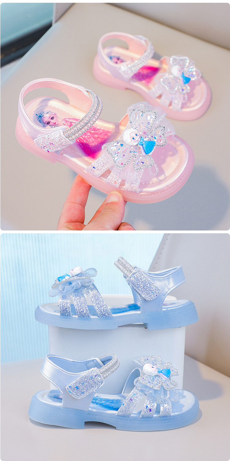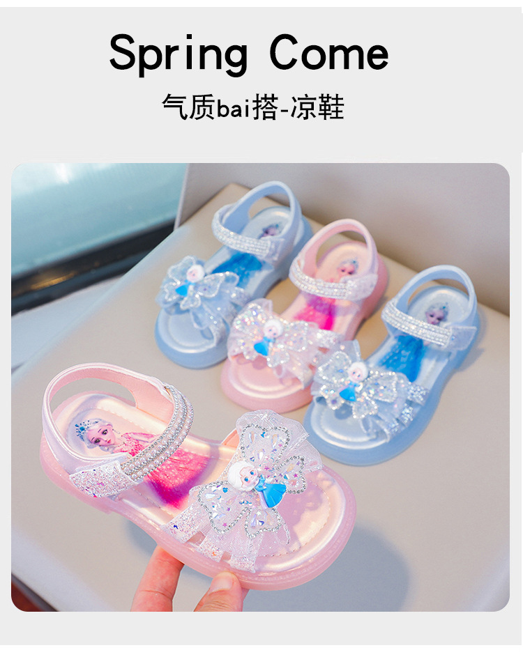 소녀 부드러운 밑창 샌들 2025 봄과 여름 새로운 도착 어린이 패션 미끄럼 방지 엘사 공주 소녀 아기 크리스탈 신발스토어 가기