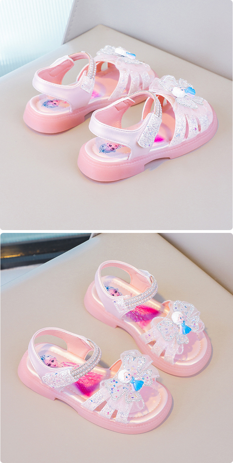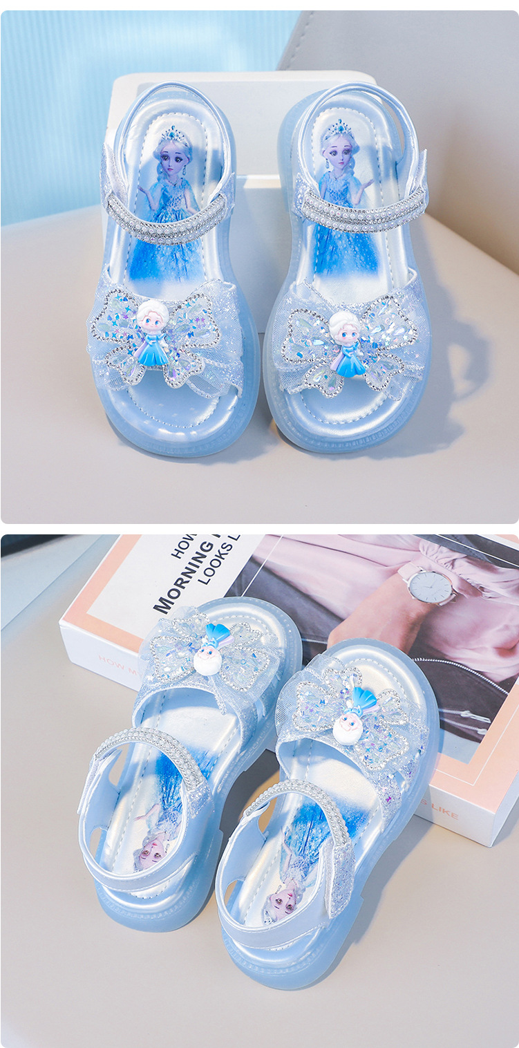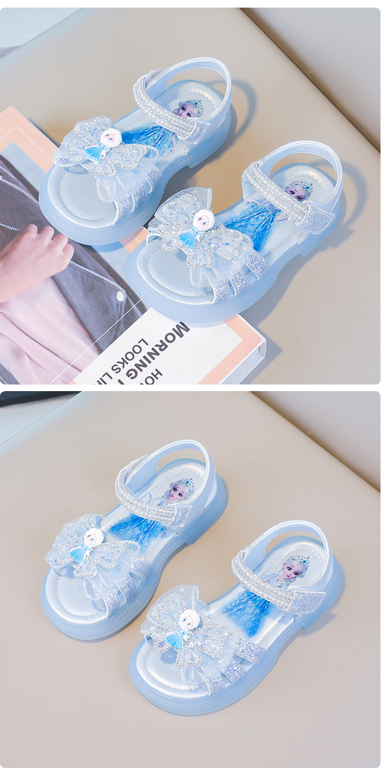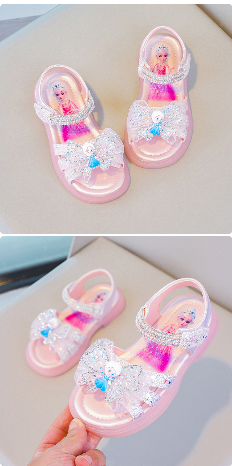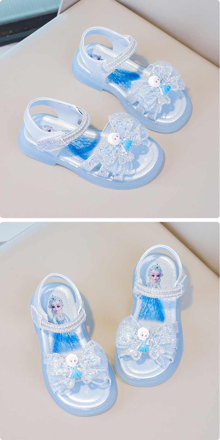 소녀 부드러운 밑창 샌들 2025 봄과 여름 새로운 도착 어린이 패션 미끄럼 방지 엘사 공주 소녀 아기 크리스탈 신발스토어 가기