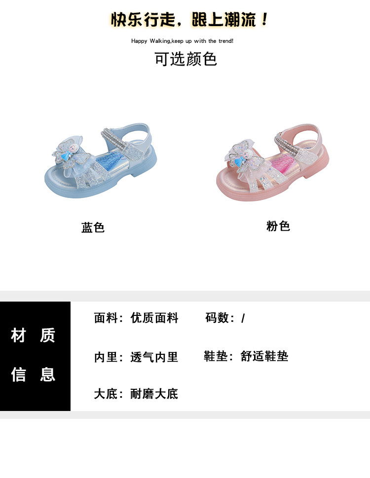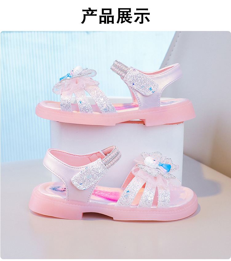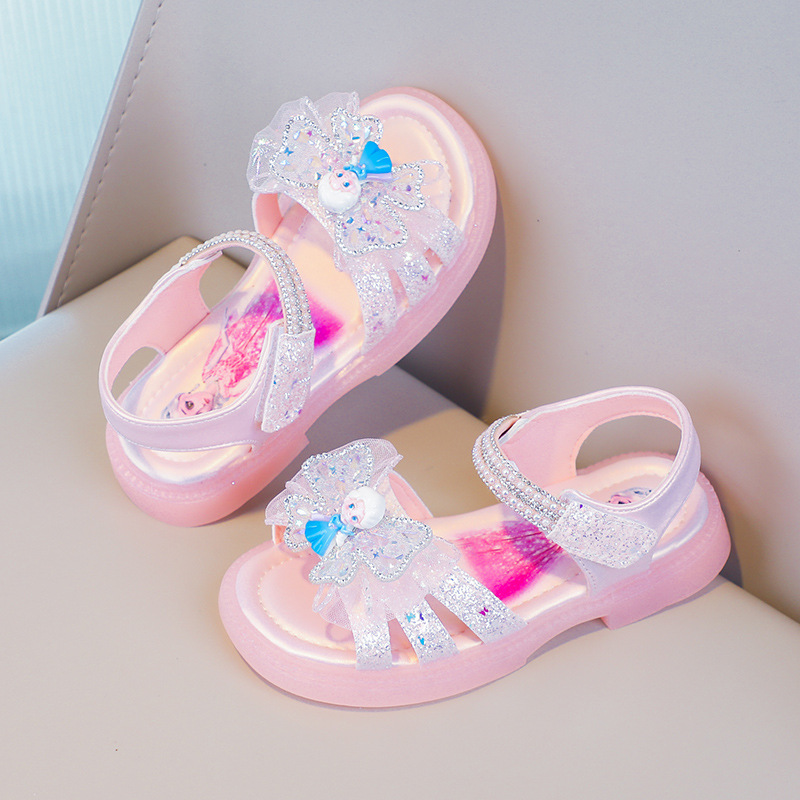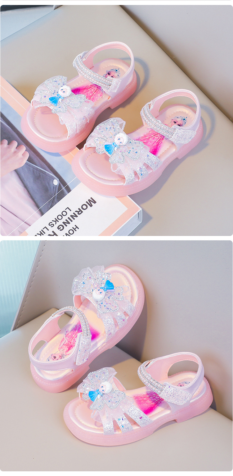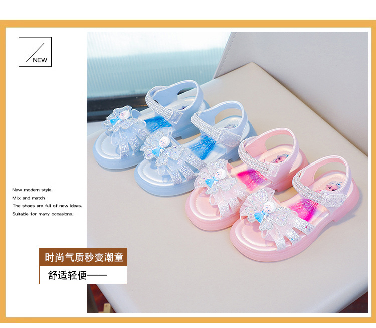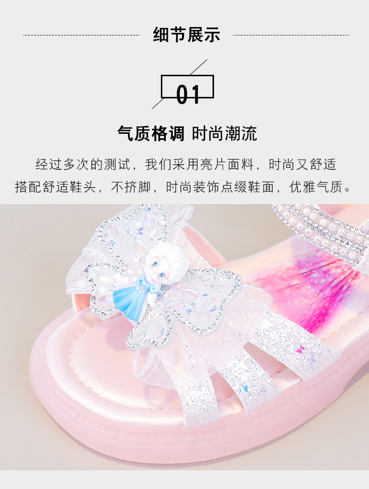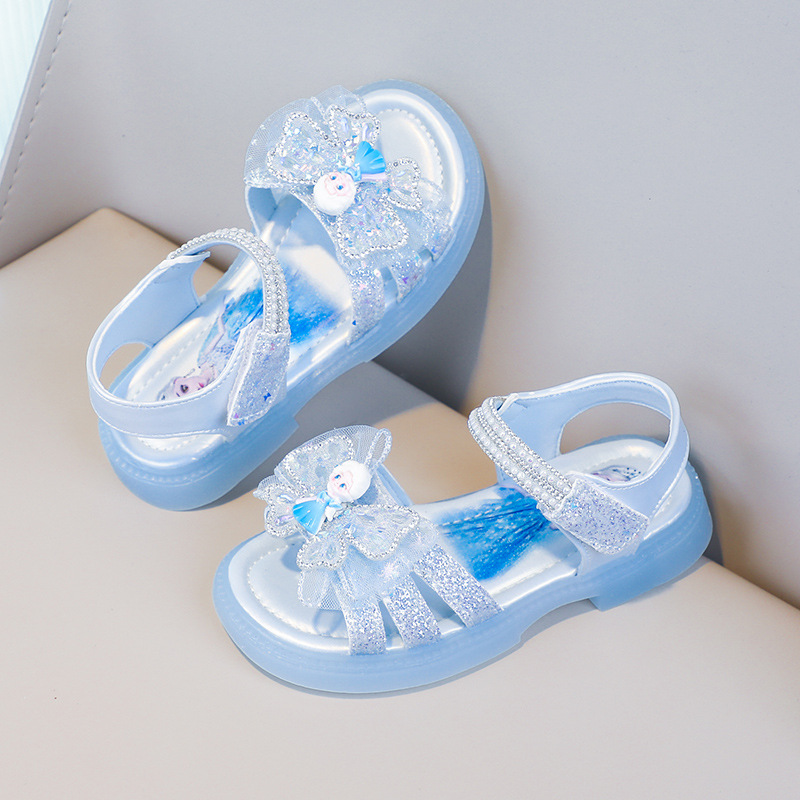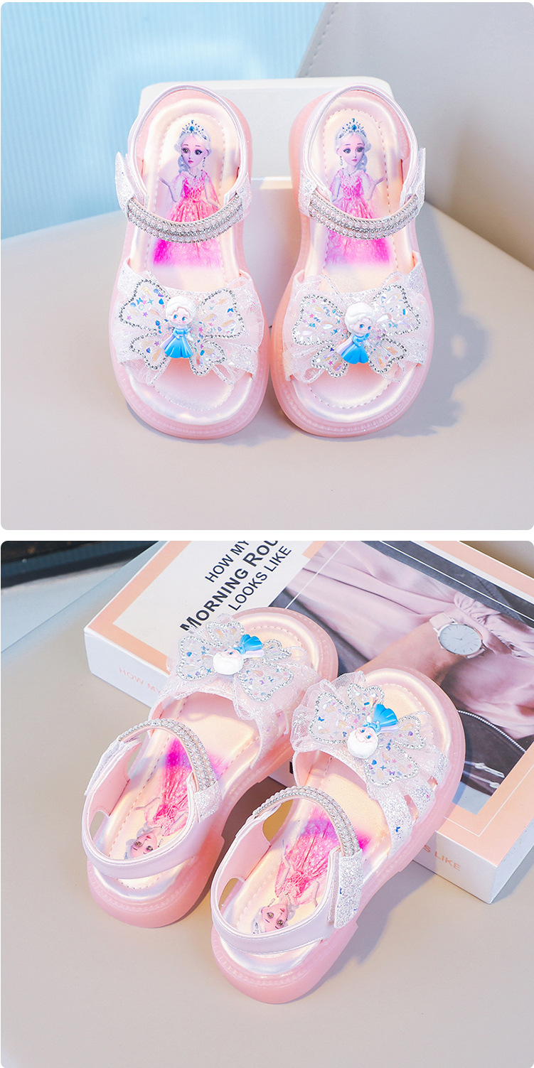 소녀 부드러운 밑창 샌들 2025 봄과 여름 새로운 도착 어린이 패션 미끄럼 방지 엘사 공주 소녀 아기 크리스탈 신발스토어 가기