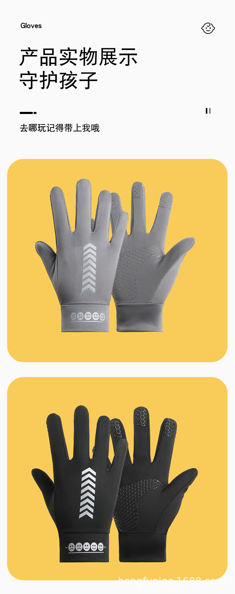 어린이 봄, 가을, 여름 얇은 장갑 미끄럼 방지 높은 탄성 빠른 통기성 야외 승마 선스크린 아이스 실크 장갑