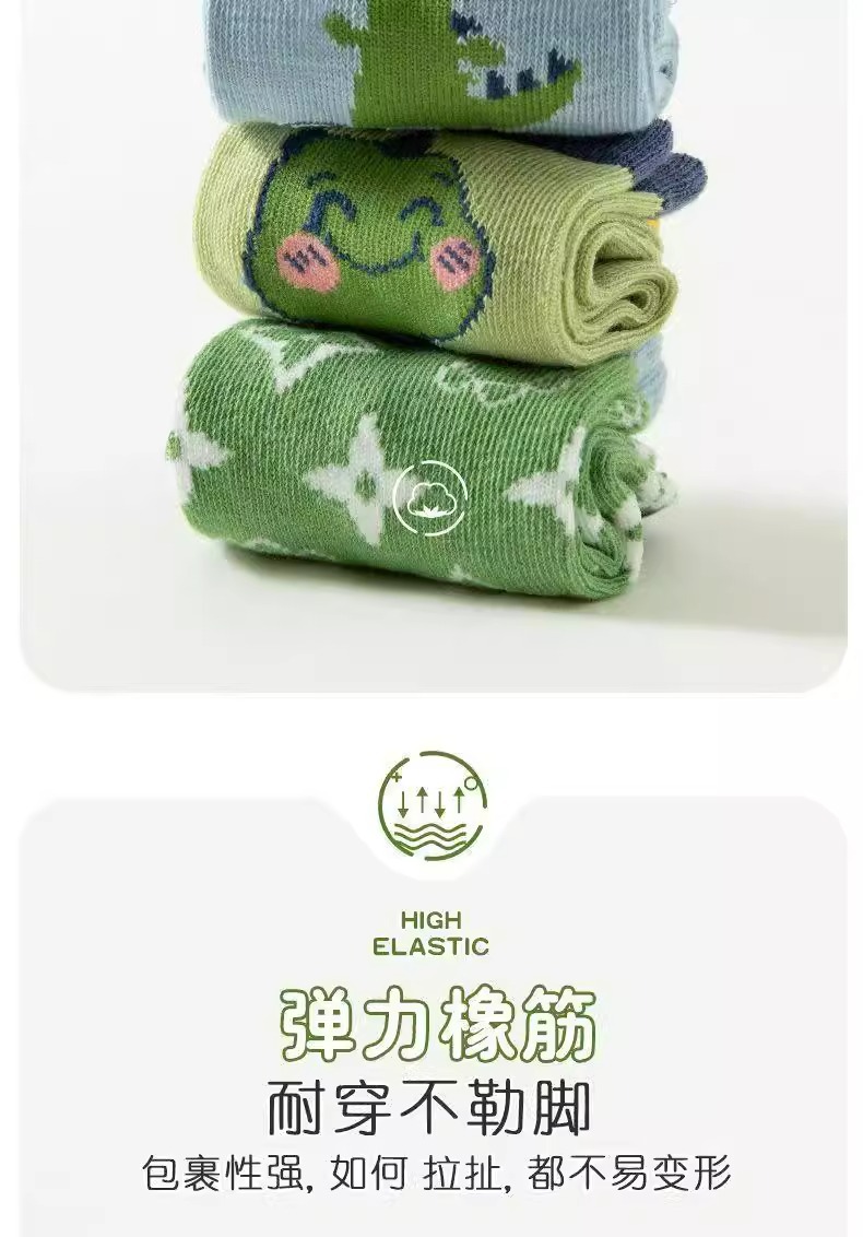 공룡 어린이 양말 봄과 가을 소년 중간 길이 양말 귀여운 아기 만화 스타킹 땀 흡수성 통기성 스포츠 스타킹