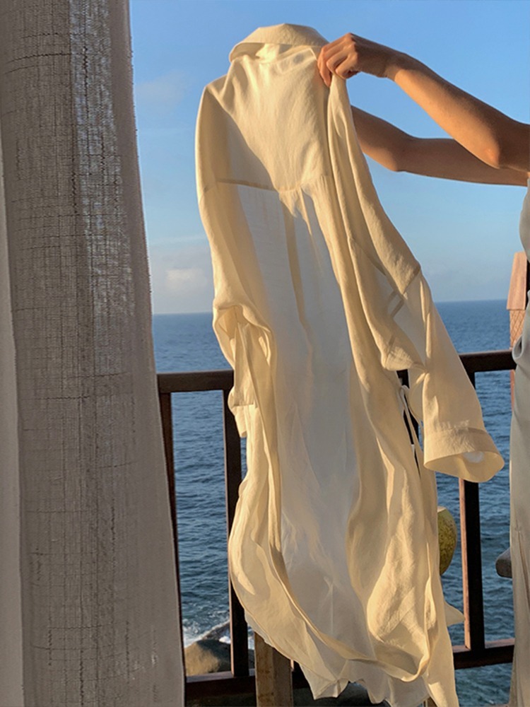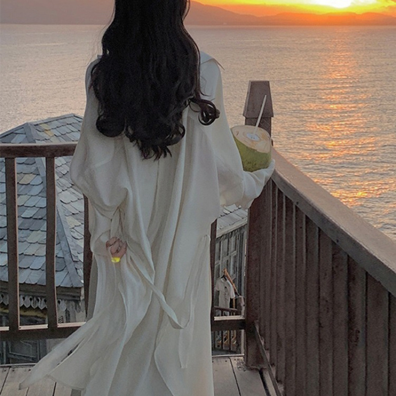해변 싼야 여행 선스크린 셔츠 얇은 코트 여성용 여름 중간 길이 긴팔 선 스크린 코트