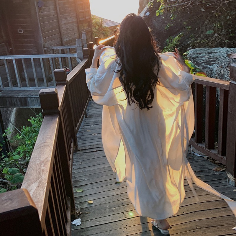 해변 싼야 여행 선스크린 셔츠 얇은 코트 여성용 여름 중간 길이 긴팔 선 스크린 코트스토어 가기