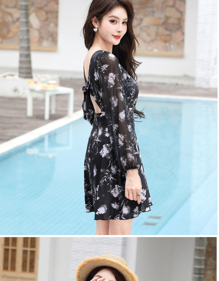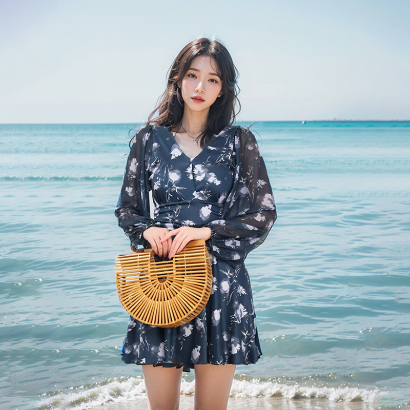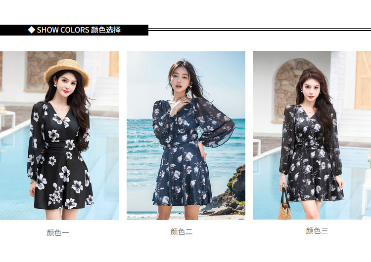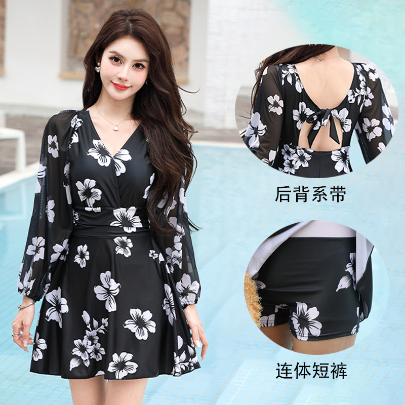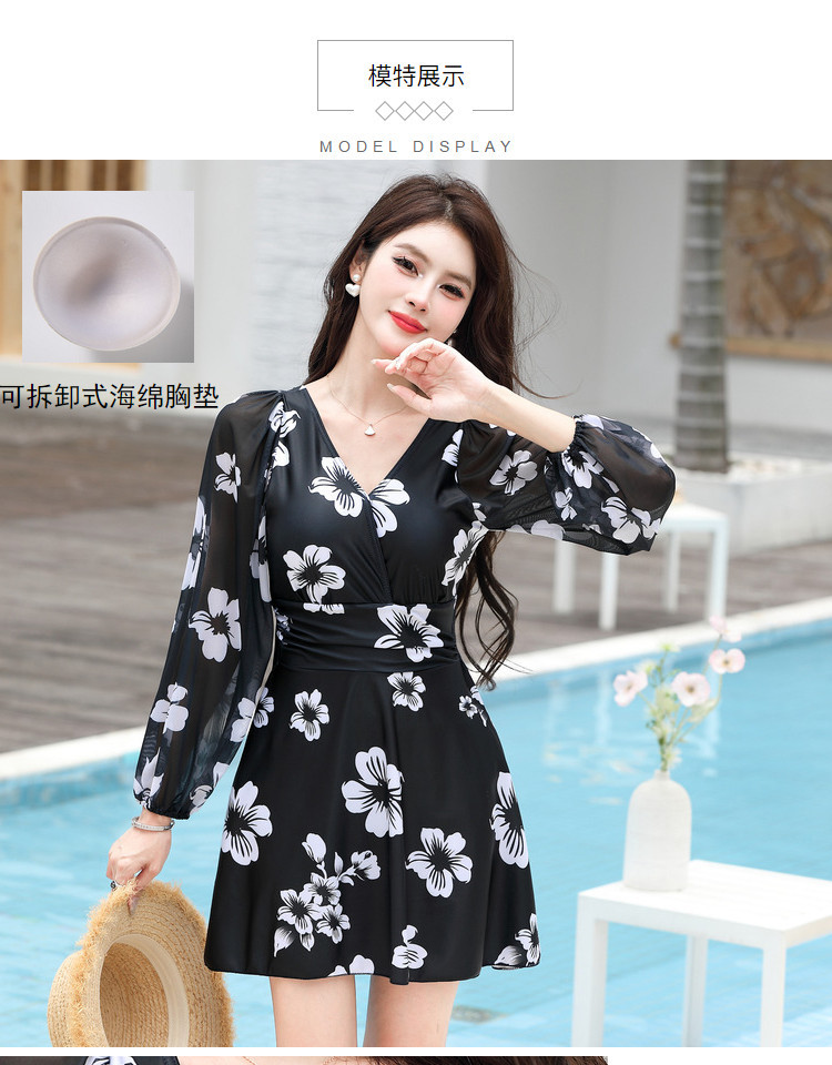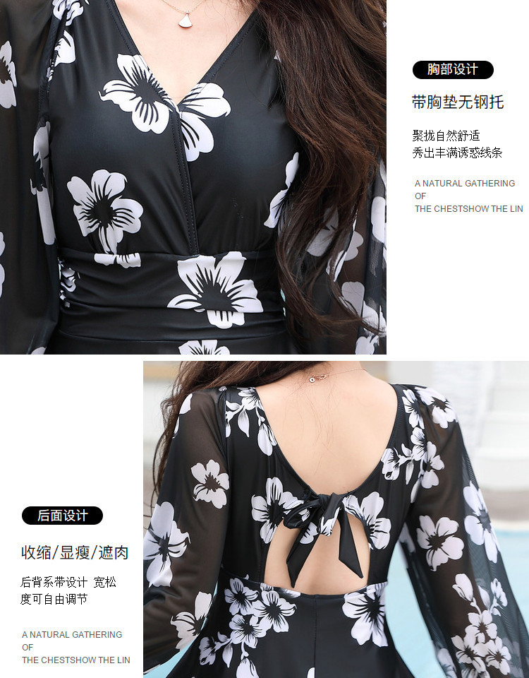 플러스 사이즈 여성용 수영복 태양 방지 긴 소매 보수적 바디 길이 스커트 스타일 슬리밍 스틸러 푸시 업 가슴 여성용 수영복