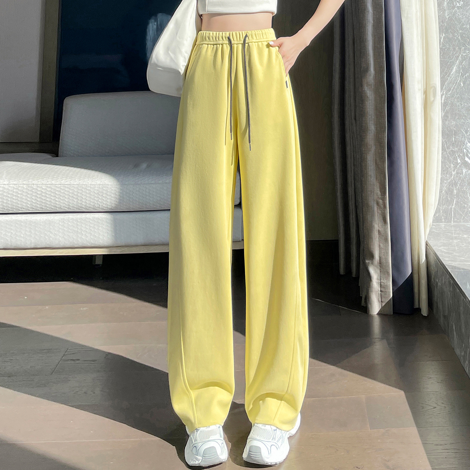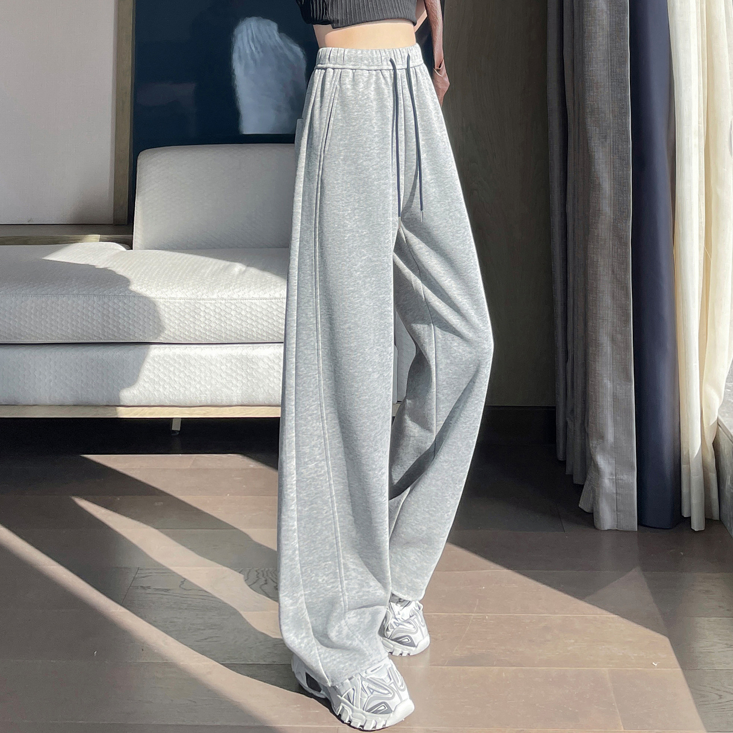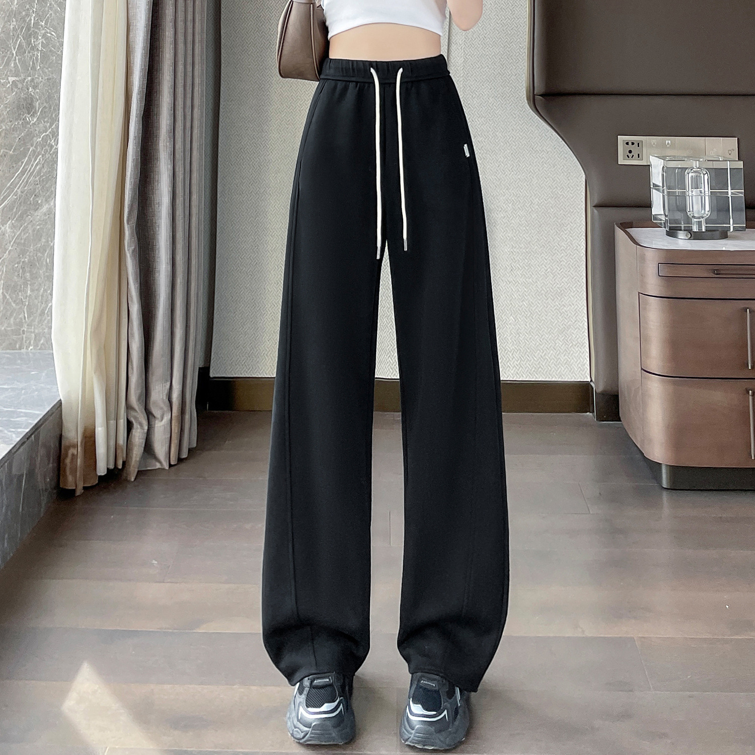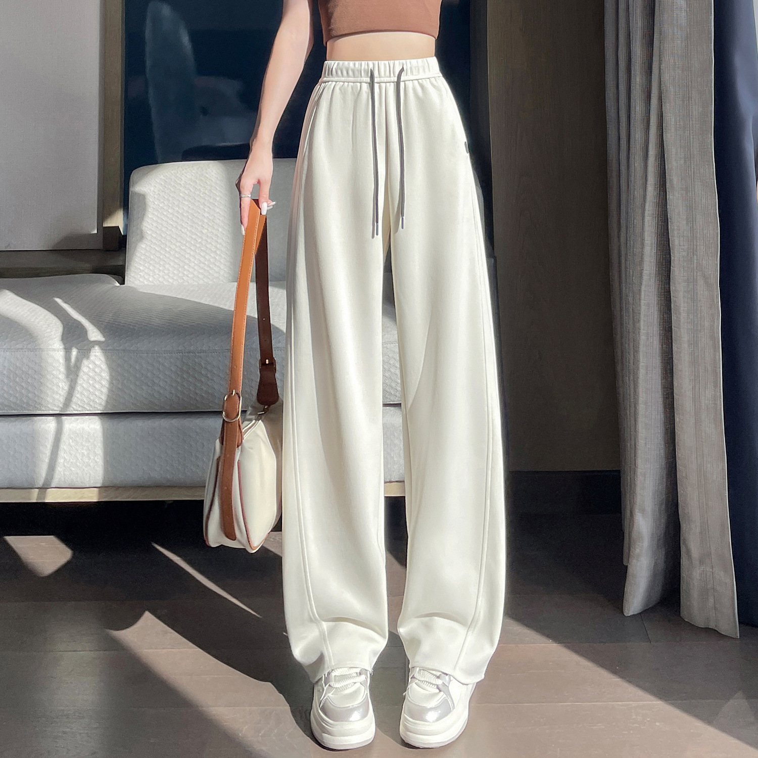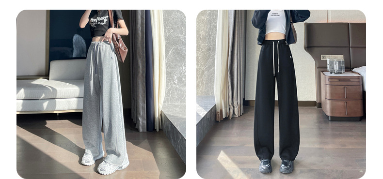2025 가을 겨울 신상 와이드 팬츠 여성용 루즈핏 하이웨이스트 스트레이트 캐주얼 팬츠 다용도 스포츠 벤드 팬츠스토어 가기