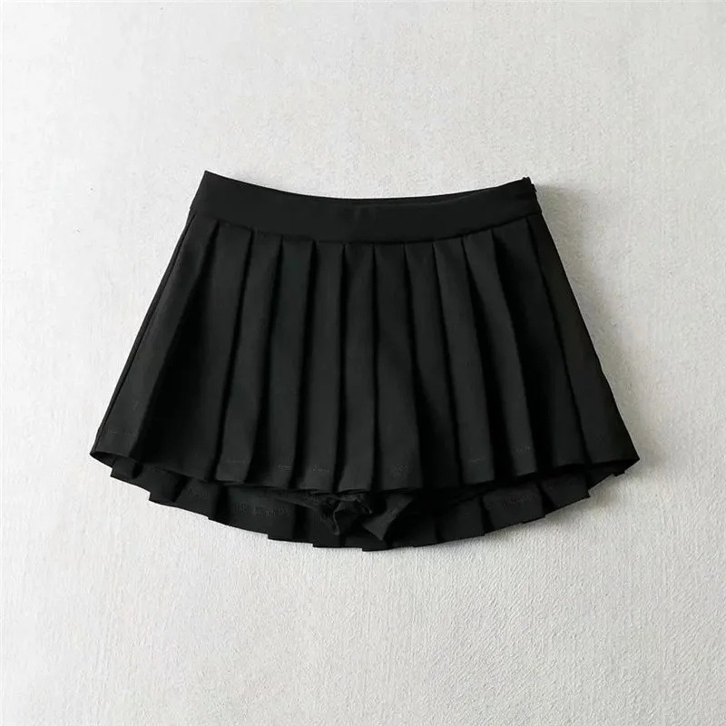 울트라 짧은 여름 정면 짧은 뒤로 긴 미끄럼 방지 주름 치마 짧은 치마 높은 허리 슬리밍 스커트 주름 치마