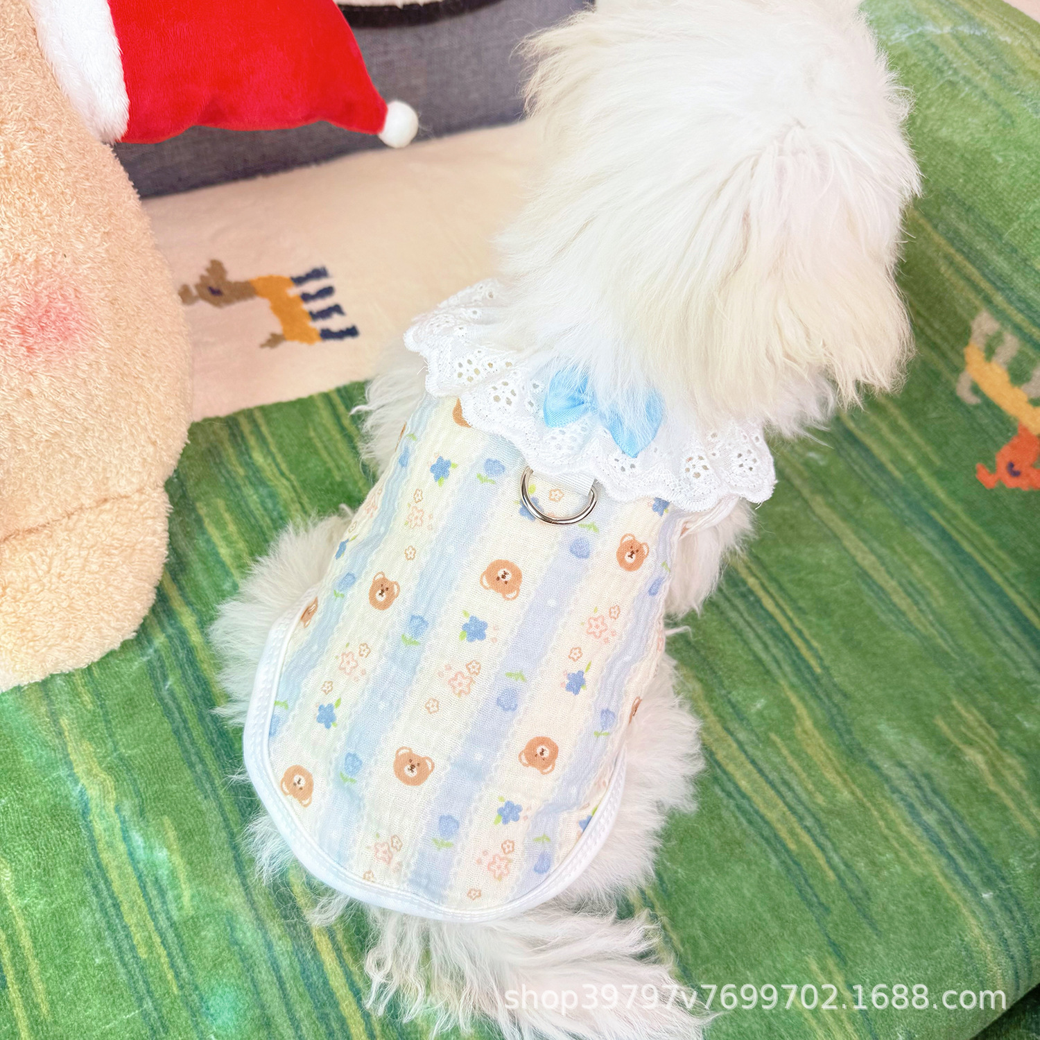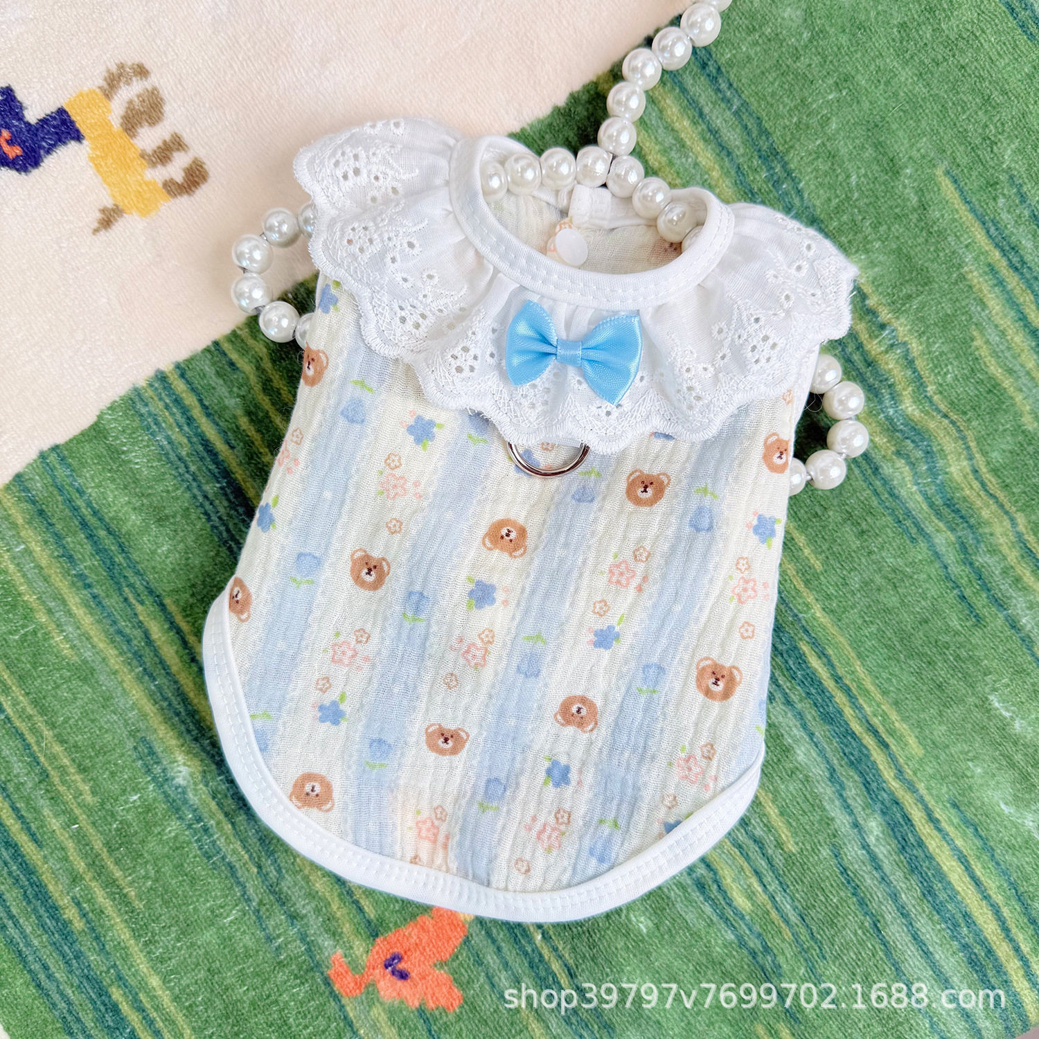 일본과 한국의 봄과 여름 얇은 면 애완 동물 고양이 옷 조끼 테디 비터 곰 머펫 고양이 통기성