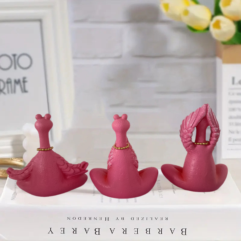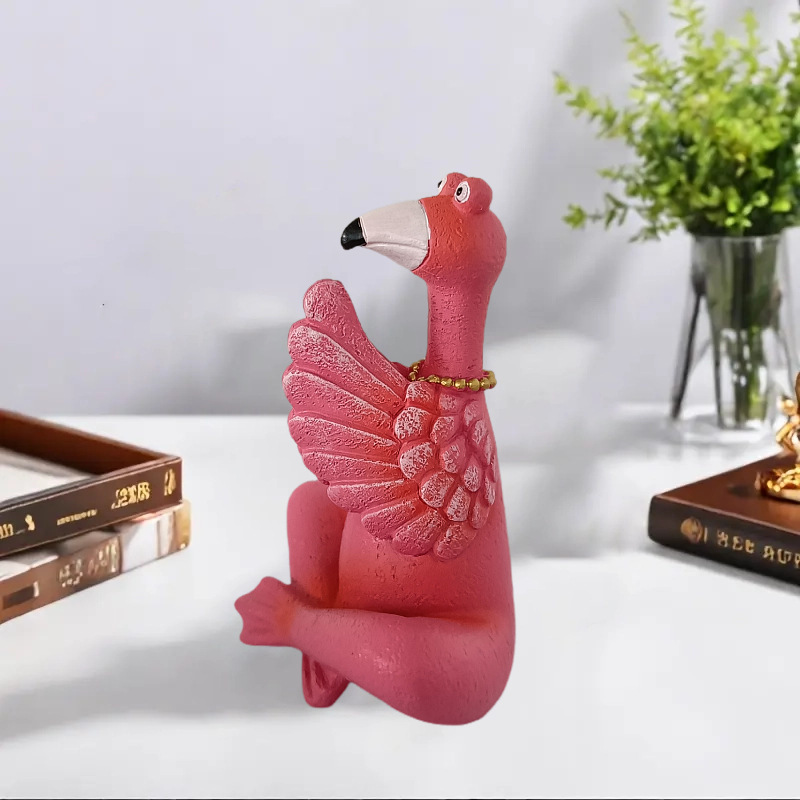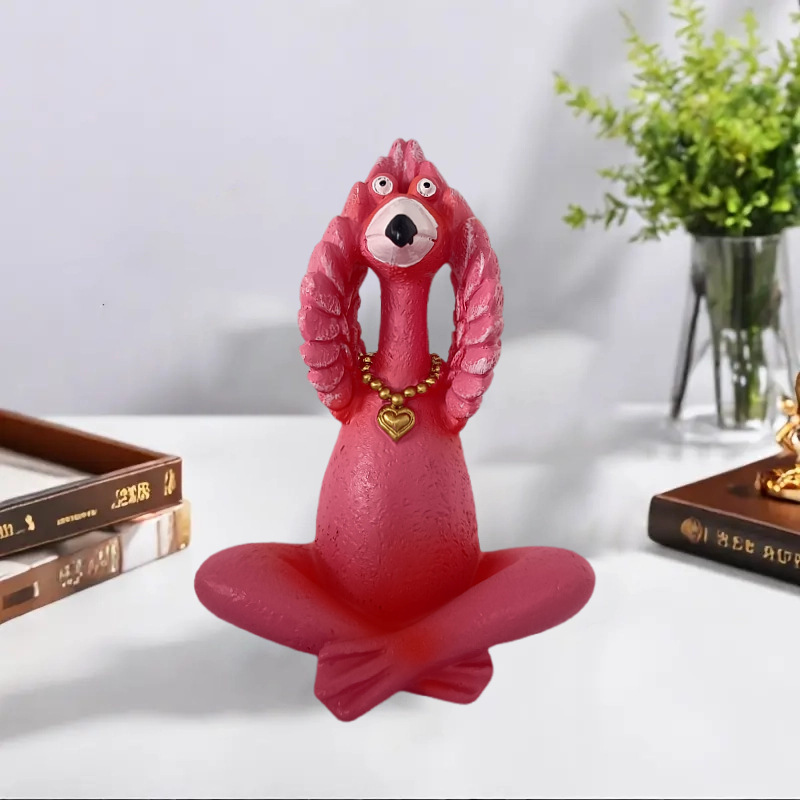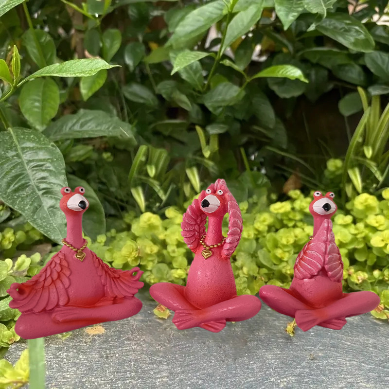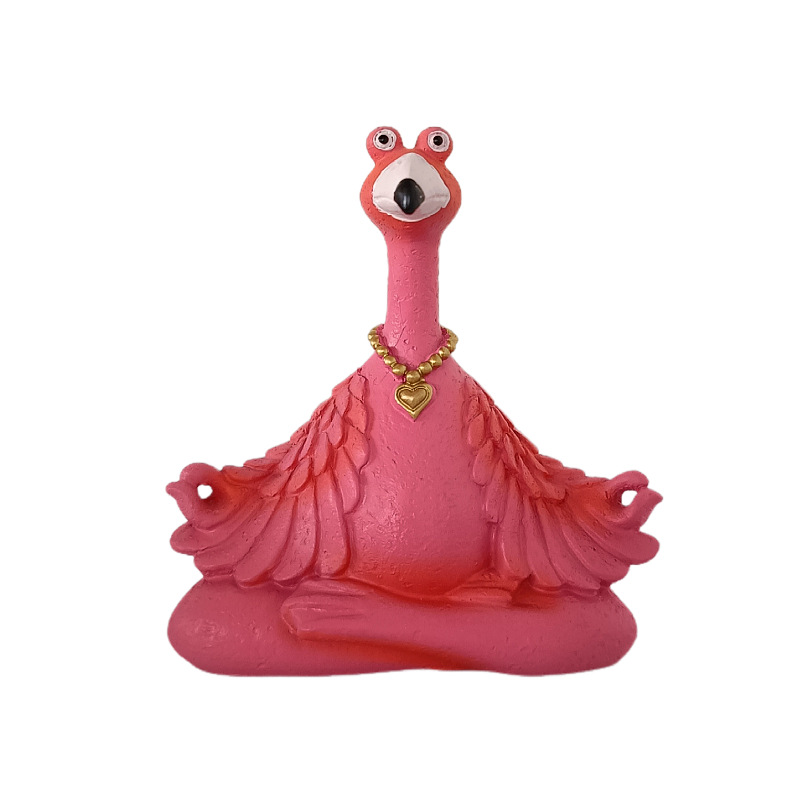 국경 간 새로운 플라밍고 요가 명상 동상 수제 수지 공예 홈 정원 장식 장식품