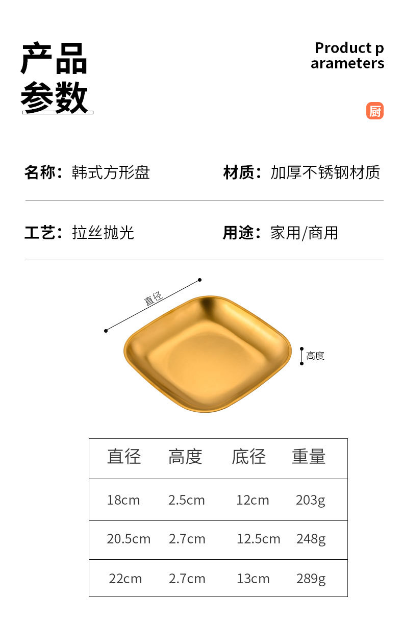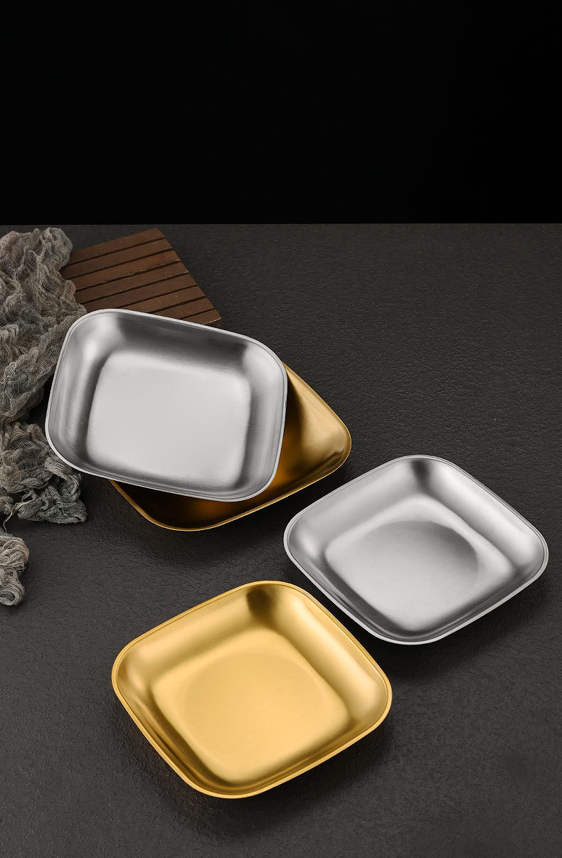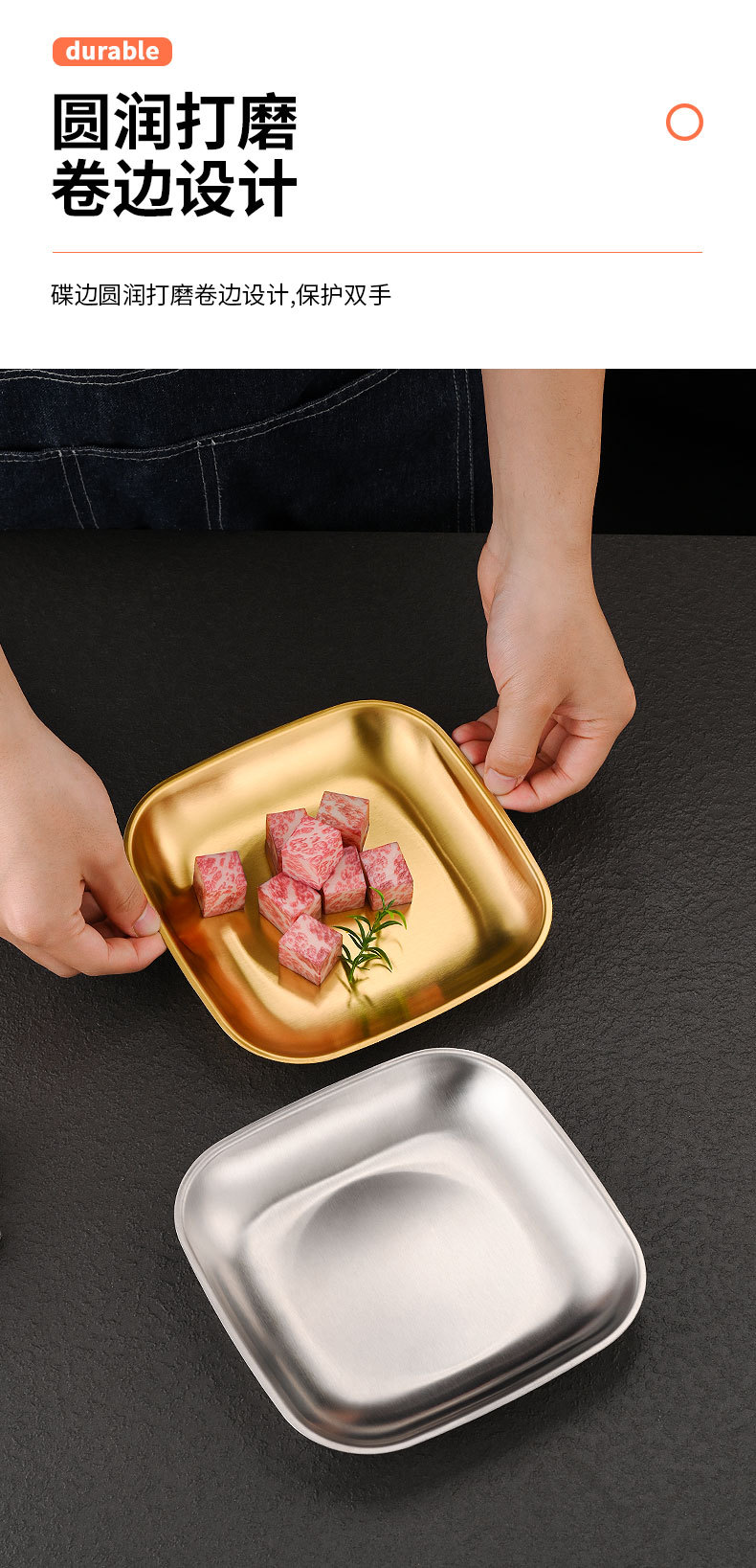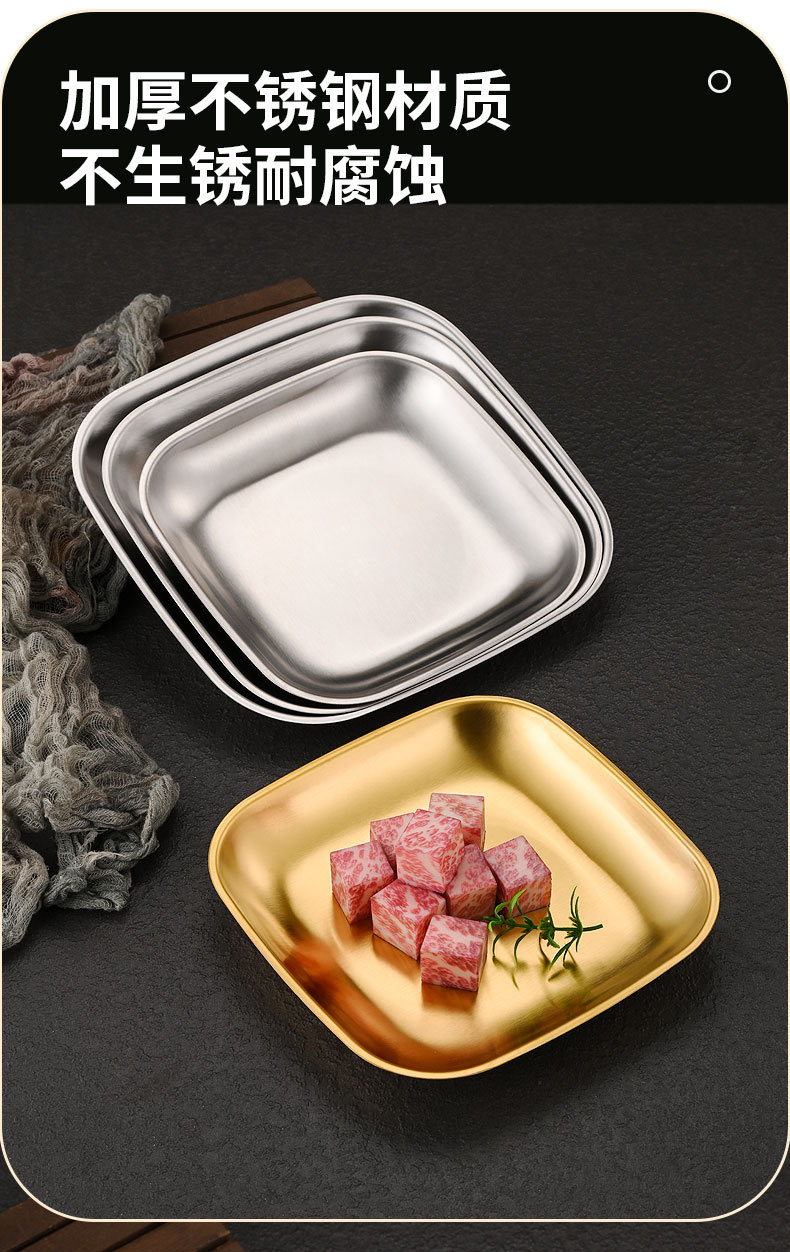 한국식 스테인레스 스틸 스퀘어 플레이트 냄비 바베큐 레스토랑 반찬 접시 간식 얕은 접시 프렌치 프라이 프라이드 치킨 바베큐 접시 디너 플레이트