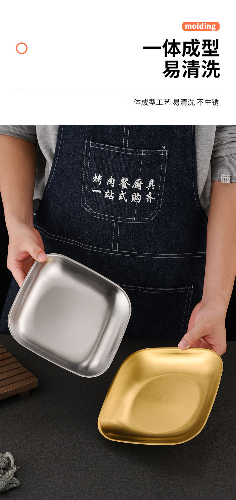 한국식 스테인레스 스틸 스퀘어 플레이트 냄비 바베큐 레스토랑 반찬 접시 간식 얕은 접시 프렌치 프라이 프라이드 치킨 바베큐 접시 디너 플레이트스토어 가기