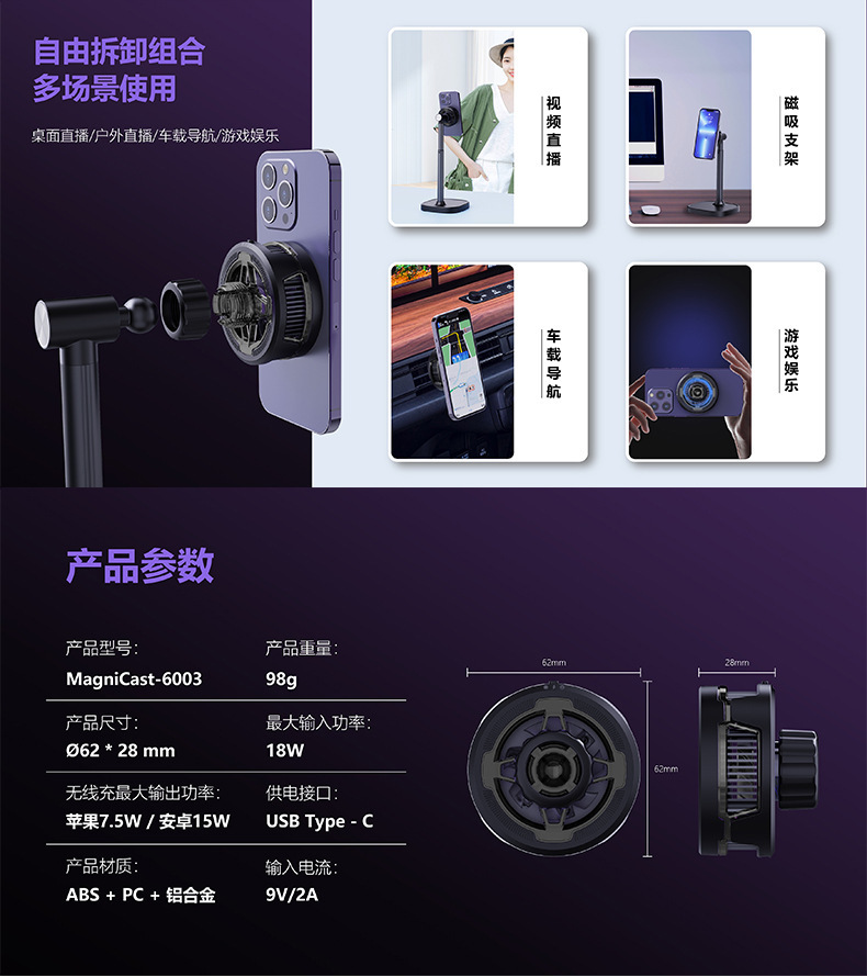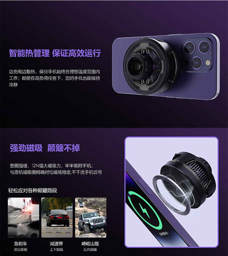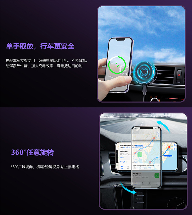 • 강력한 자기 무선 충전 라디에이터(브래킷은 포함되지 않음)