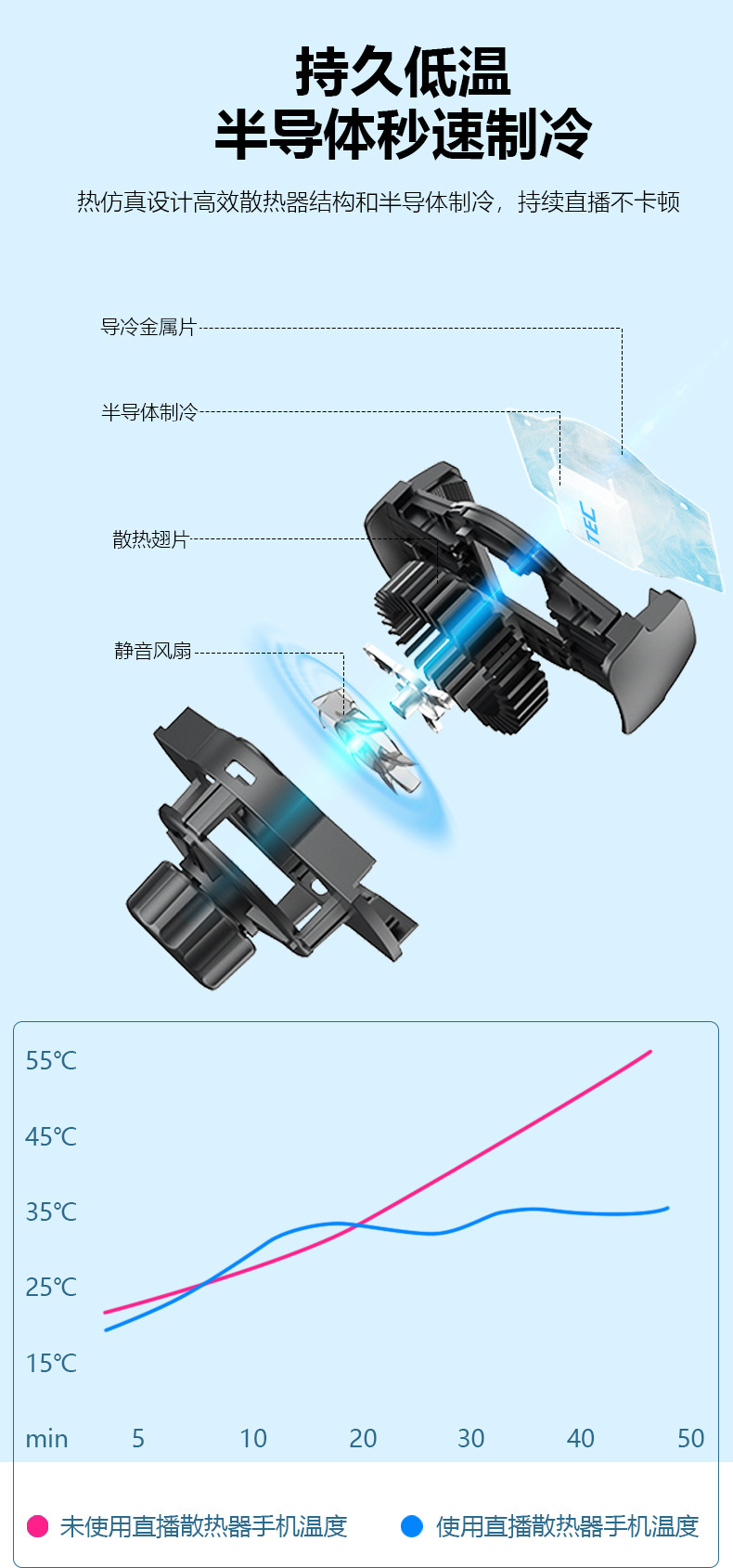 Geith 공장 새로운 반도체 냉동 자기 라디에이터 게임 라이브 휴대 전화 라디에이터 울트라 조용한