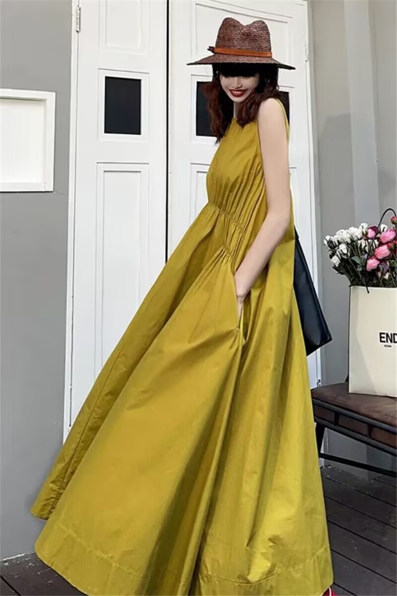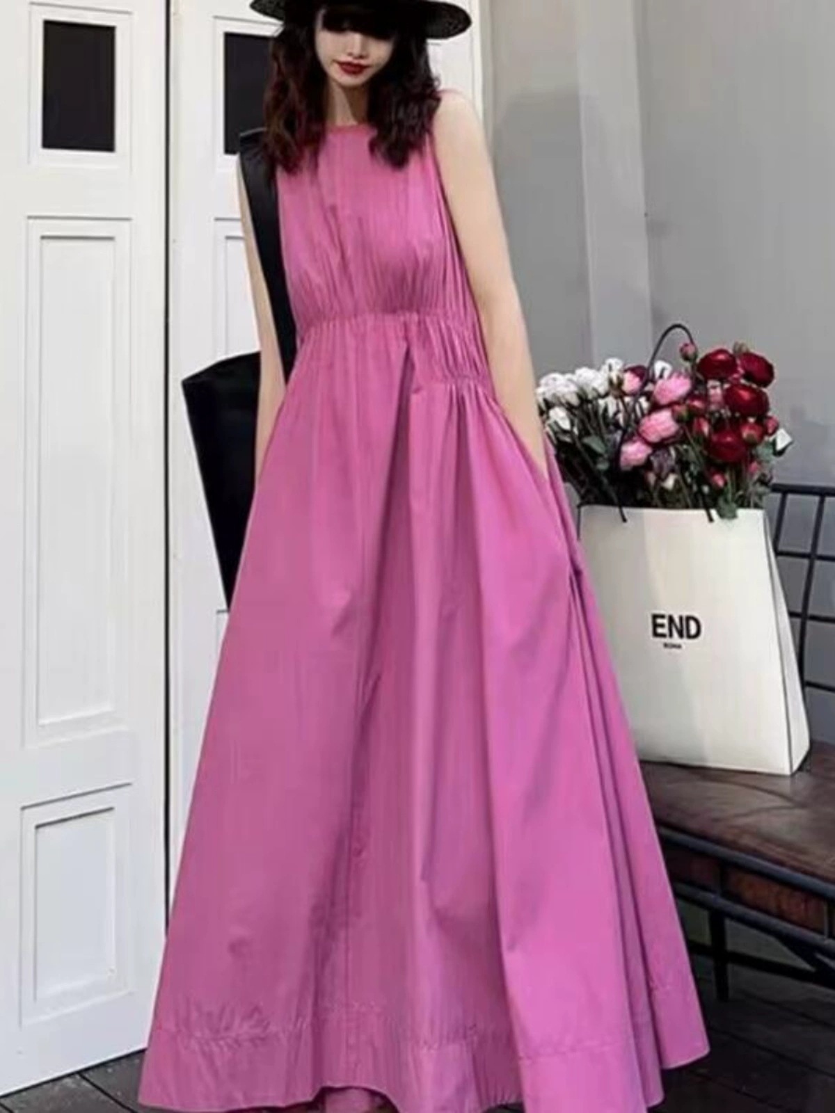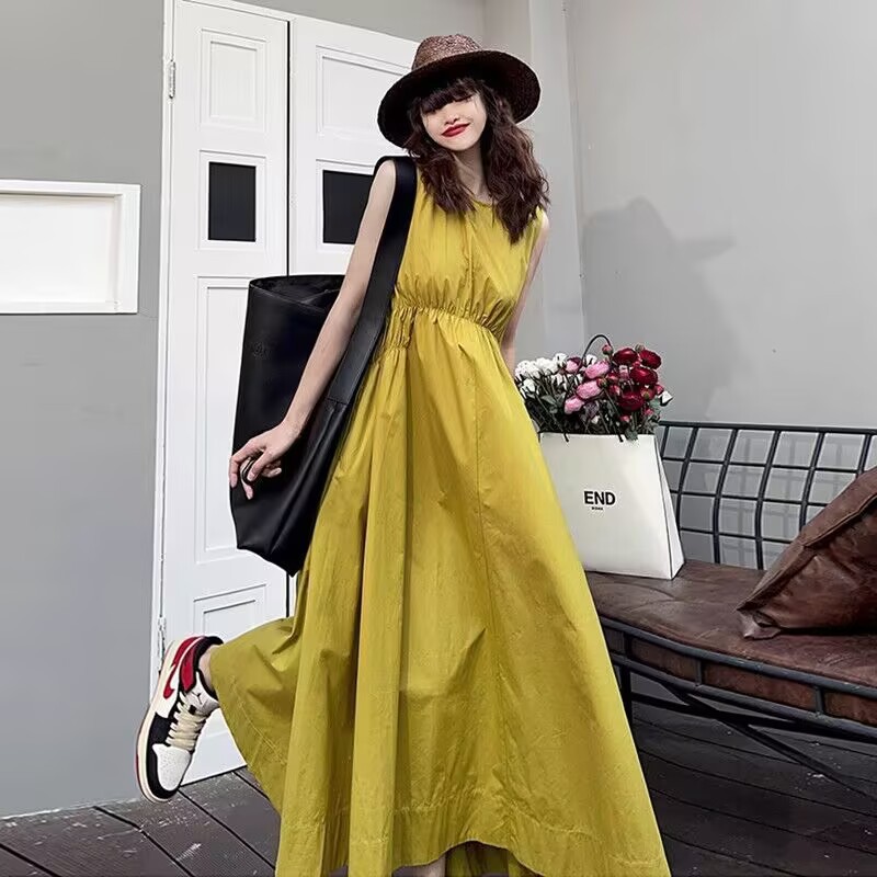 민소매 원피스 느슨한 플러스 사이즈 슬림 핏 크루 넥베이스 스커트 Bf 스타일 캐주얼 학생의 느슨한 허리 긴 스커트