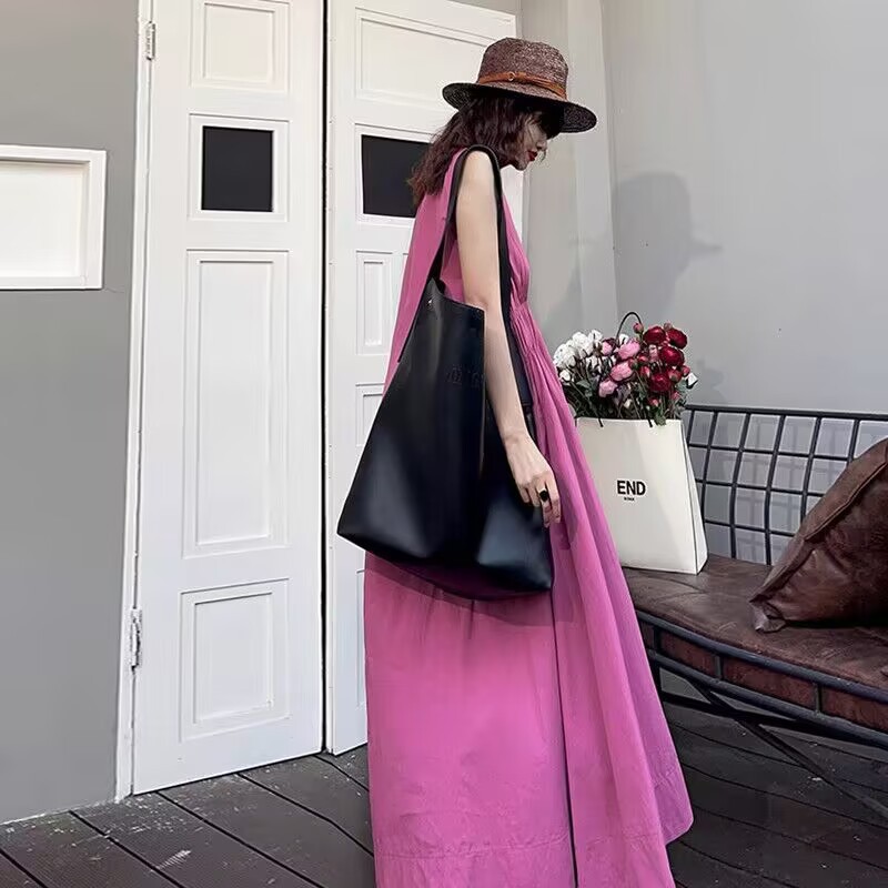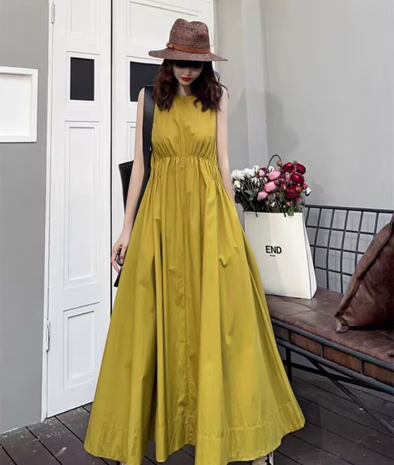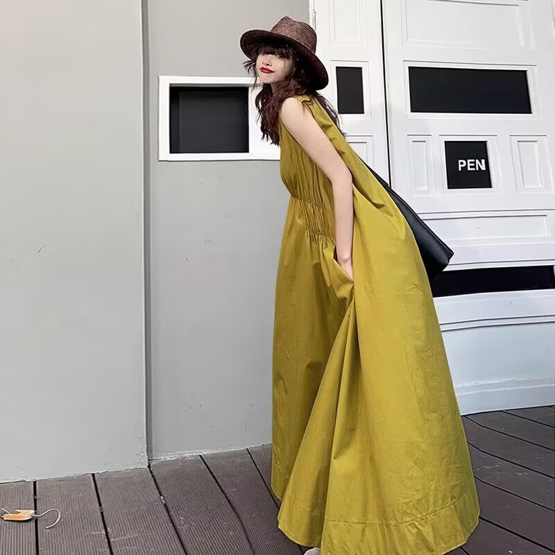 민소매 원피스 느슨한 플러스 사이즈 슬림 핏 크루 넥베이스 스커트 Bf 스타일 캐주얼 학생의 느슨한 허리 긴 스커트스토어 가기