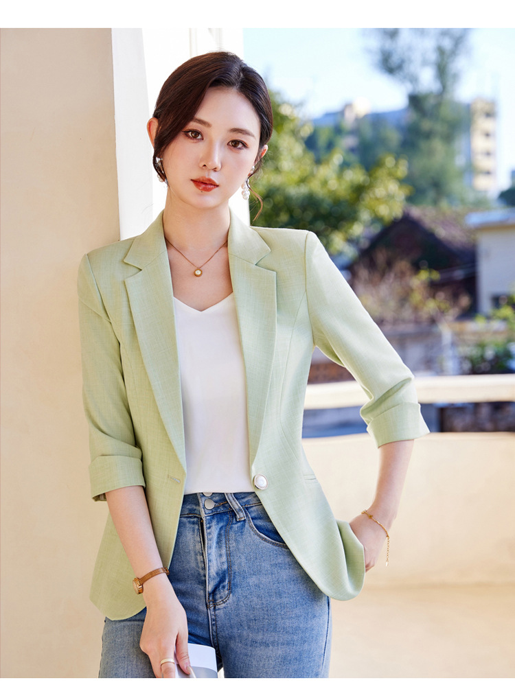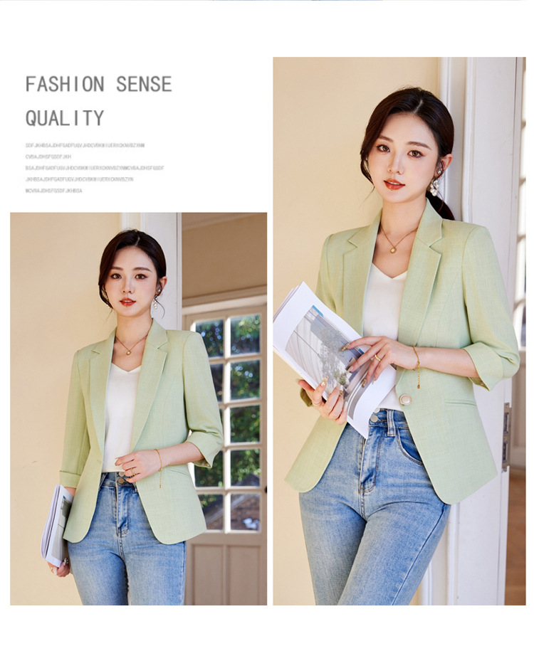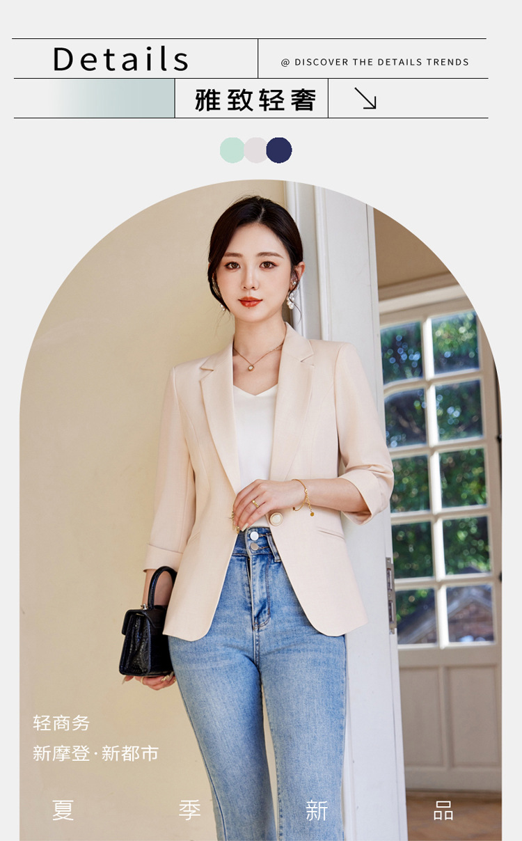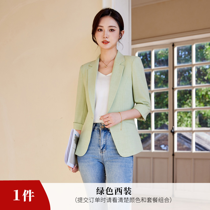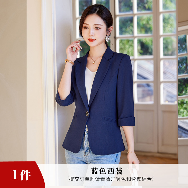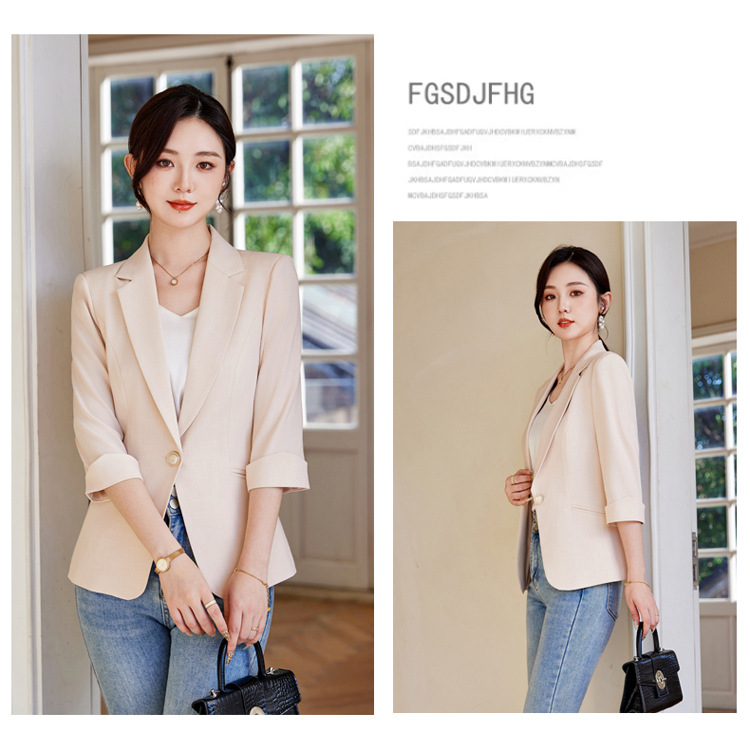봄과 가을 새로운 살구색 7 점 소매 전문 세트 높은 우아한 패션 통근 작은 세트 조커 재킷 도매스토어 가기