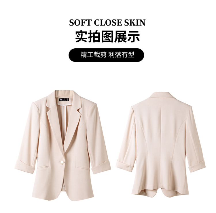 봄과 가을 새로운 살구색 7 점 소매 전문 세트 높은 우아한 패션 통근 작은 세트 조커 재킷 도매