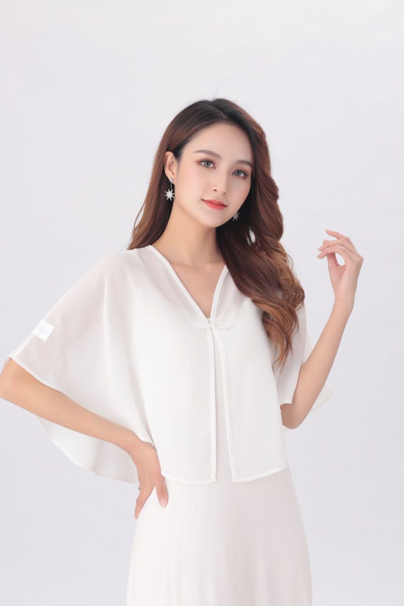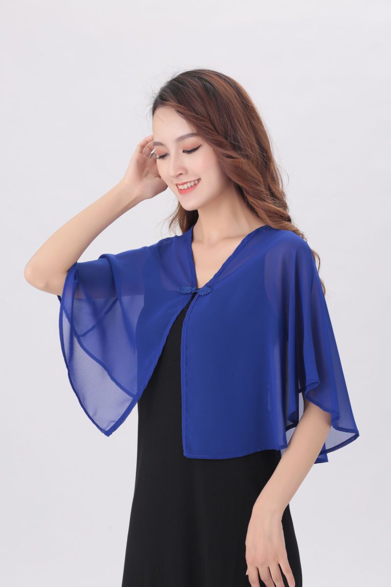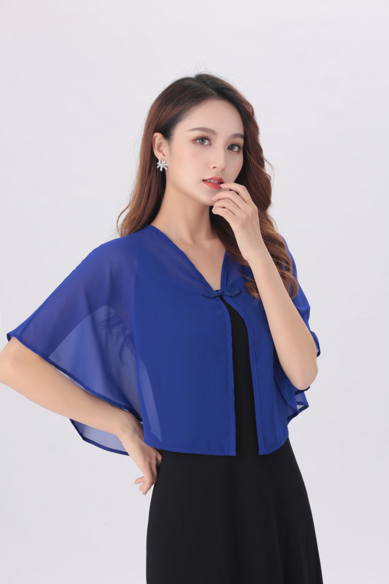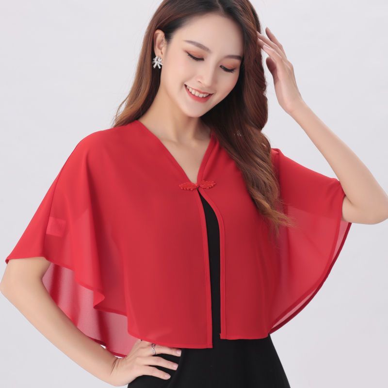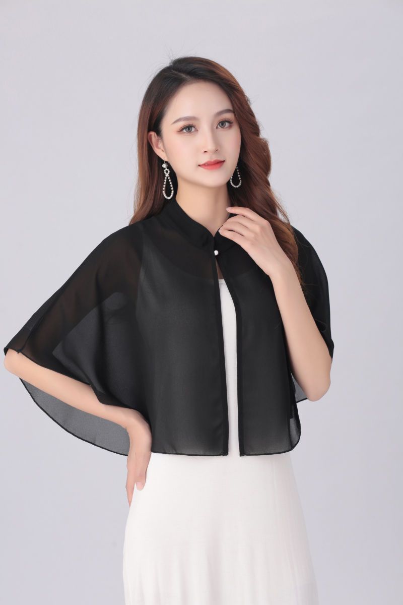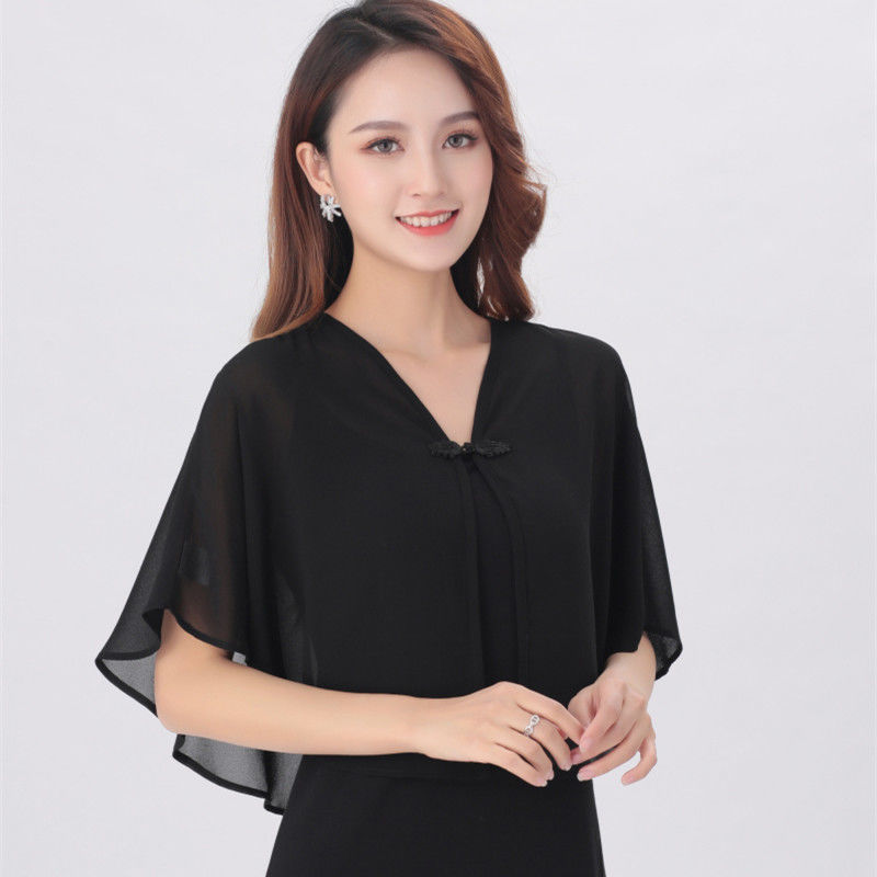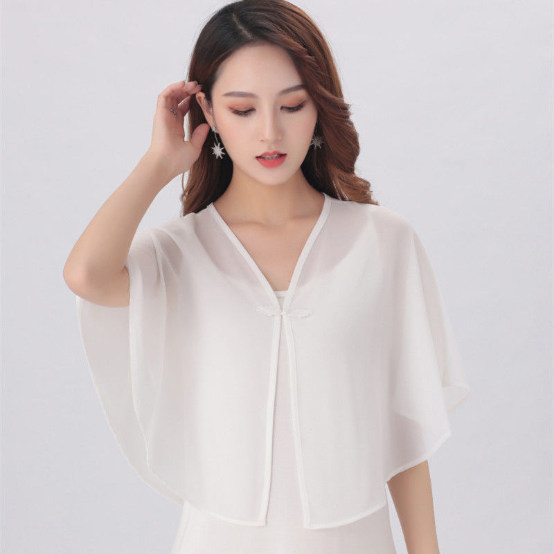 여름 케이프 케이프 탑 여자 쉬폰 외부 카디건 느슨한 외부 짧은 블라우스 스커트와 작은 허리 코트