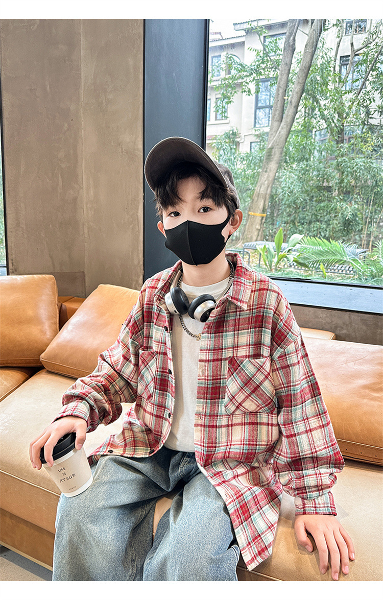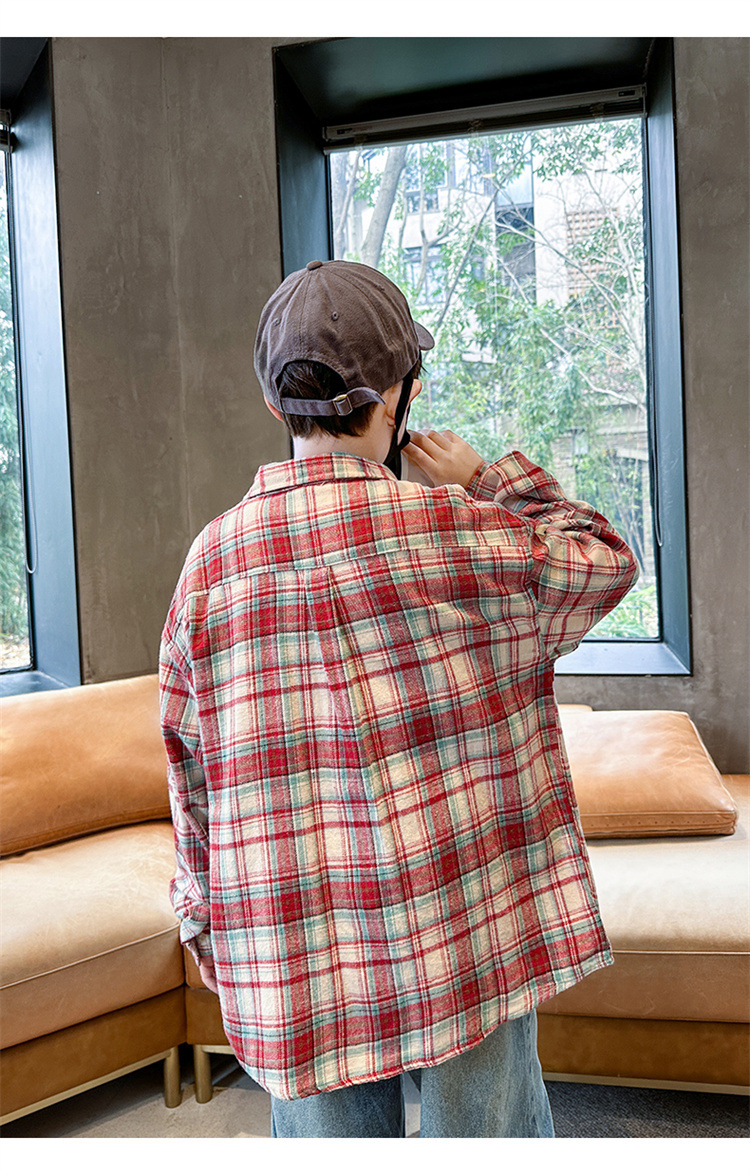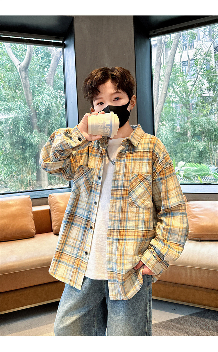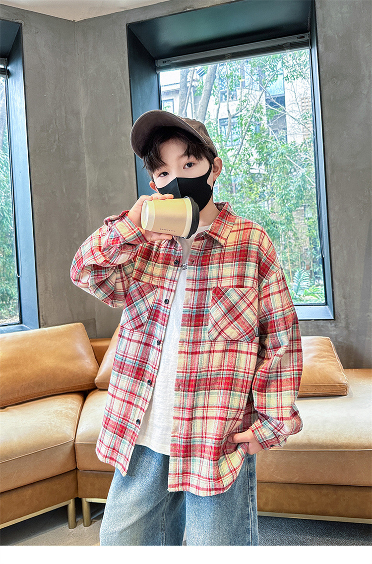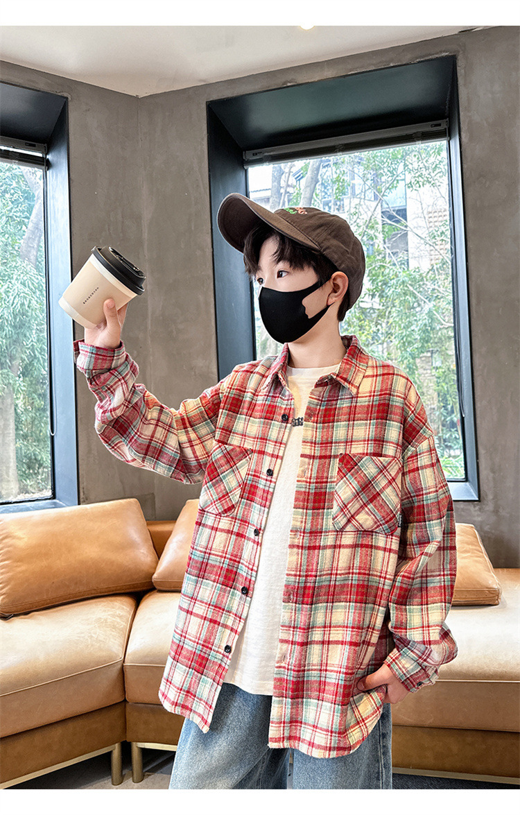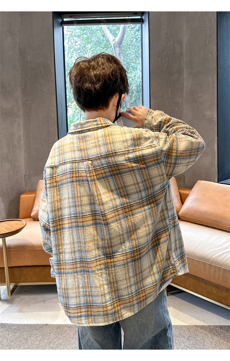 소년 격자 무늬 셔츠 봄 2025 새로운 어린이 긴 소매 셔츠 봄과 가을 대외 무역 최고 유행 격자 무늬 셔츠스토어 가기