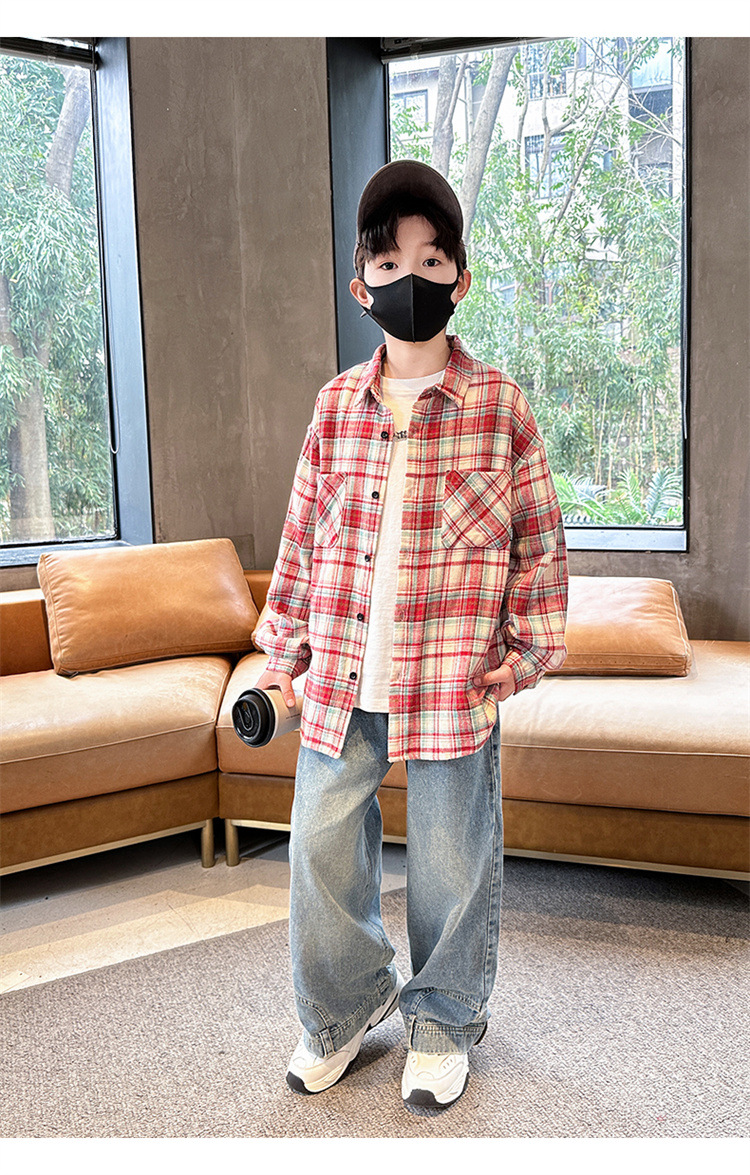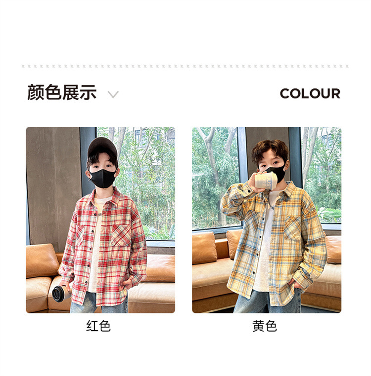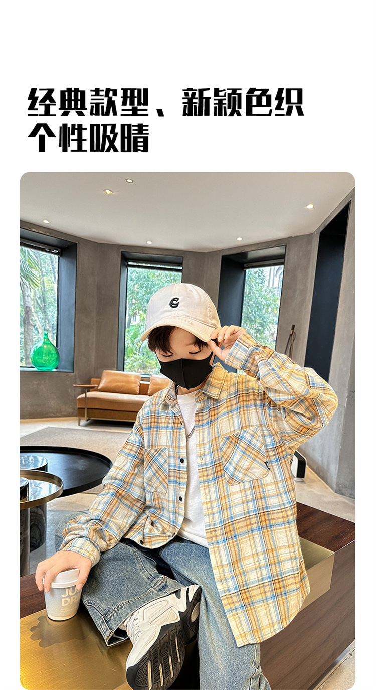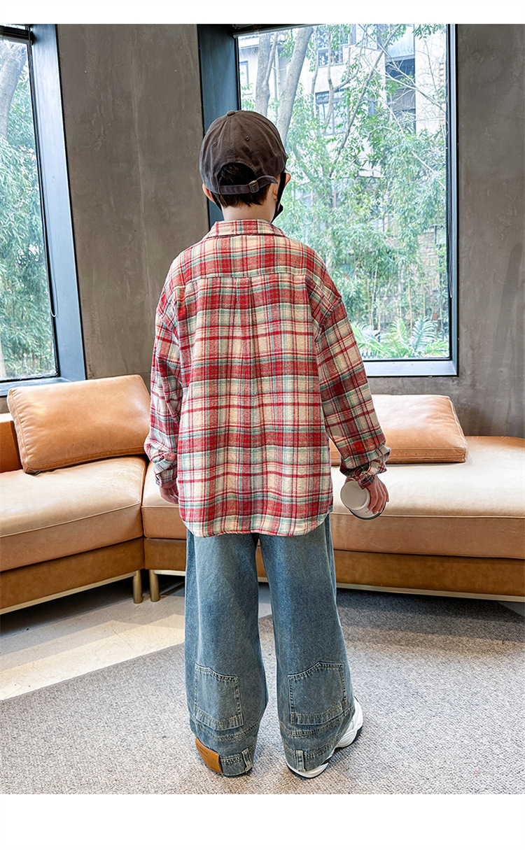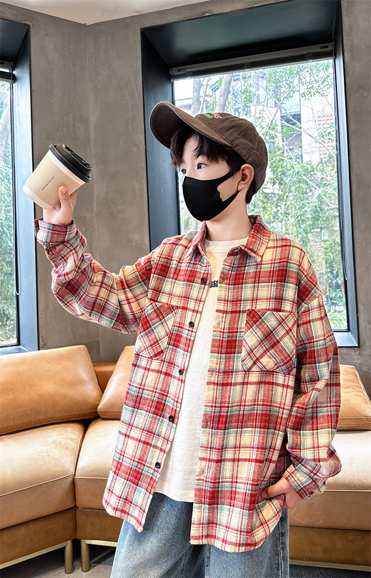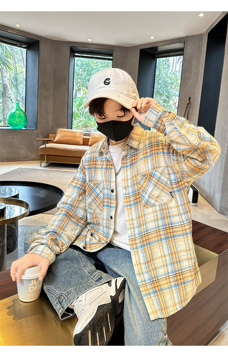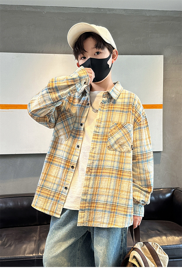 소년 격자 무늬 셔츠 봄 2025 새로운 어린이 긴 소매 셔츠 봄과 가을 대외 무역 최고 유행 격자 무늬 셔츠스토어 가기