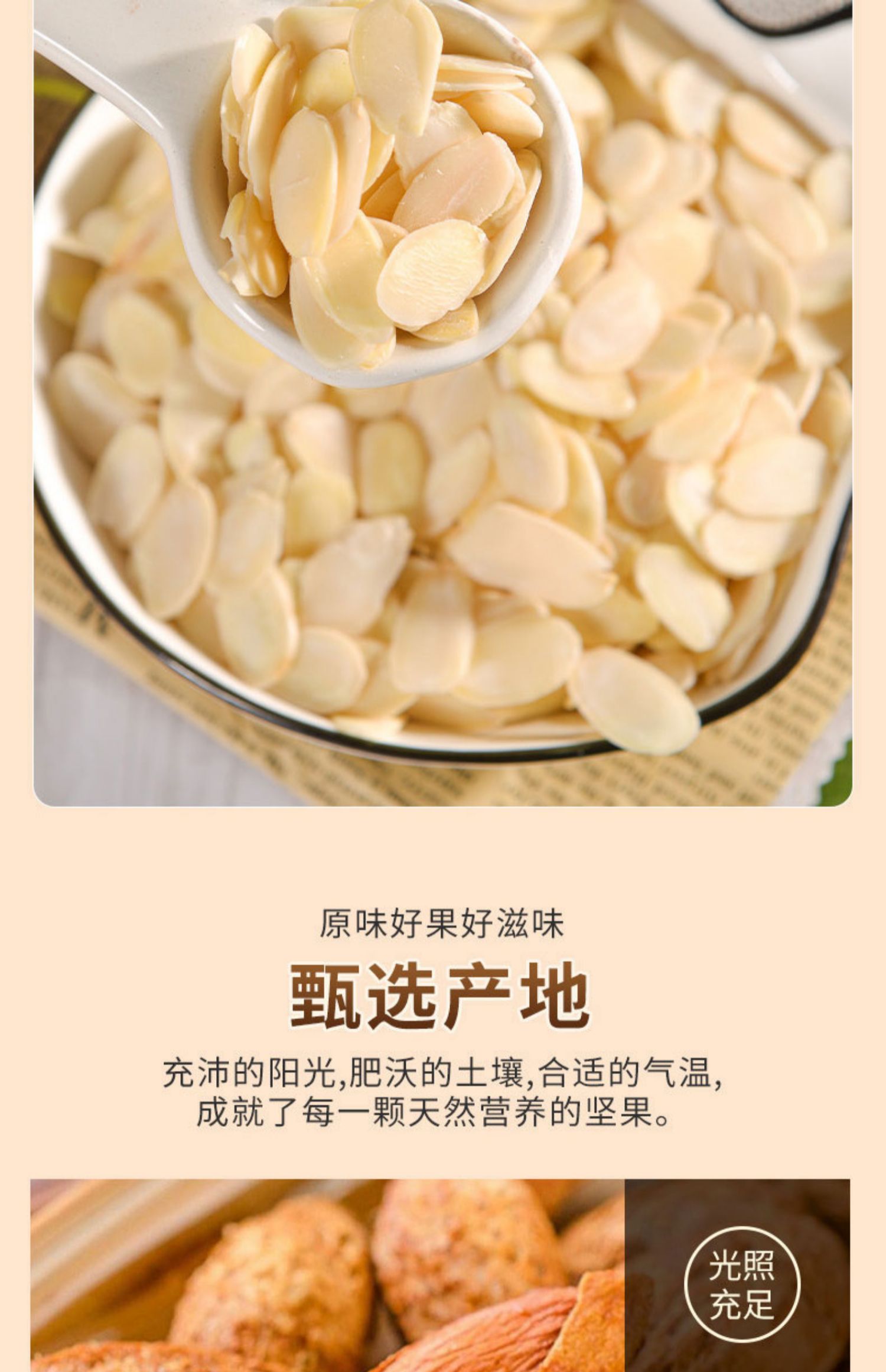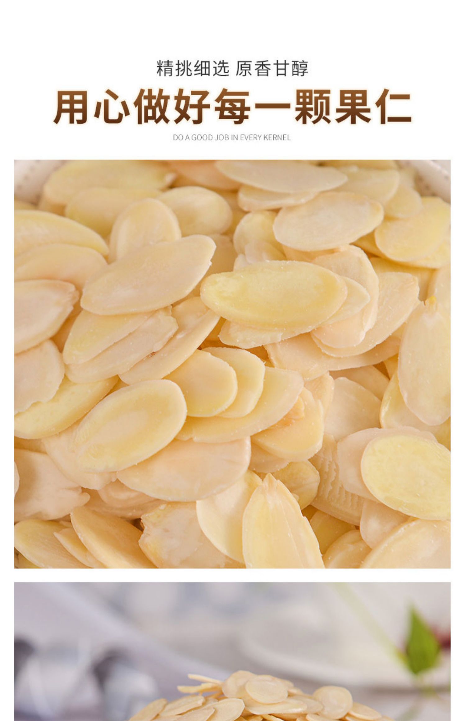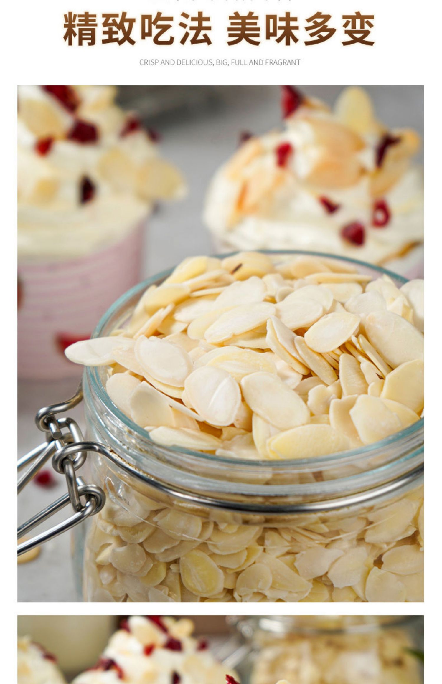 새로운 원래 원시 대형 아몬드 조각 구운 껍질 아몬드 조각 상업용 너트 얇은 크리스프 소재스토어 가기