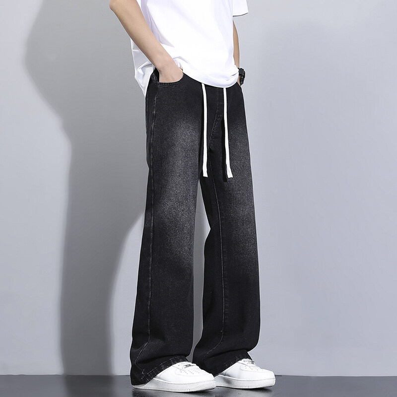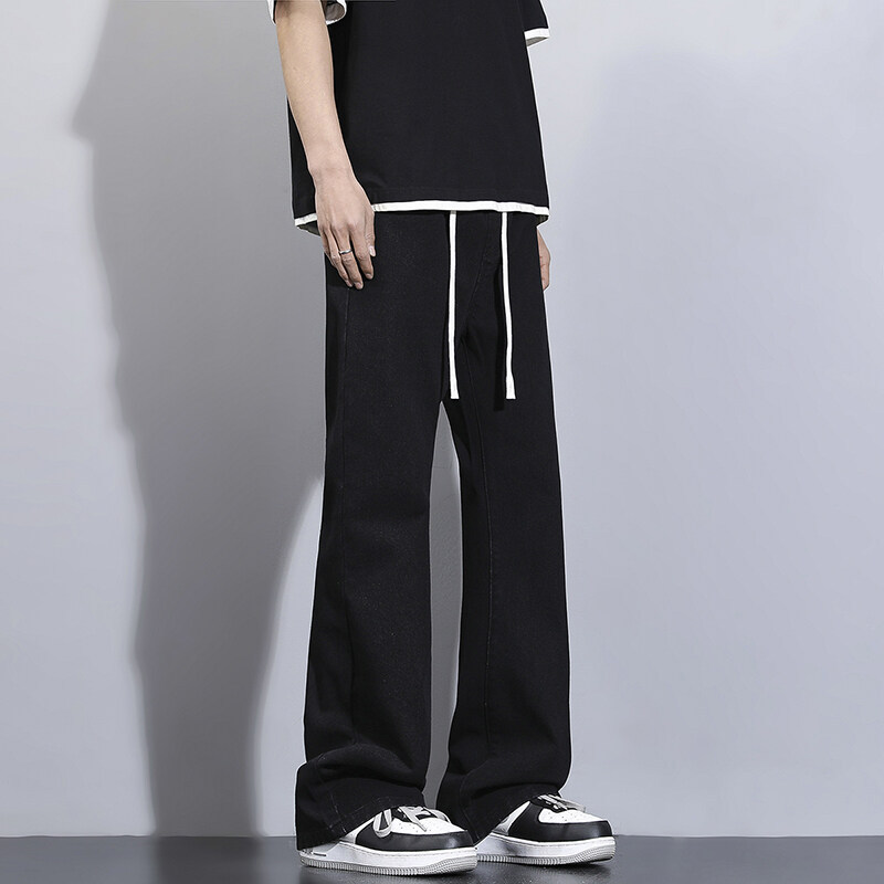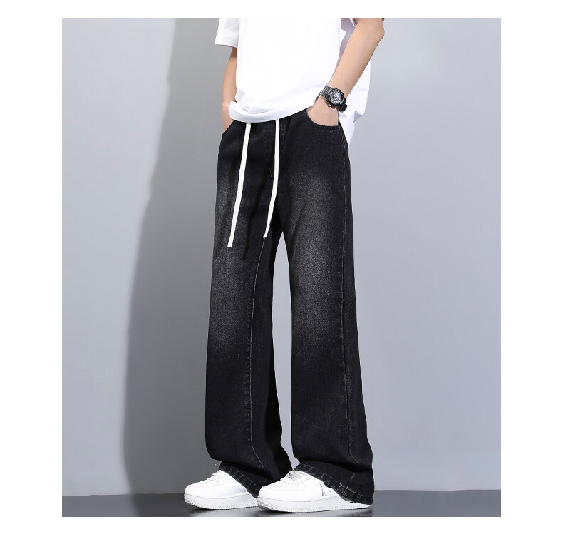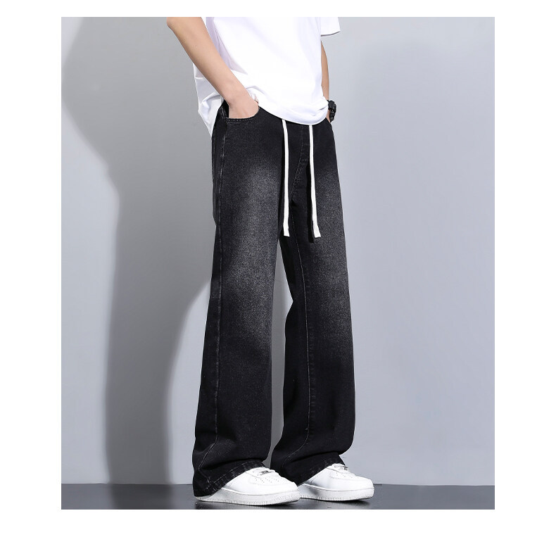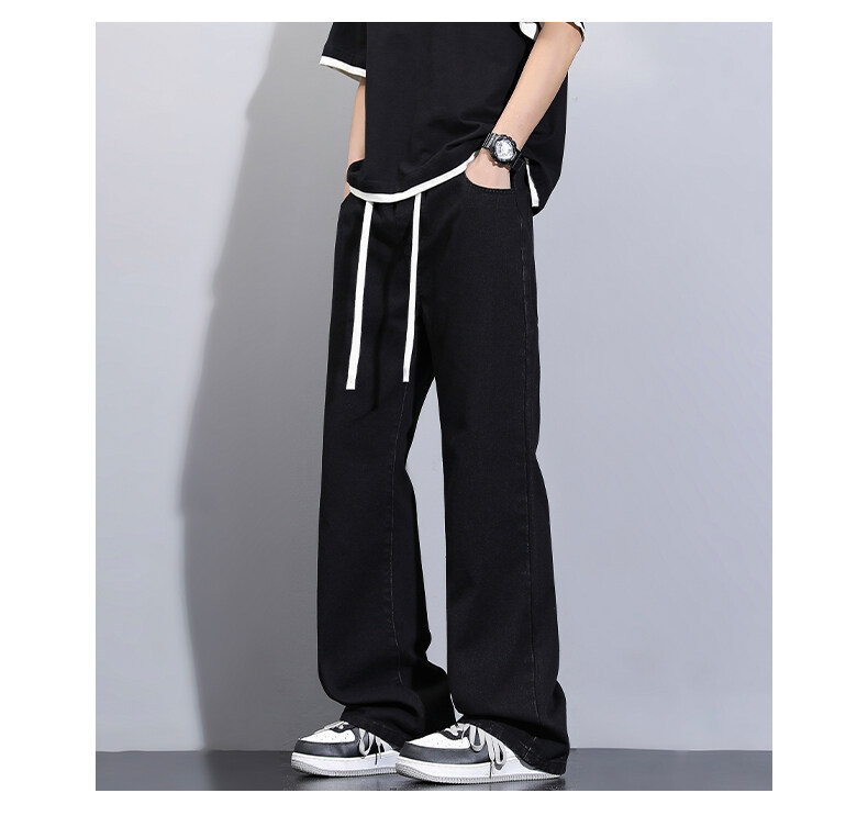 봄 뉴 블랙 청바지 남자 루즈 스트레이트 캐주얼 올 매치 플러스 사이즈 바지 남자 아메리칸 스타일 레트로 하이 스트리트스토어 가기