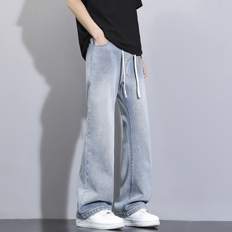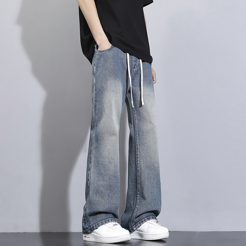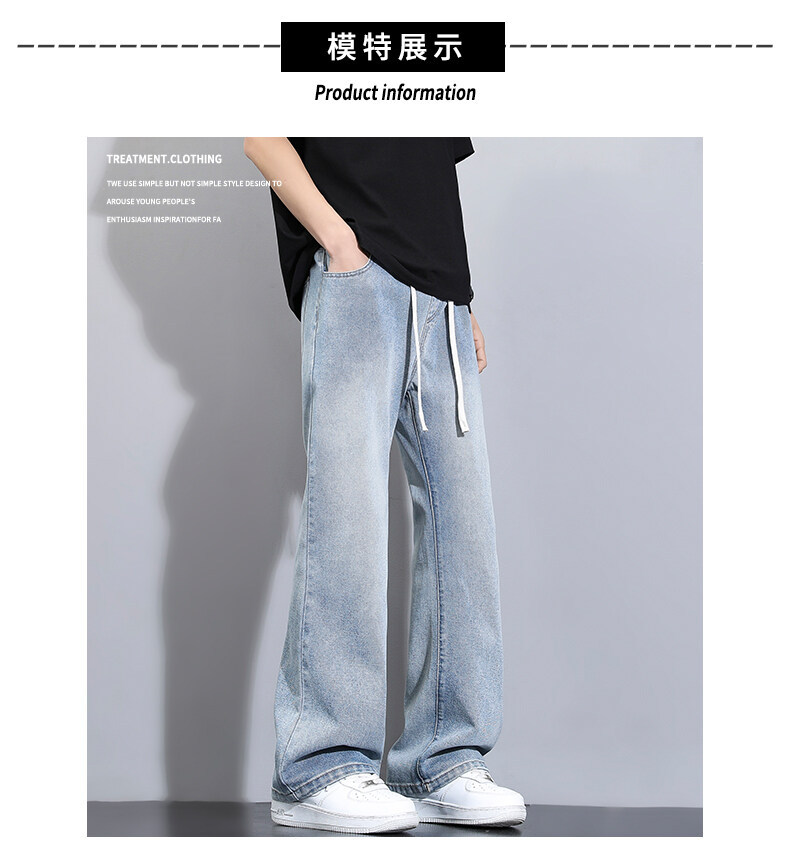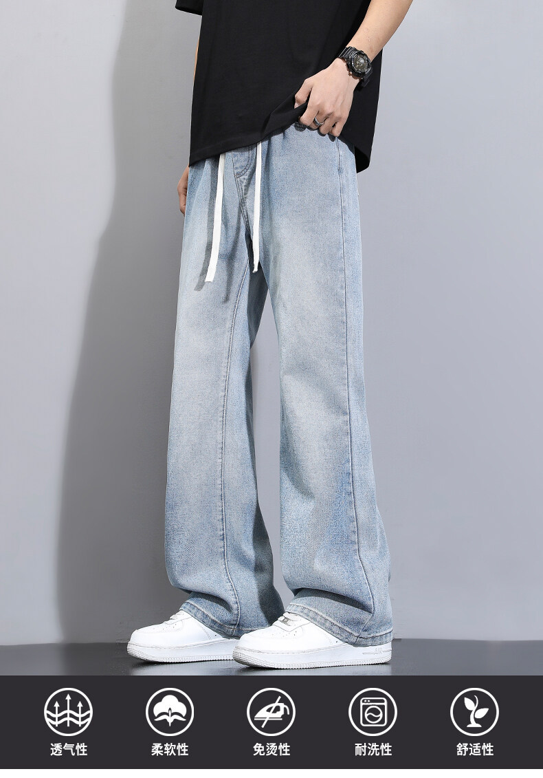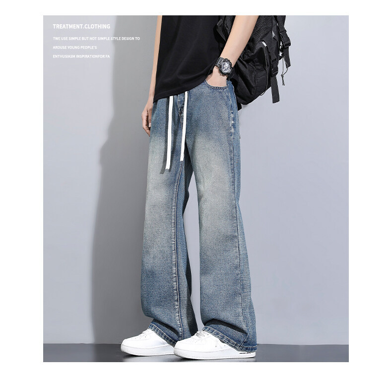 봄 뉴 블랙 청바지 남자 루즈 스트레이트 캐주얼 올 매치 플러스 사이즈 바지 남자 아메리칸 스타일 레트로 하이 스트리트스토어 가기