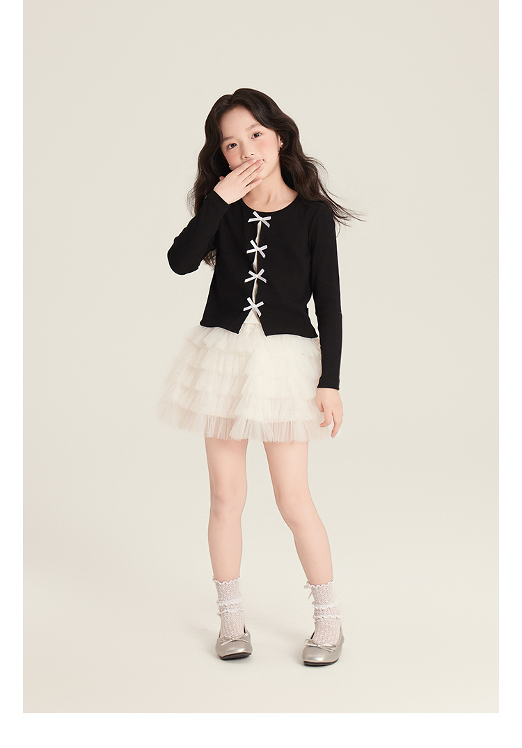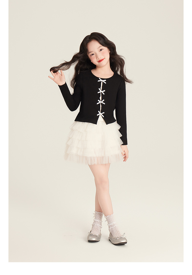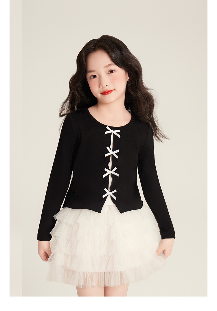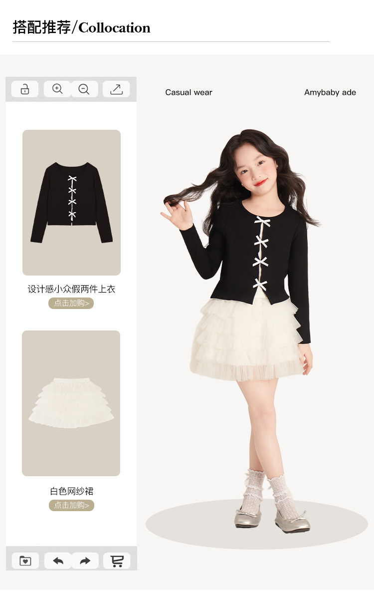Amybaby Girls 'Top Spring 2025 새로운 디자인 센스 틈새 우아한 가짜 투피스 긴팔 슬림 핏 탑스토어 가기
