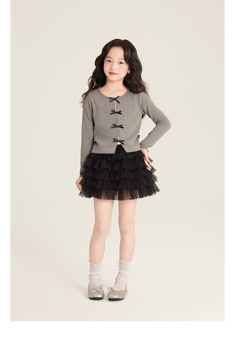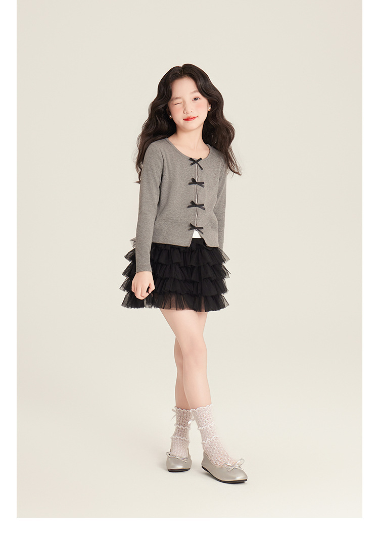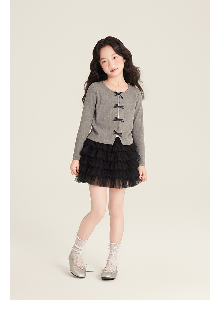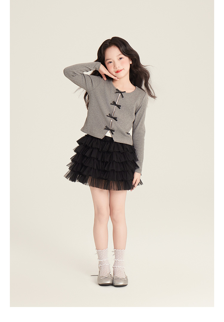Amybaby Girls 'Top Spring 2025 새로운 디자인 센스 틈새 우아한 가짜 투피스 긴팔 슬림 핏 탑스토어 가기