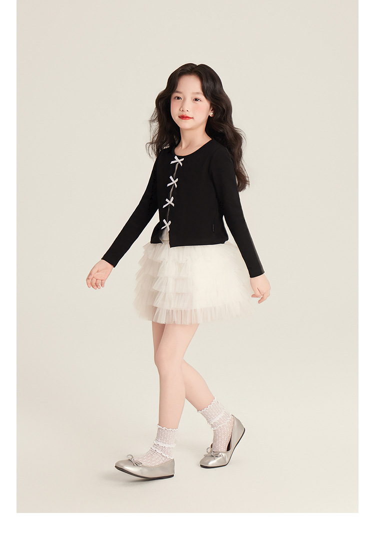 Amybaby Girls 'Top Spring 2025 새로운 디자인 센스 틈새 우아한 가짜 투피스 긴팔 슬림 핏 탑