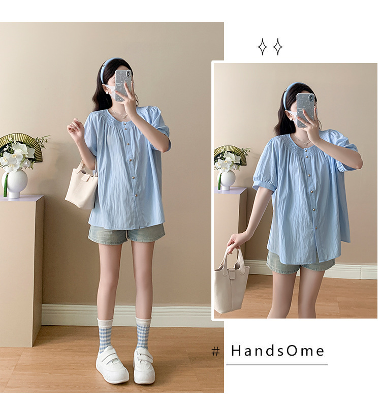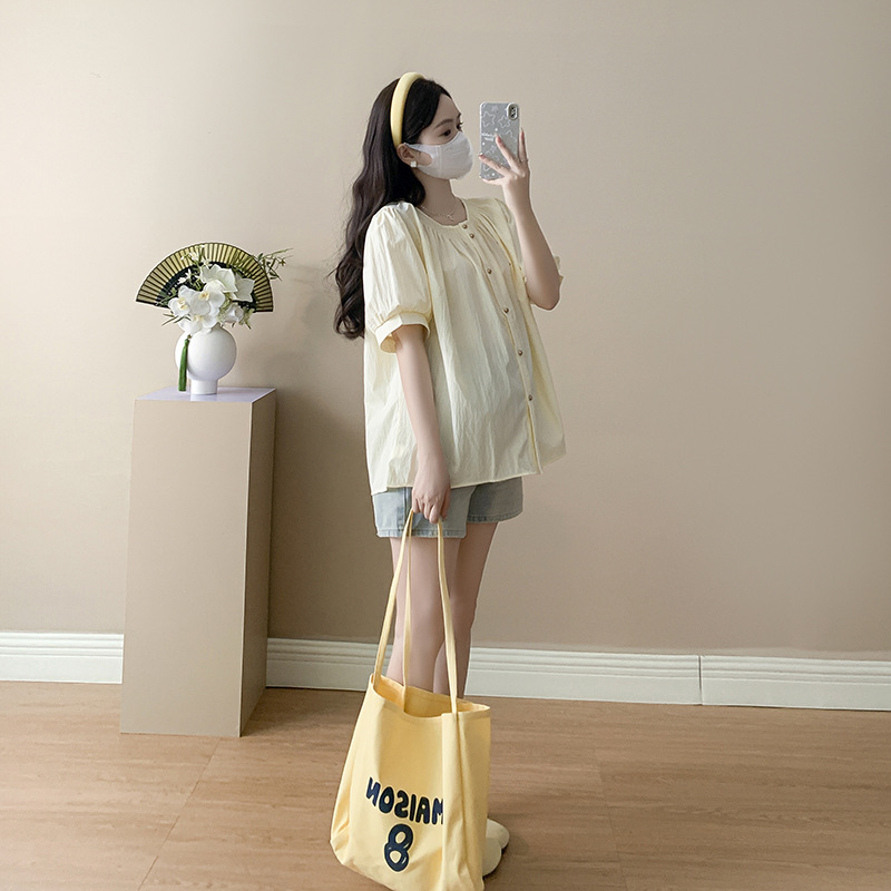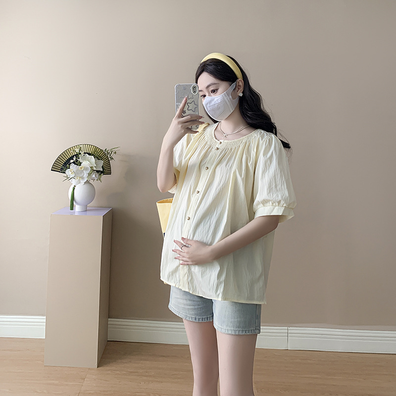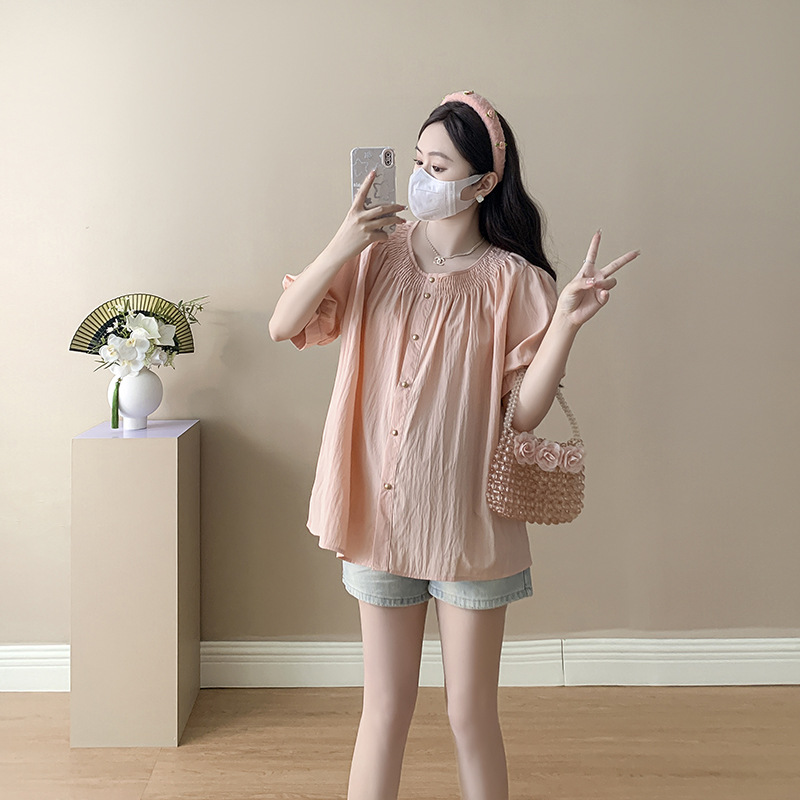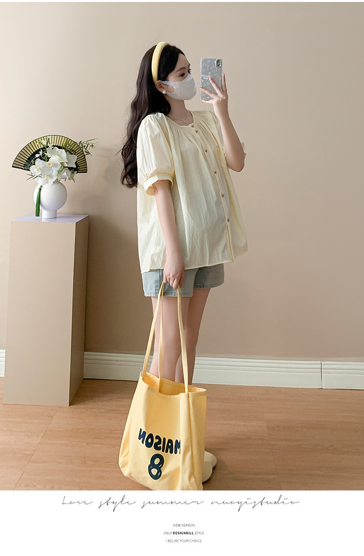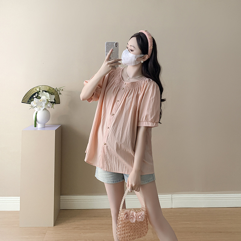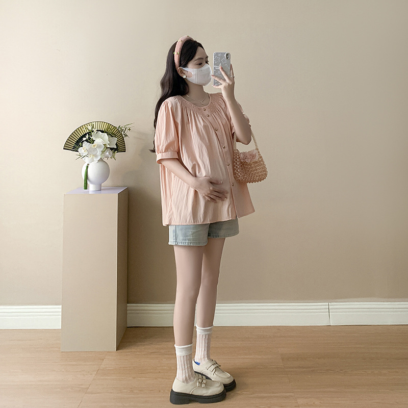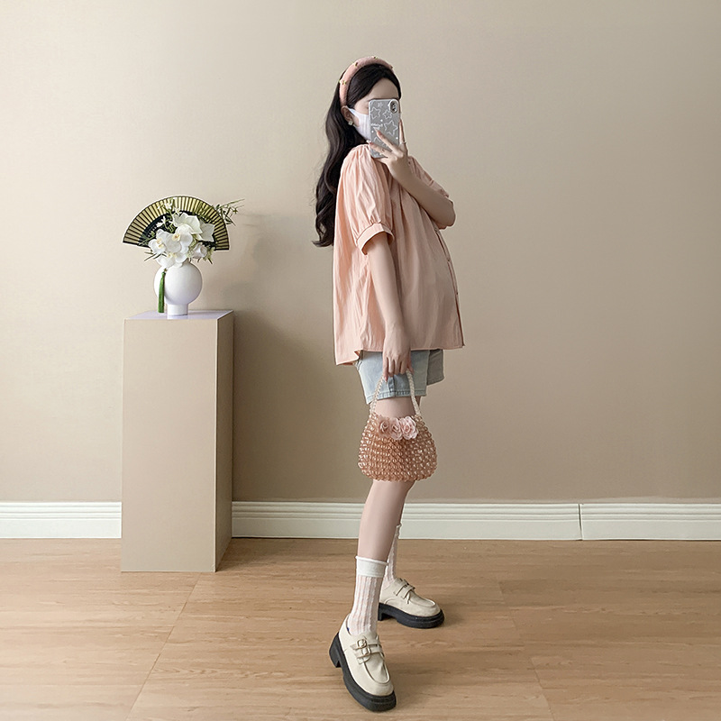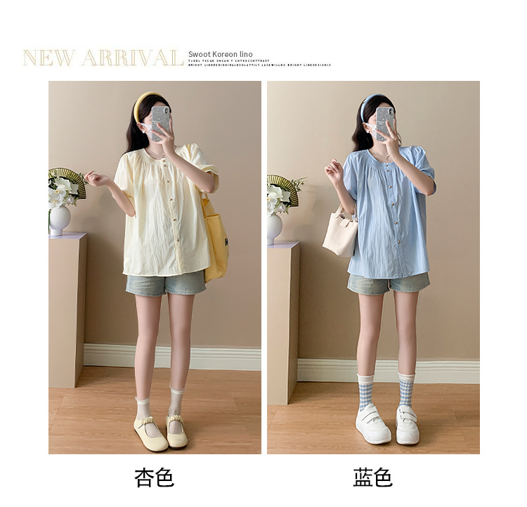 출산복 2025 여름 신작 달콤하고 패셔너블한 쉬폰 루즈 셔츠, 모유 수유용 다용도 상의