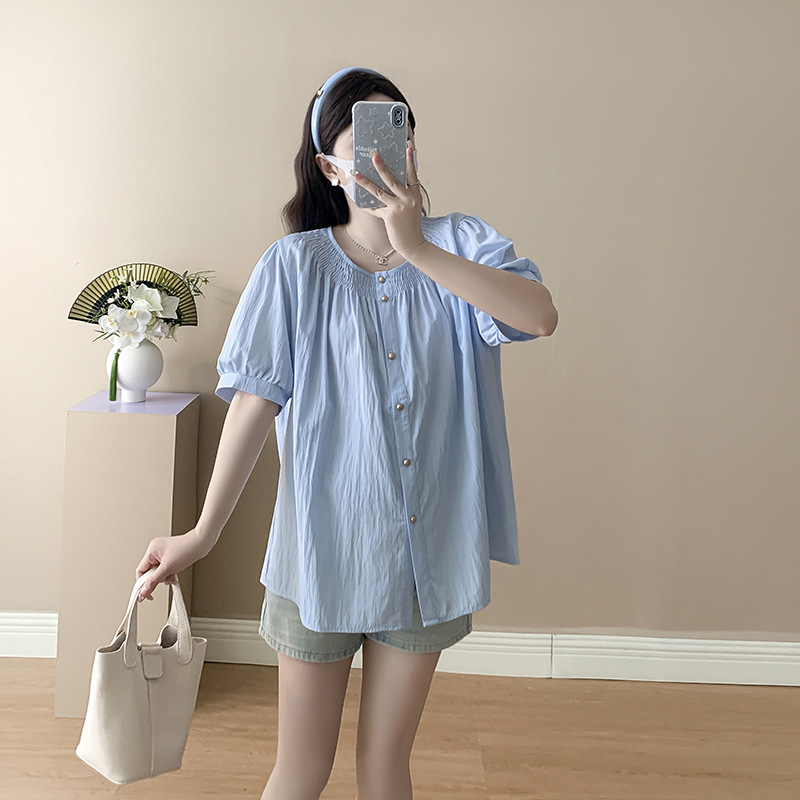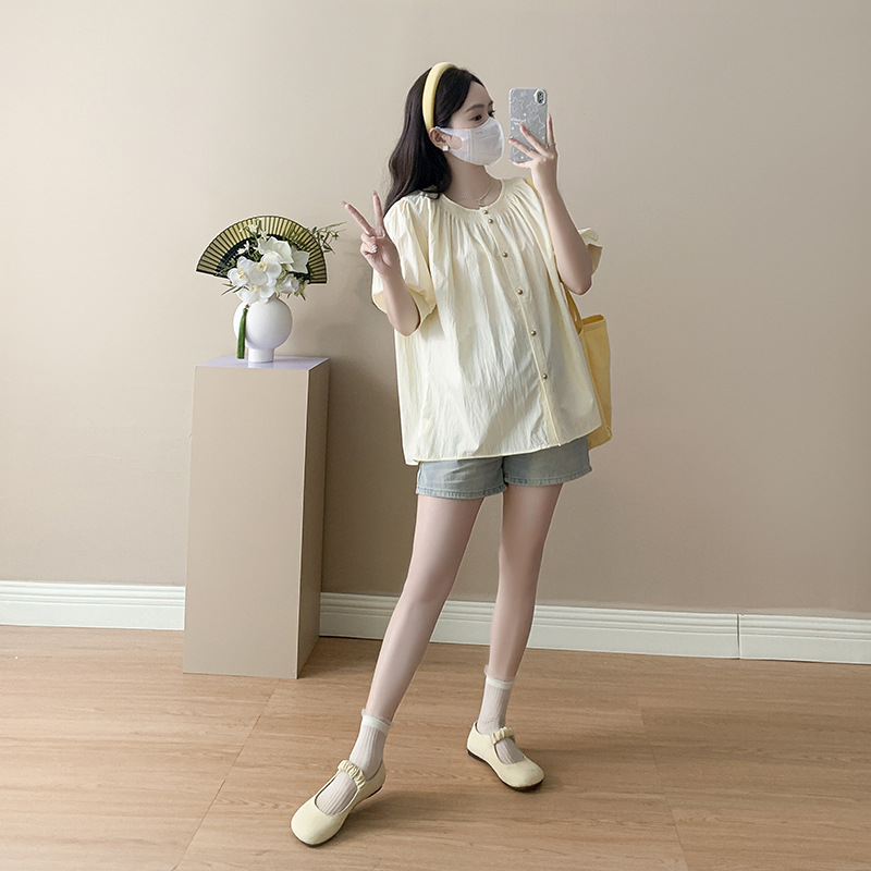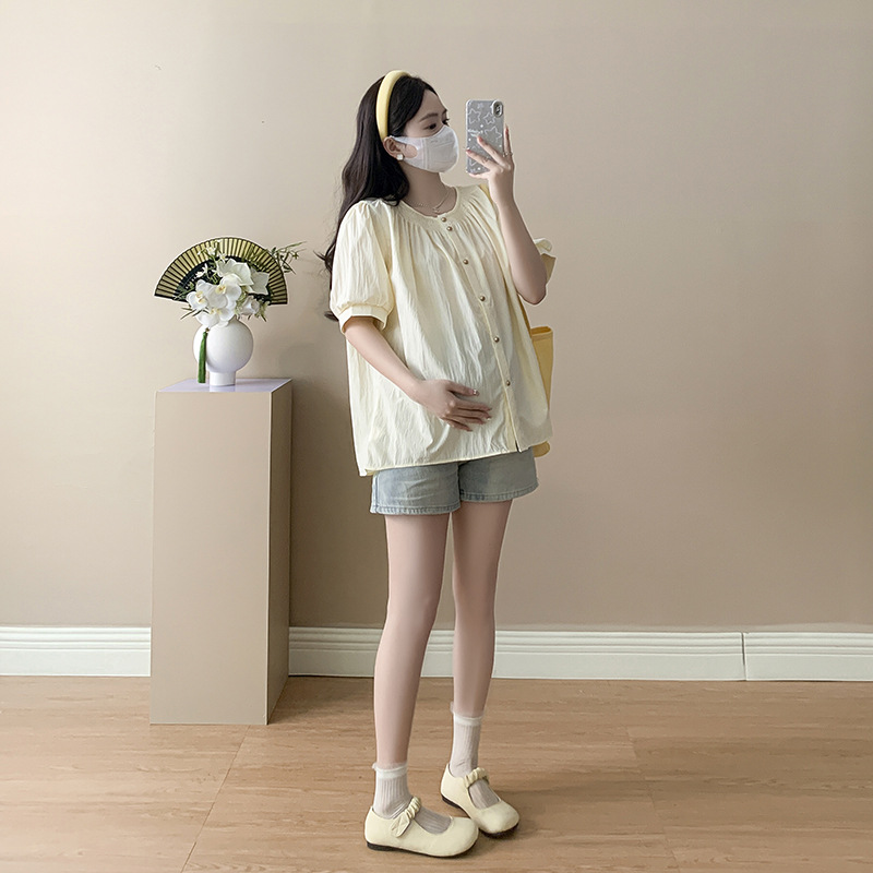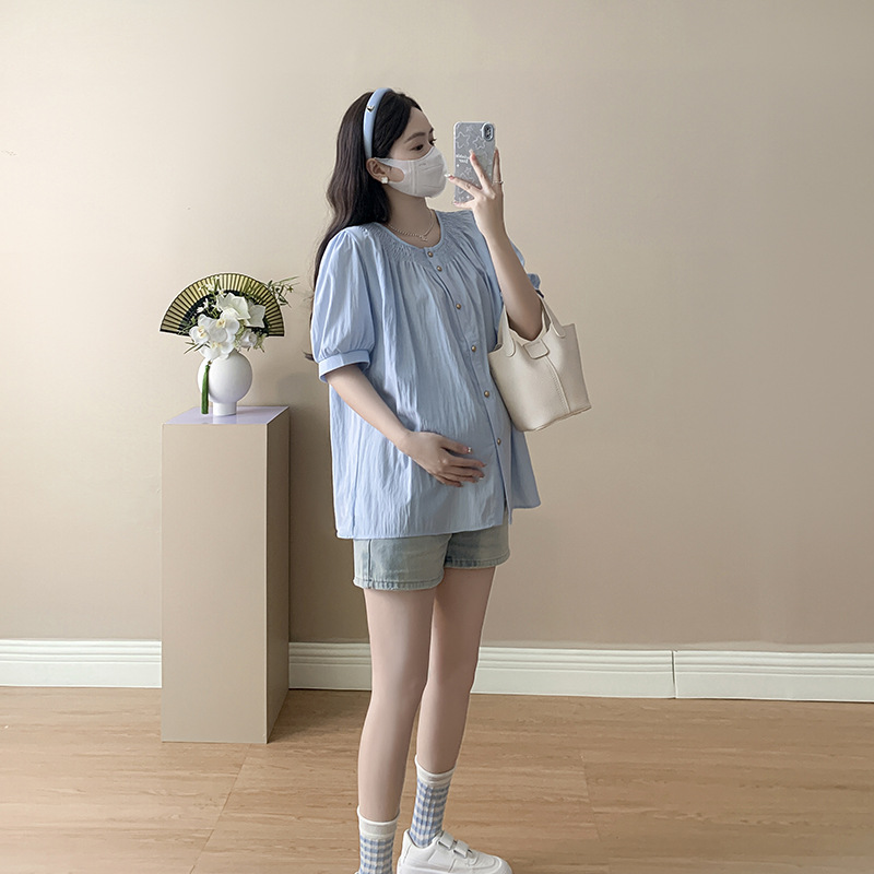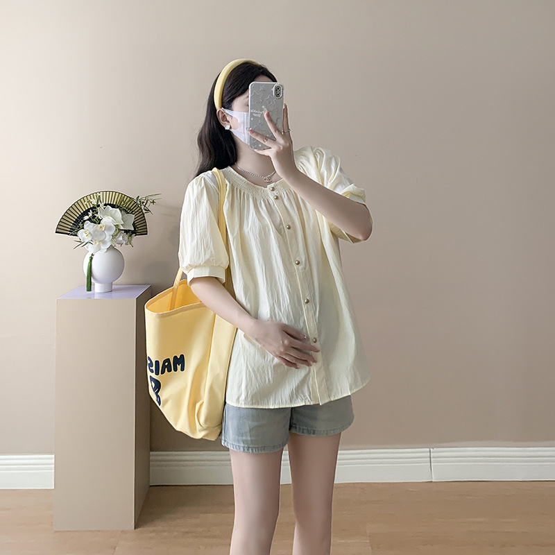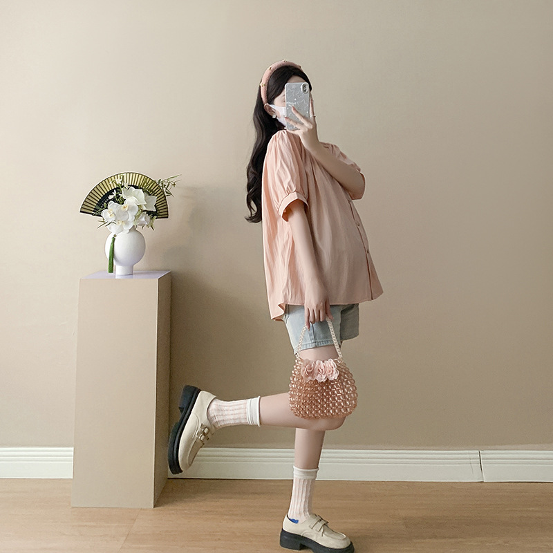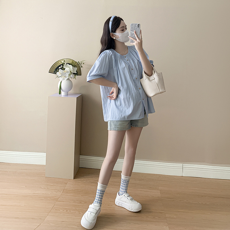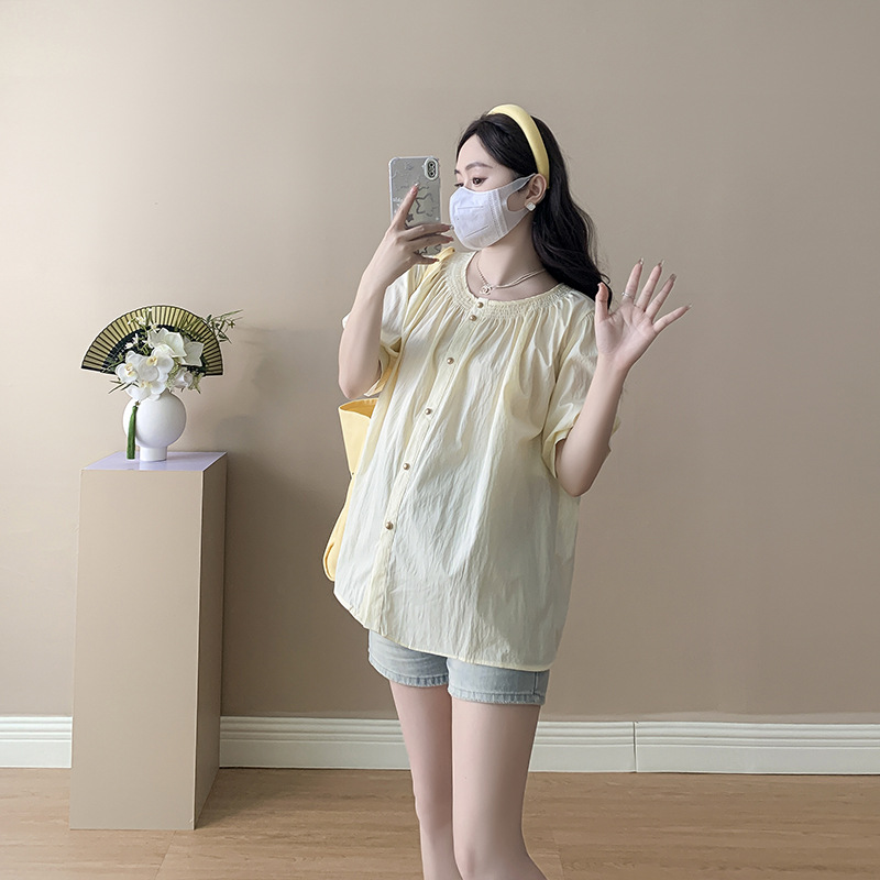 출산복 2025 여름 신작 달콤하고 패셔너블한 쉬폰 루즈 셔츠, 모유 수유용 다용도 상의
