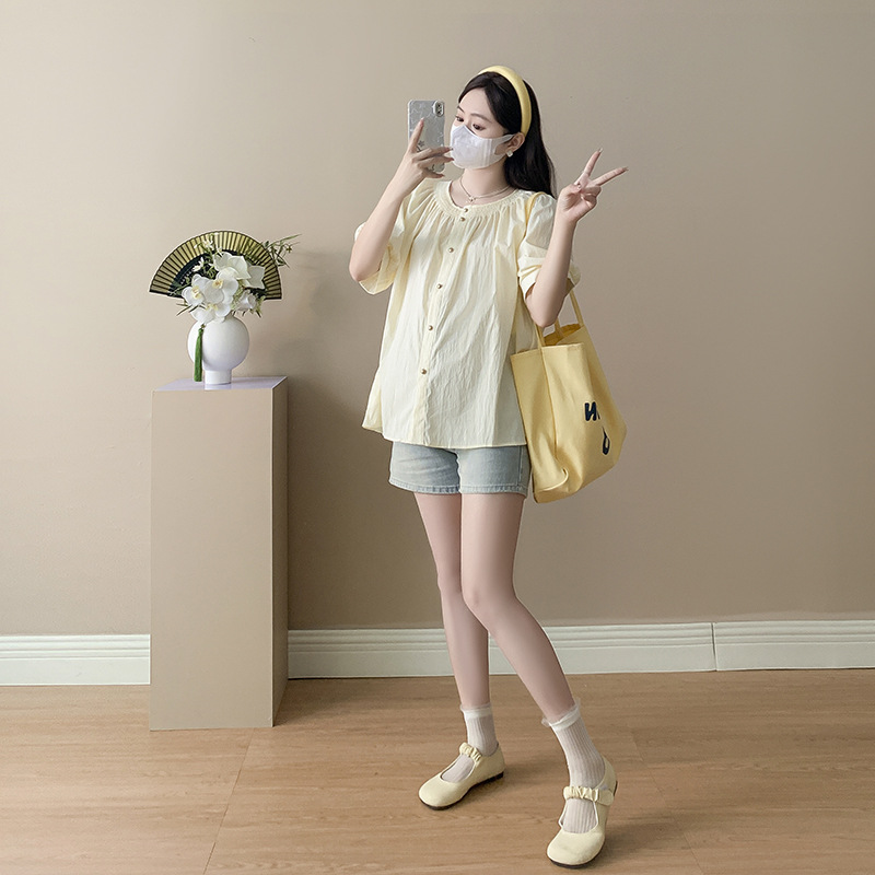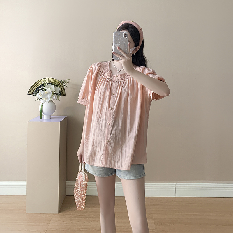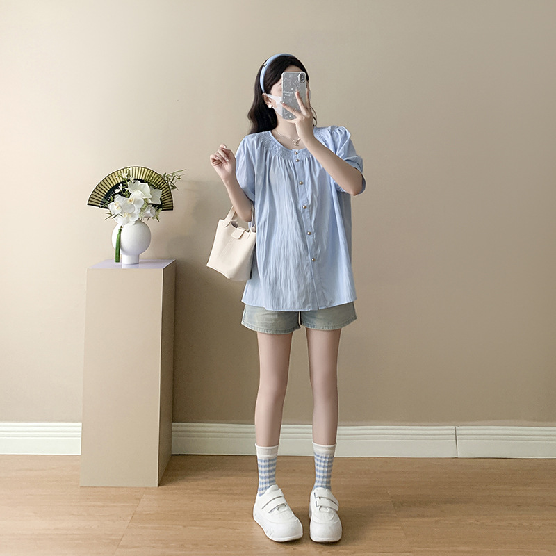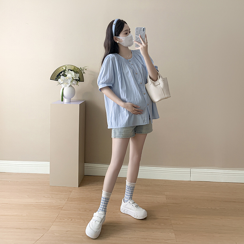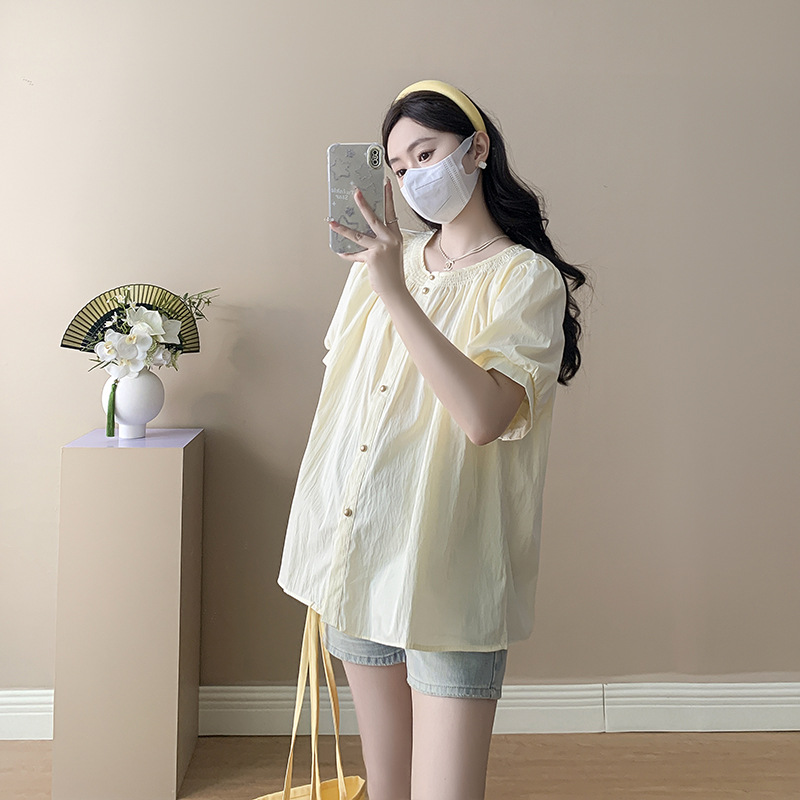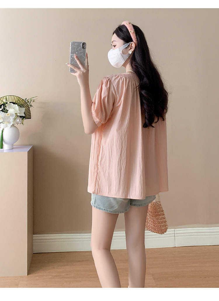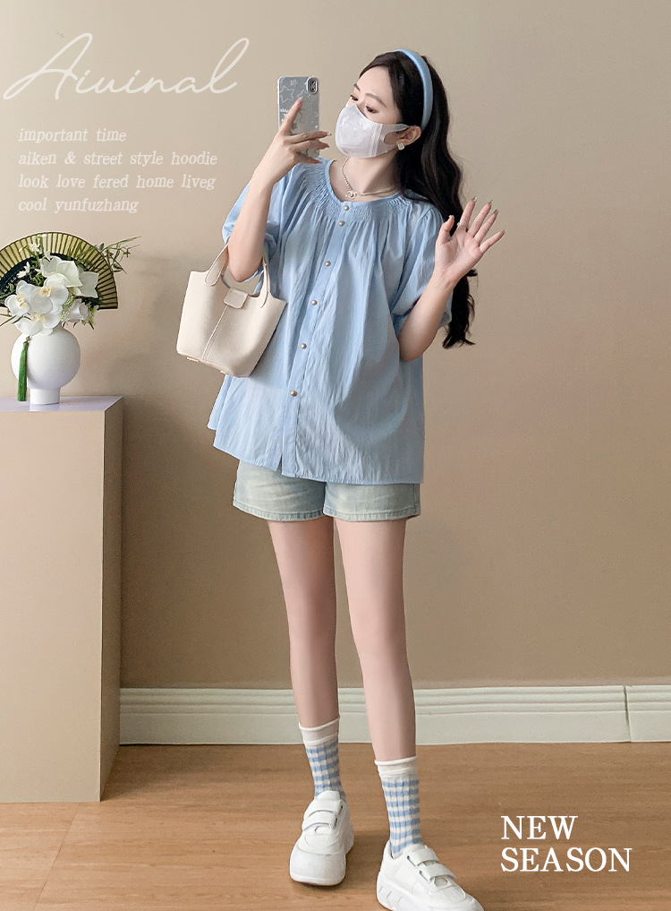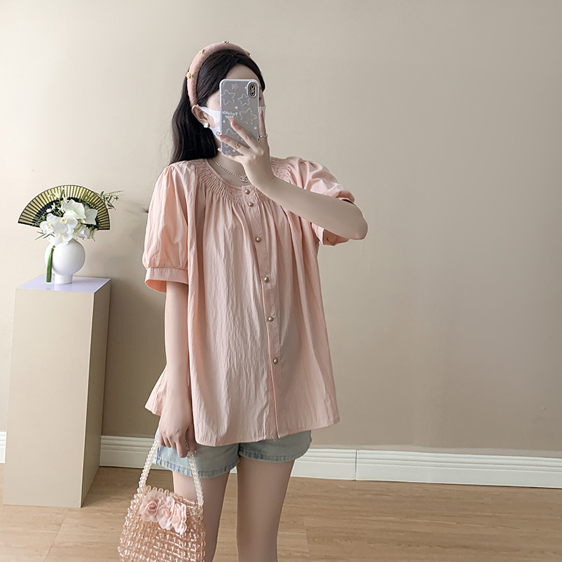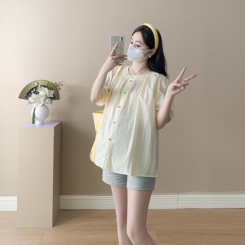 출산복 2025 여름 신작 달콤하고 패셔너블한 쉬폰 루즈 셔츠, 모유 수유용 다용도 상의