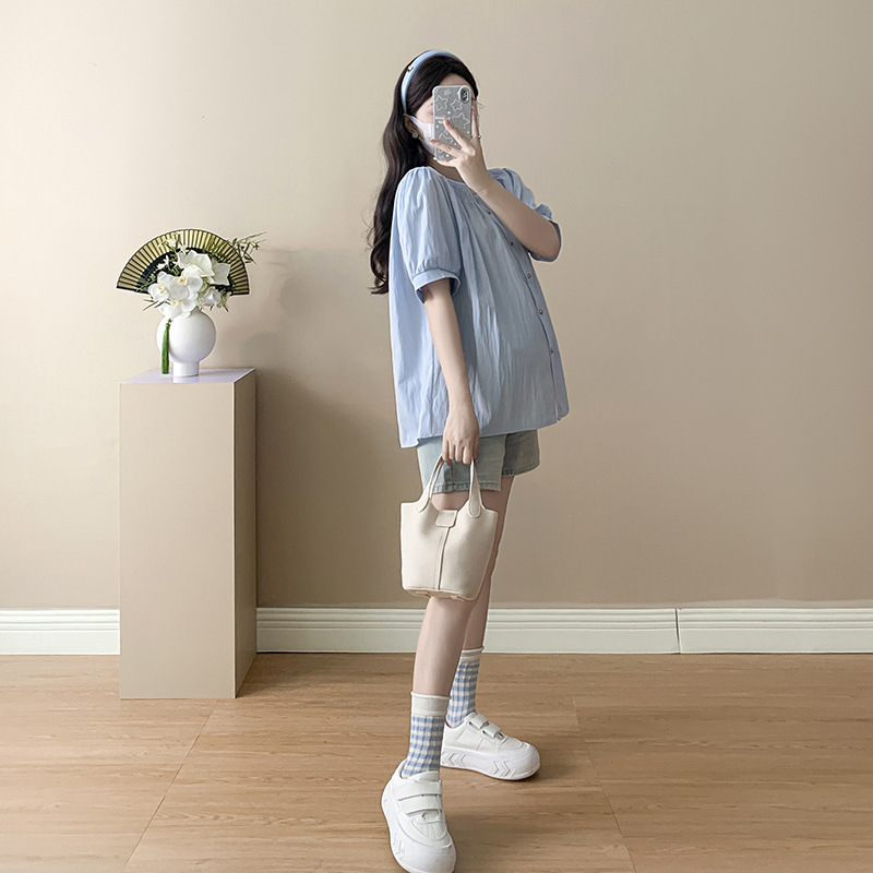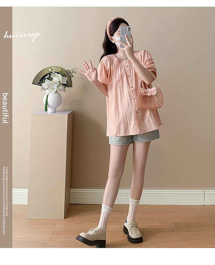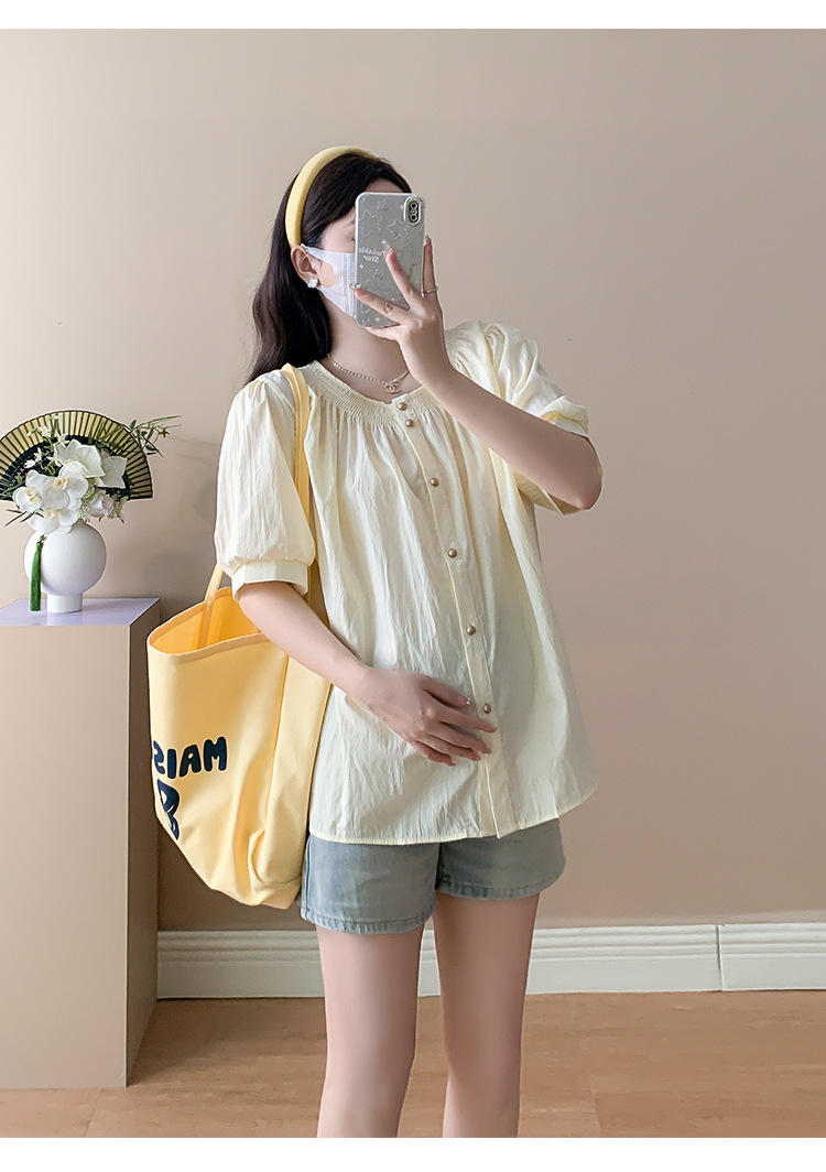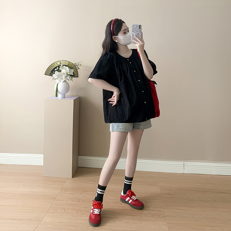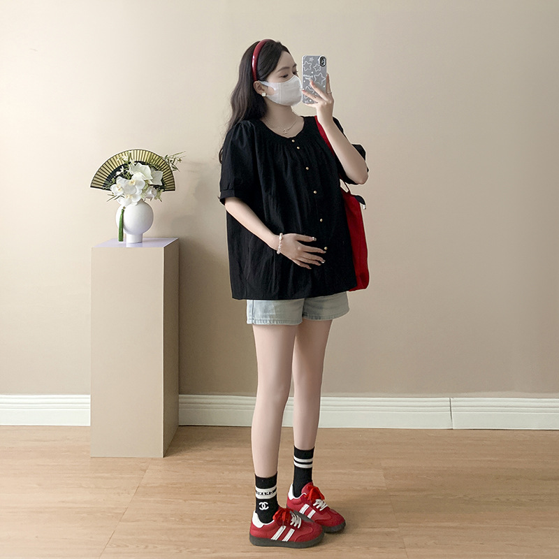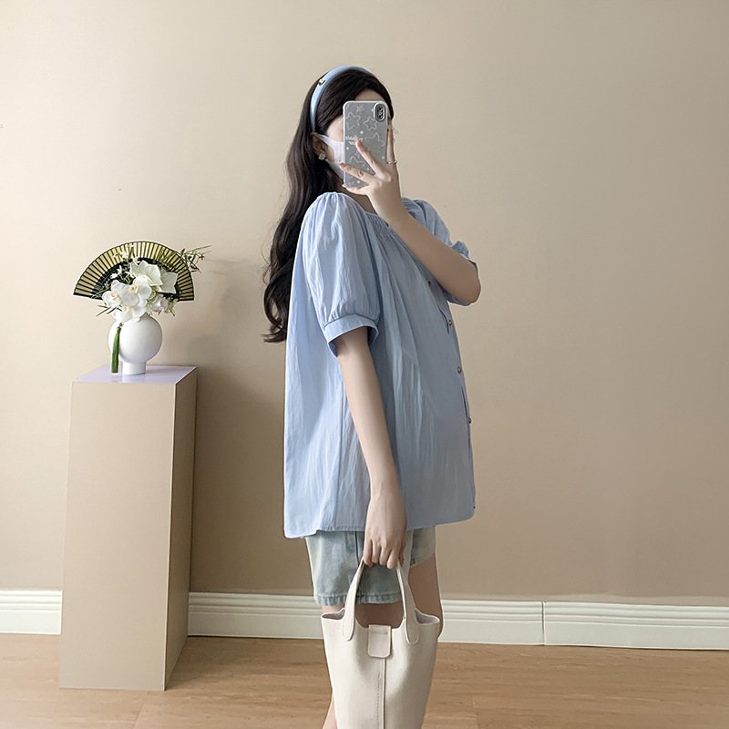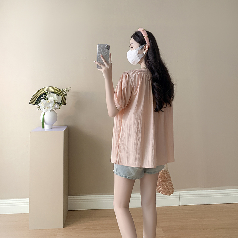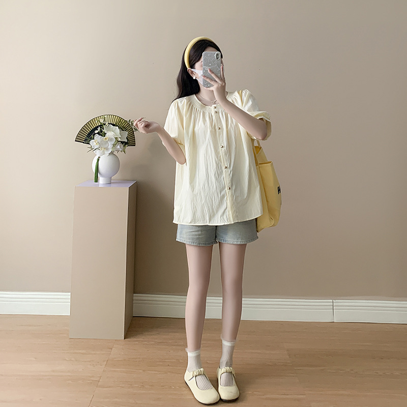 출산복 2025 여름 신작 달콤하고 패셔너블한 쉬폰 루즈 셔츠, 모유 수유용 다용도 상의